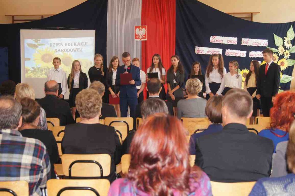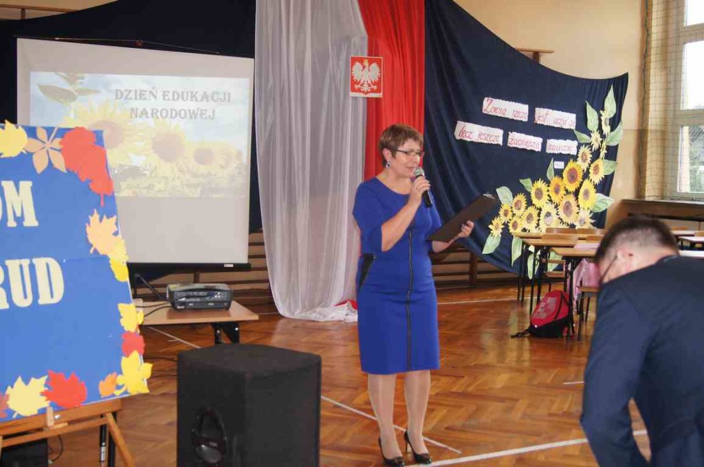 Na początku głos zabrała dyrektor Zespołu Szkolno – Przedszkolnego w Wietrzychowicach, p. Jadwiga Łucarz, która powitała wszystkich gości i złożyła życzenia z okazji Dnia Edukacji Narodowej. W swoim wystąpieniu pani dyrektor podkreśliła również ważną rolę, jaką odgrywają pracownicy oświaty w wychowaniu młodego pokolenia i przedstawiła pokrótce dzieje nauczycielstwa polskiego. Na zakończenie odczytała list intencyjny posła Wiesława Krajewskiego.