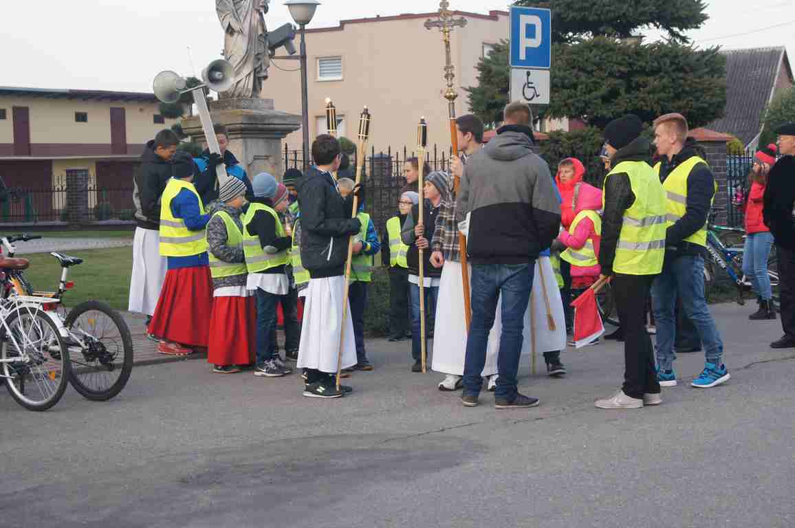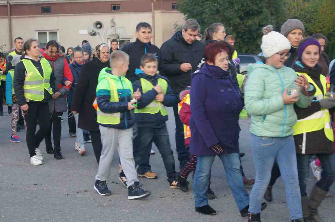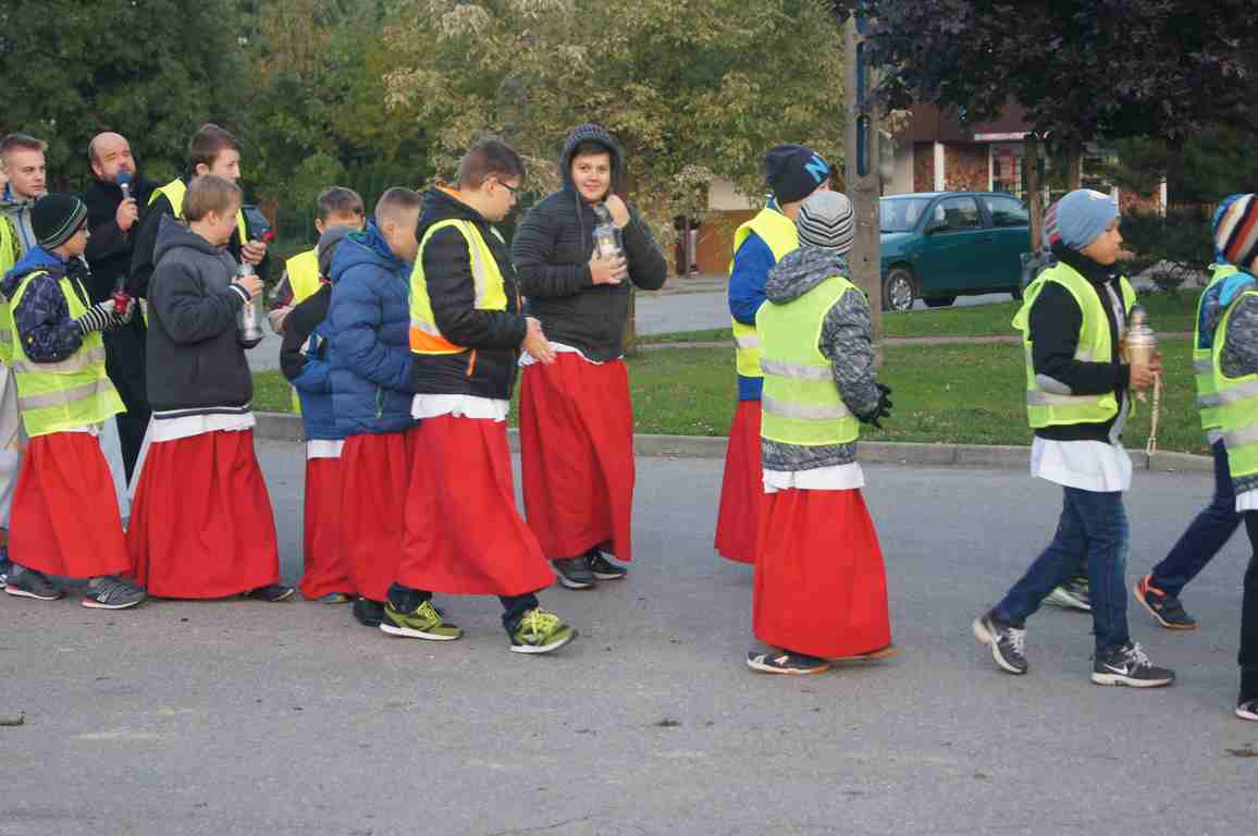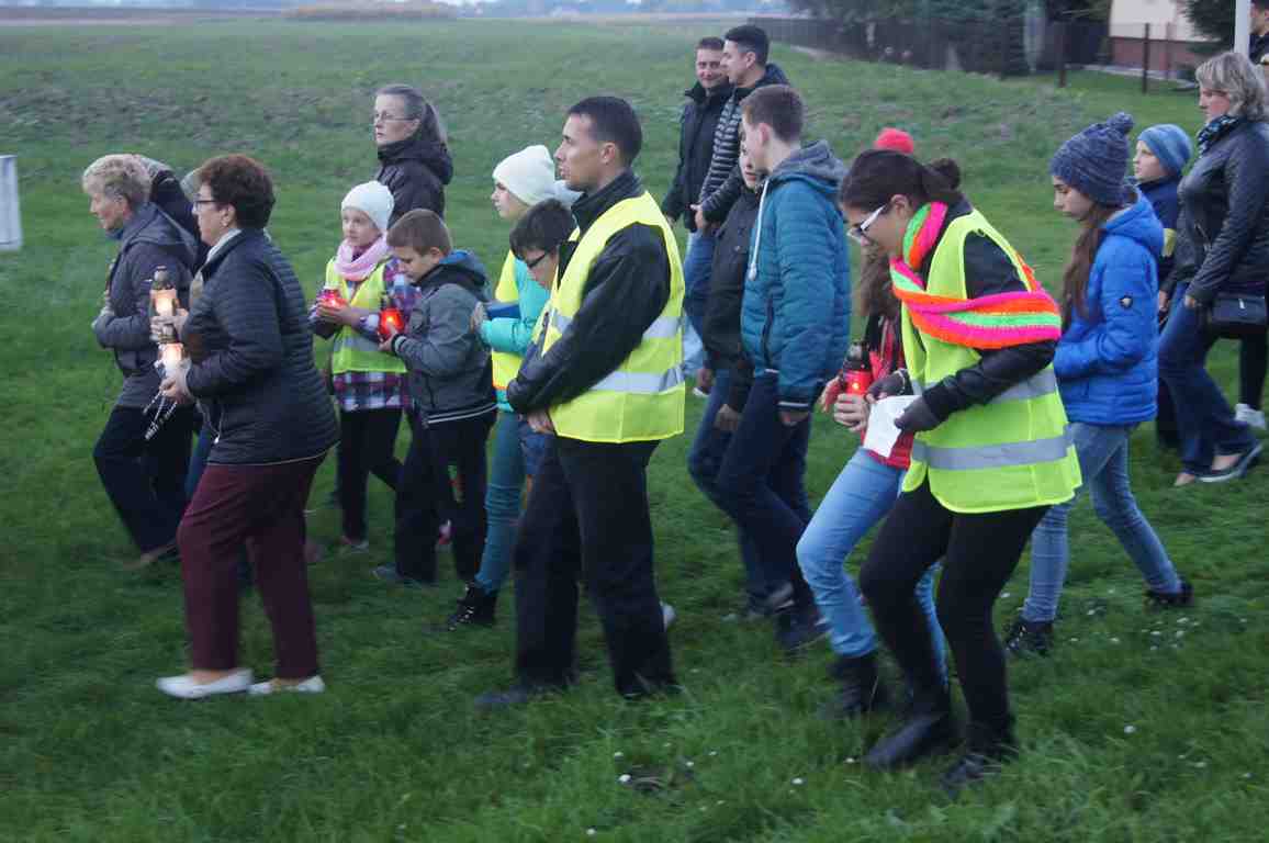 14 października, zaraz po popołudniowej mszy świętej nauczyciele, uczniowie oraz liczna rzesza mieszkańców gminy wybrała się pod pomnik świętego Jana Pawła II, by uczcić rocznicę wyboru Karola Wojtyły na Papieża, a w modlitwie różańcowej prosić o łaski potrzebne tym, którzy na co dzień związani są ze szkołą. Procesji przewodniczył katecheta Zespołu Szkolno – Przedszkolnego, ks. Piotr Barczyk.Jako, że przemarsz odbywał się w godzinach wieczornych, szczególną uwagę organizatorzy zwrócili na odpowiedni ubiór uczestników procesji – zdecydowana większość z nich założyła kamizelki odblaskowe, bądź odblaskowe opaski, dzięki czemu wszyscy byli bardzo dobrze widoczni na drodze.