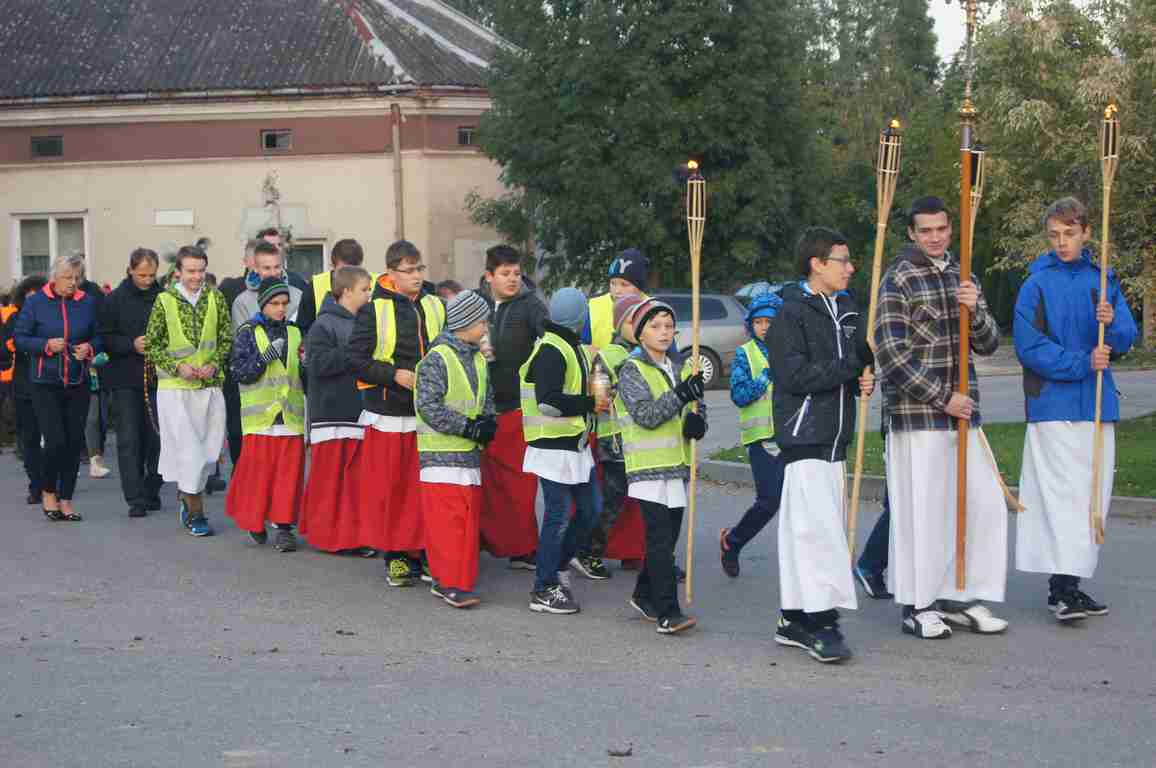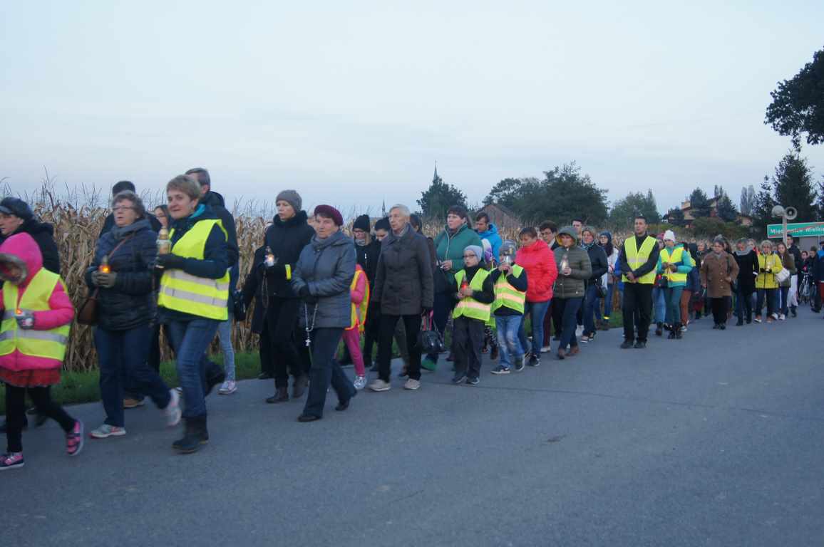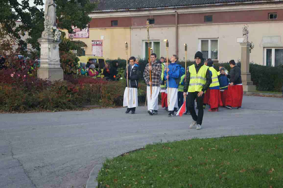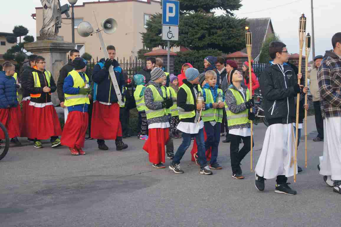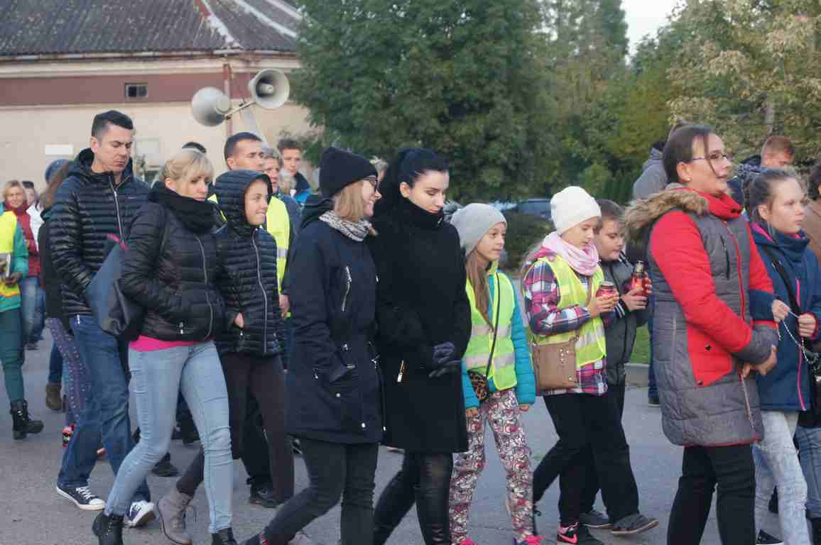 14 października, zaraz po popołudniowej mszy świętej nauczyciele, uczniowie oraz liczna rzesza mieszkańców gminy wybrała się pod pomnik świętego Jana Pawła II, by uczcić rocznicę wyboru Karola Wojtyły na Papieża, a w modlitwie różańcowej prosić o łaski potrzebne tym, którzy na co dzień związani są ze szkołą. Procesji przewodniczył katecheta Zespołu Szkolno – Przedszkolnego, ks. Piotr Barczyk.Jako, że przemarsz odbywał się w godzinach wieczornych, szczególną uwagę organizatorzy zwrócili na odpowiedni ubiór uczestników procesji – zdecydowana większość z nich założyła kamizelki odblaskowe, bądź odblaskowe opaski, dzięki czemu wszyscy byli bardzo dobrze widoczni na drodze.