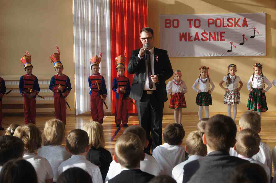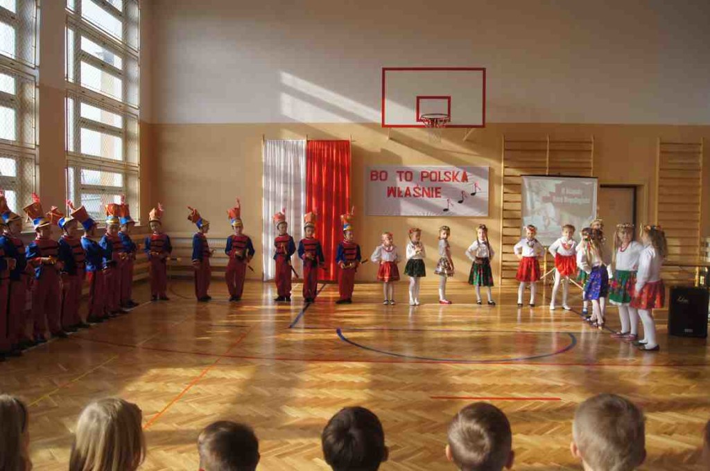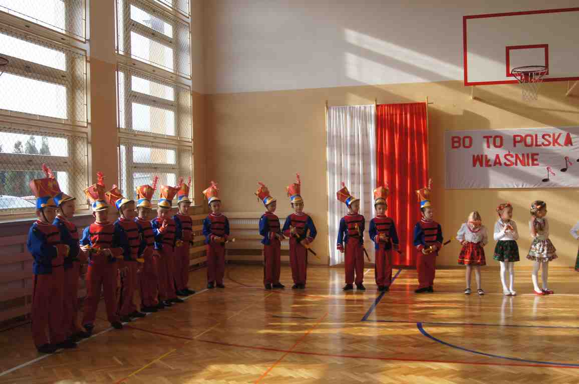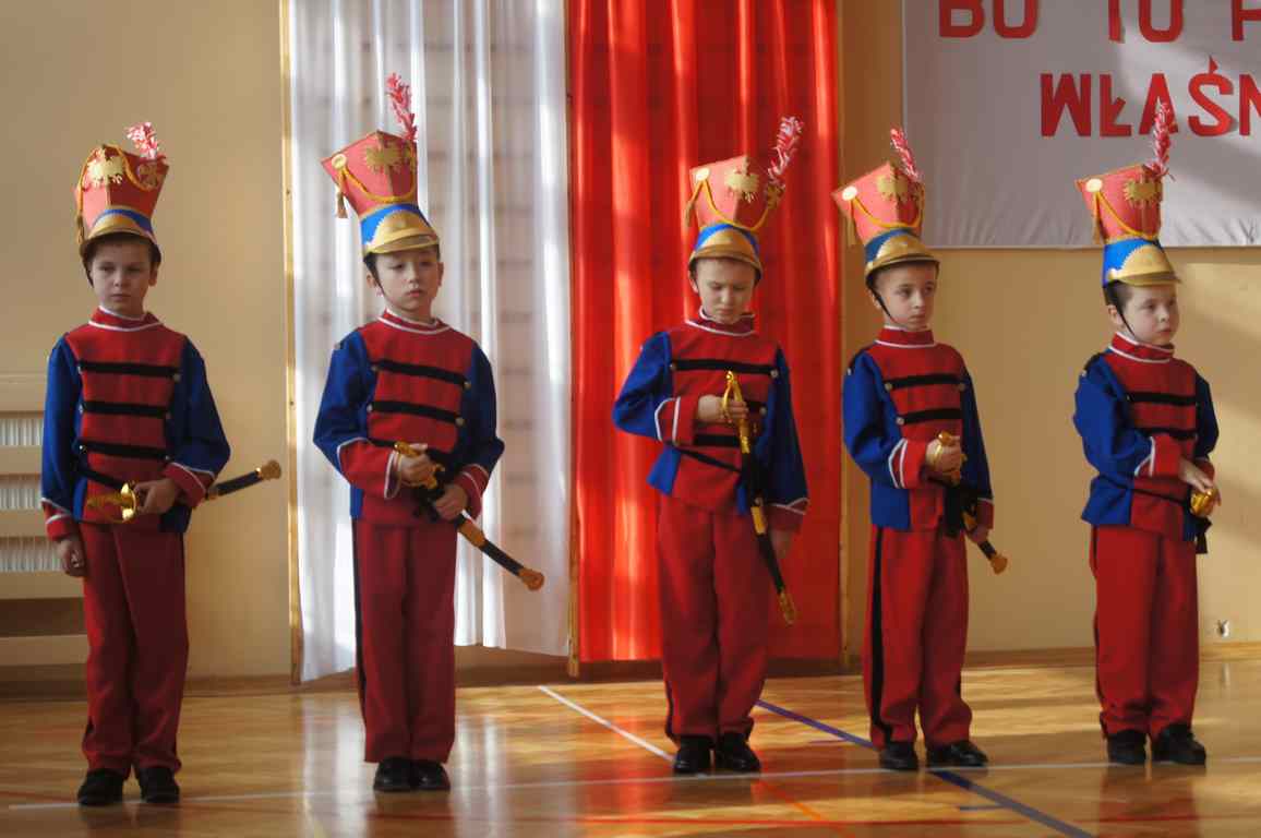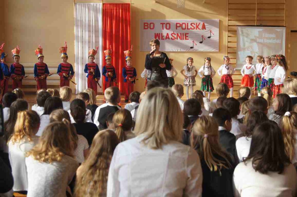 Obchody Święta Niepodległości w naszej szkole mają zawsze szczególny charakter. Stanowią bowiem pielęgnowanie tradycji patriotycznych, wzorów bohaterstwa, uczą szacunku wobec historii i tradycji narodowej. Tegoroczną rocznicę, z inicjatywy p. Wandy Borowiec, postanowiliśmy w naszej szkole uczcić podwójnie i tradycyjną akademię okolicznościową poprzedzić wspólnym śpiewaniem pieśni patriotycznych, które – jak wiadomo – spełniały i nadal spełniają ogromną rolę. Dawniej dodawały żołnierzom odwagi przed walką, budziły nadzieję emigrantom, wychowywały młodzież, a nawet stanowiły oręż w walce z propagandą i cenzurą. Dziś są manifestacją naszej wspólnoty i tożsamości narodowej, uczą miłości ojczyzny oraz są świadectwem bohaterstwa naszych rodaków.