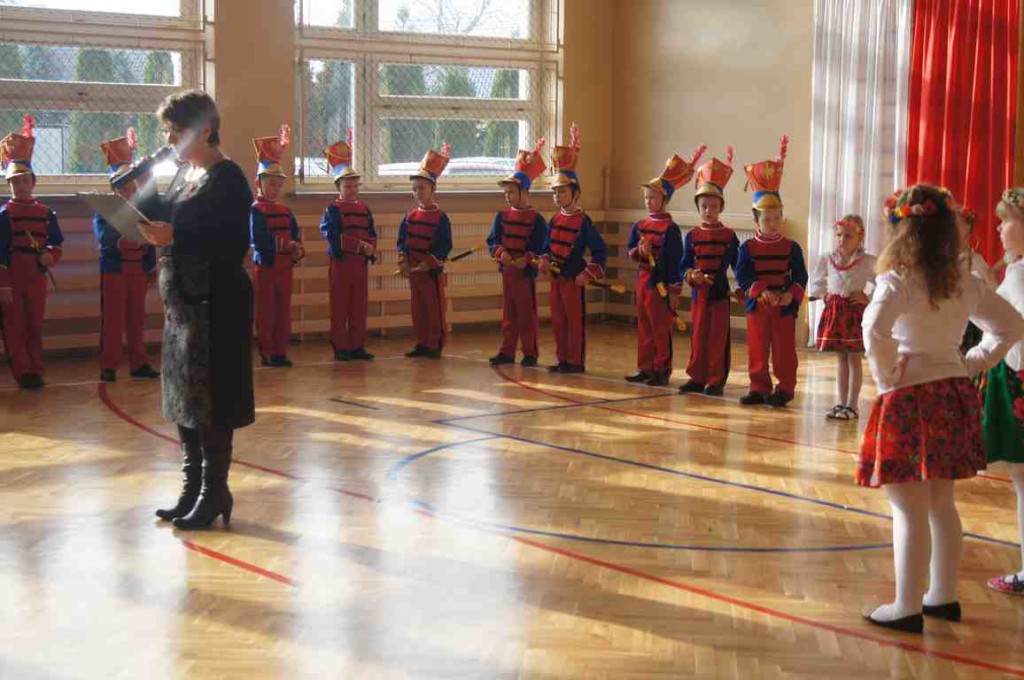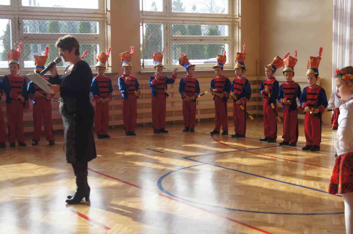 Do wspólnego śpiewu pani Wanda zaprosiła uczniów wszystkich klas – każda klasa przygotowała jedną pieśń żołnierską, a włączenie się do jej śpiewania ułatwiały wyświetlane teksty. Spotkanie rozpoczęło wspólne odśpiewanie wszystkich zwrotek Hymnu państwowego, następnie zaś uczniowie klasy II wykonali pieśń „Ułani, ułani”. Wspaniałą aranżację owej pieśni wzbogaciły piękne stroje chłopców i dziewcząt zorganizowane przez wychowawczynię klasy, p. Alicję Kozioł przy ogromnej pomocy rodziców drugoklasistów.  Kolejne klasy prezentowały następujące pieśni: