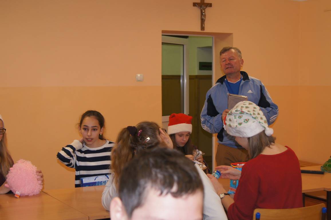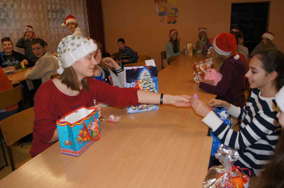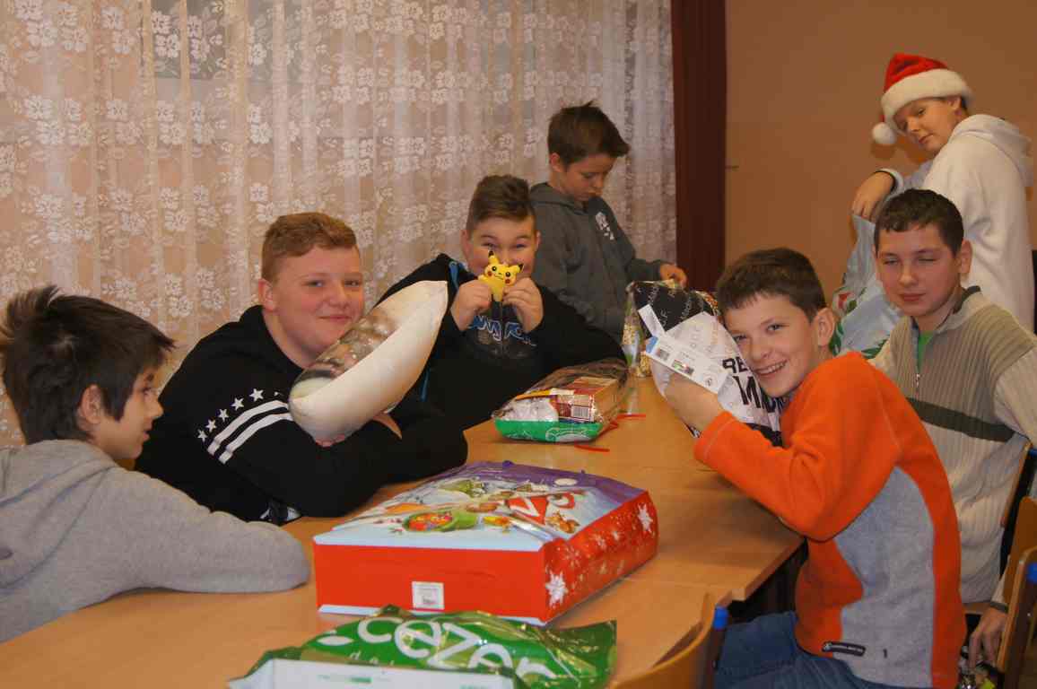 6 grudnia klasa VI, jako jedyna klasa w szkole, postanowiła tradycyjnie uczcić Mikołajki i obdarować się wzajemnie prezentami – pozostali uczniowie w ramach tego święta udali się na różnego rodzaju wycieczki. Szóstoklasiści, wraz ze swoim wychowawcą, p. Stanisławem Magierą, jak na tradycjonalistów przystało, zdecydowali, że najlepiej będzie zrobić losowanie, ustalić kwotę upominku i świetnie się bawić. Jak pomyśleli, tak zrobili, dzięki czemu przez cały wtorek paradowali po szkole w mikołajkowych czapkach tuląc do siebie otrzymane pluszaki i zajadając słodkości z kolorowych paczuszek. Cóż dodać – widok zdecydowanie rozczulający.