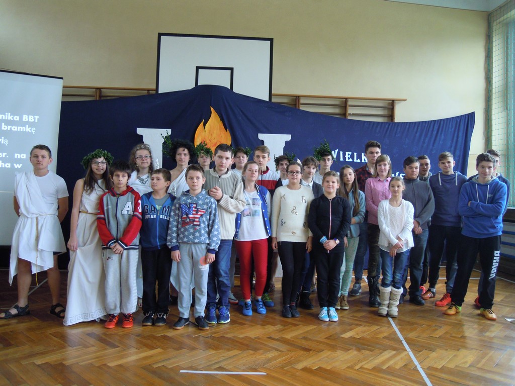 W Publicznym Gimnazjum w Miechowicach Wielkich został zorganizowany konkurs połączony z inscenizacją genezy igrzysk olimpijskich, w którym do rywalizacji przystąpili również uczniowie naszej szkoły: Karolina Kowal, Tobiasz Słowik, Paweł Gorla, Jakub Polak, Mateusz Lizak i Julia Kogut . Do konkursu przygotowywał wszystkich p. Stanisław Magiera. Wszyscy nasi zawodnicy spisali się dobrze, zaś pamiątkowe dyplomy i cenne nagrody otrzymało dwoje z nich, którzy stanęli na podium: Julia Kogut (I miejsce w kategorii „Dziewczęta”) oraz Mateusz Lizak (I miejsce w kategorii „Open” i III miejsce w kategorii „Chłopcy”)