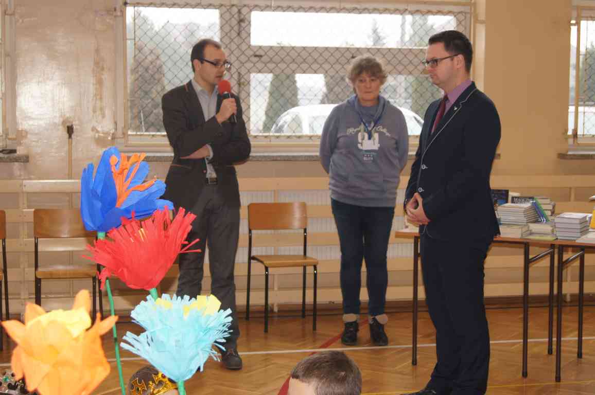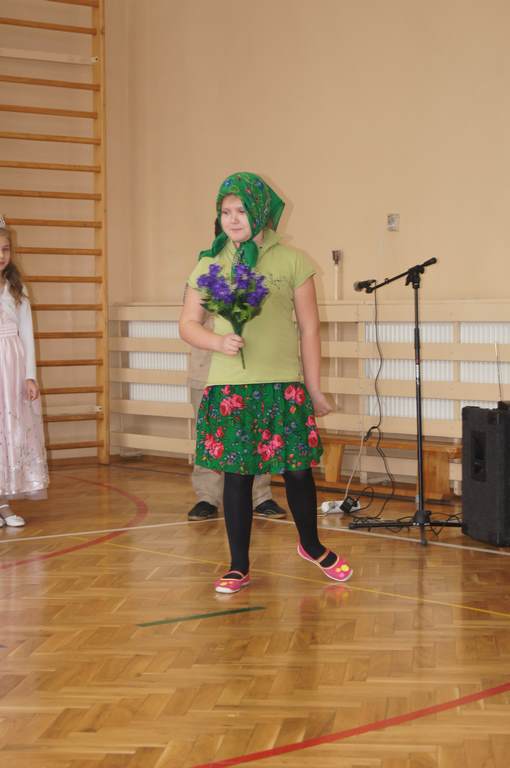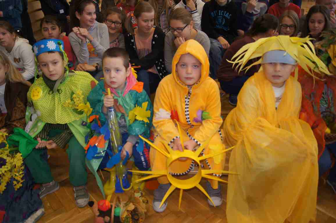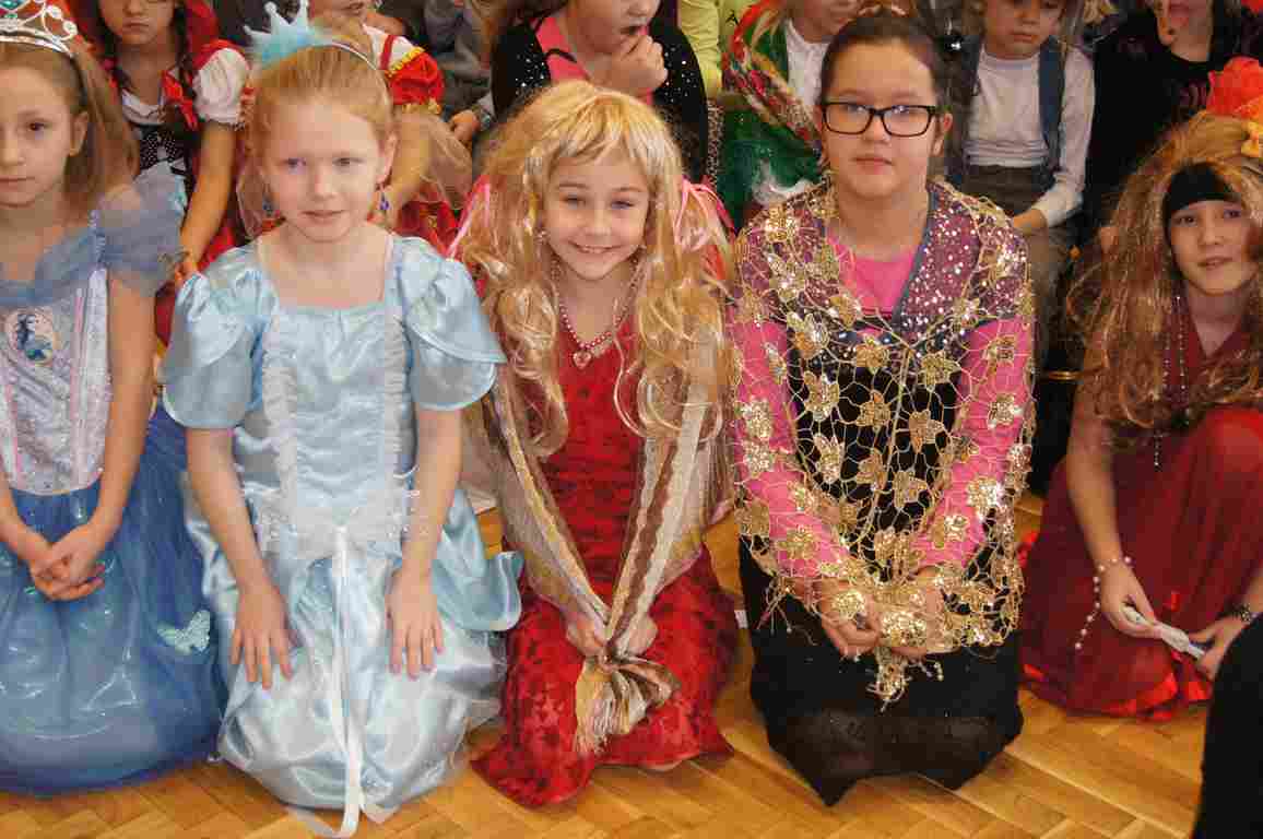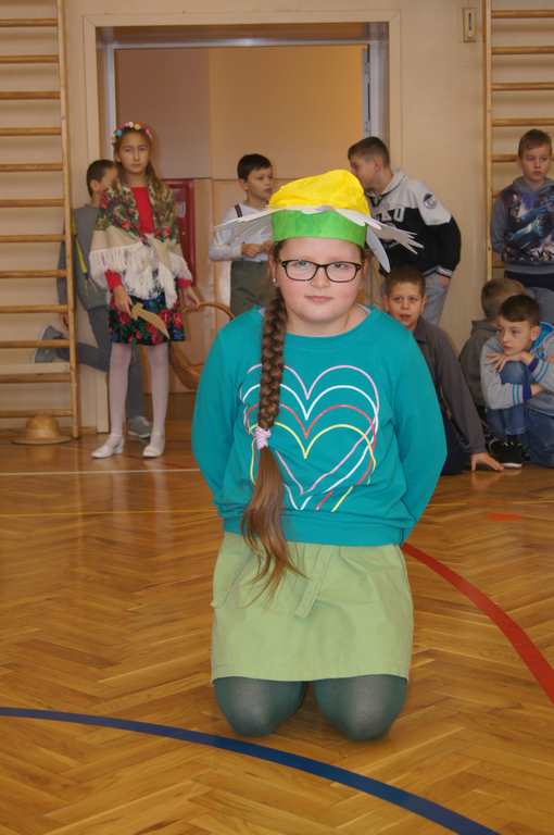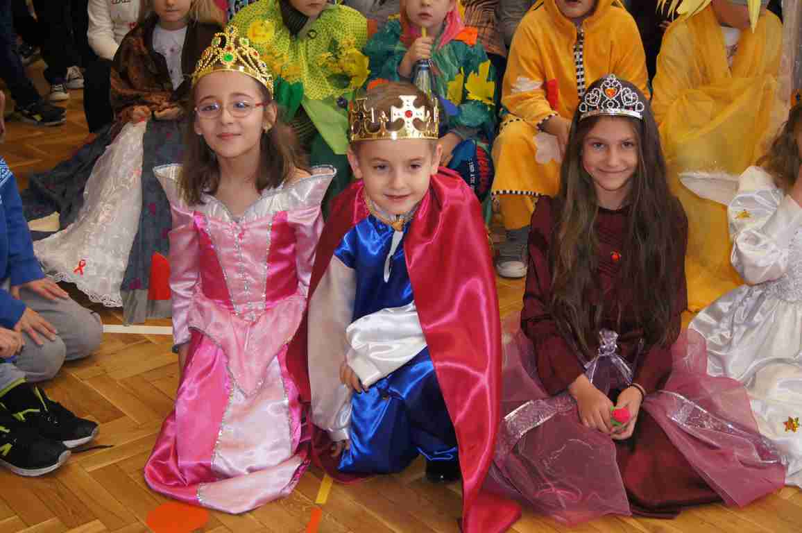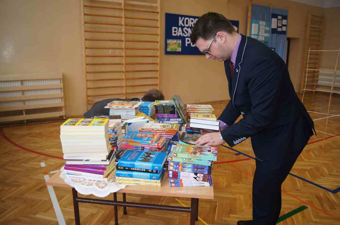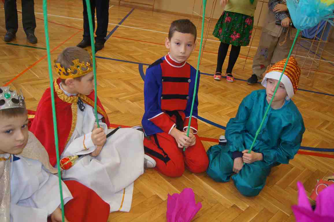 O tym, jak dobrze poznali poszczególne utwory świadczyło poniedziałkowe podsumowanie. Korytarze szkolne od rana zaroiły się od kolorowych postaci, w których nietrudno było rozpoznać bohaterów poszczególnych baśni (przede wszystkim za sprawą świetnych strojów przygotowanych na tę okoliczność przez rodziców drugo – i trzecioklasistów). Na trzeciej lekcji cała społeczność szkolna spotkała się na sali gimnastycznej, gdzie wójt gminy, p. Tomasz Banek przekazał szkolnej bibliotece świeżo zakupione, pachnące jeszcze farbą drukarską nowości wydawnicze, a następnie razem z nami obejrzał przedstawienie pt. „Stokrotka” (na podstawie baśni H. Ch. Andersena) w wykonaniu uczniów kl. III b oraz przeplatany tematycznymi wierszykami i piosenkami pokaz baśniowych postaci, w role których wcielili się uczniowie klasy II. W kolejnym etapie zadaniem zgromadzonej publiczności było odgadnięcie tytułów baśni reprezentowanych przez poszczególnych bohaterów. Finałowym momentem stało się przejście wszystkich zgromadzonych postaci w baśniowym korowodzie.