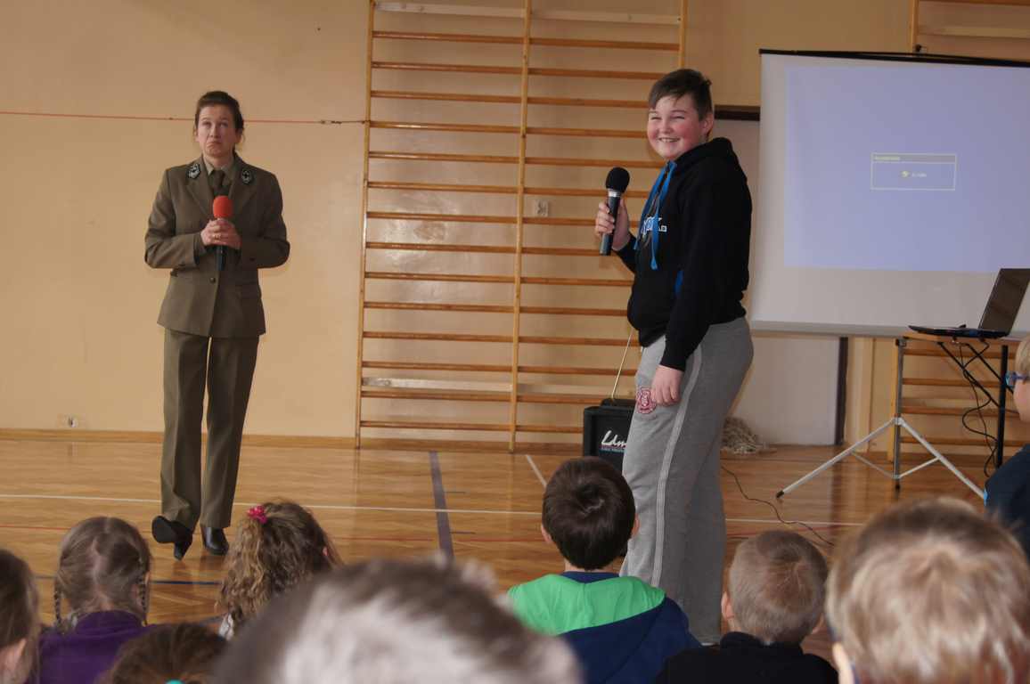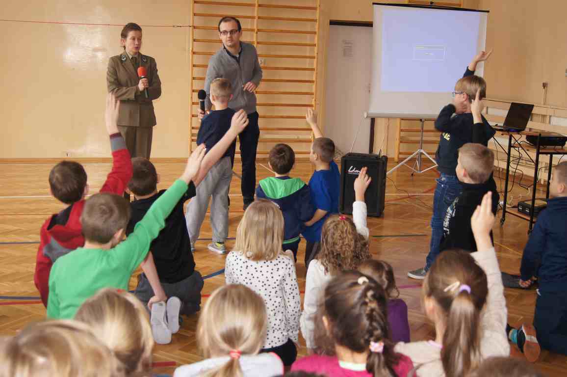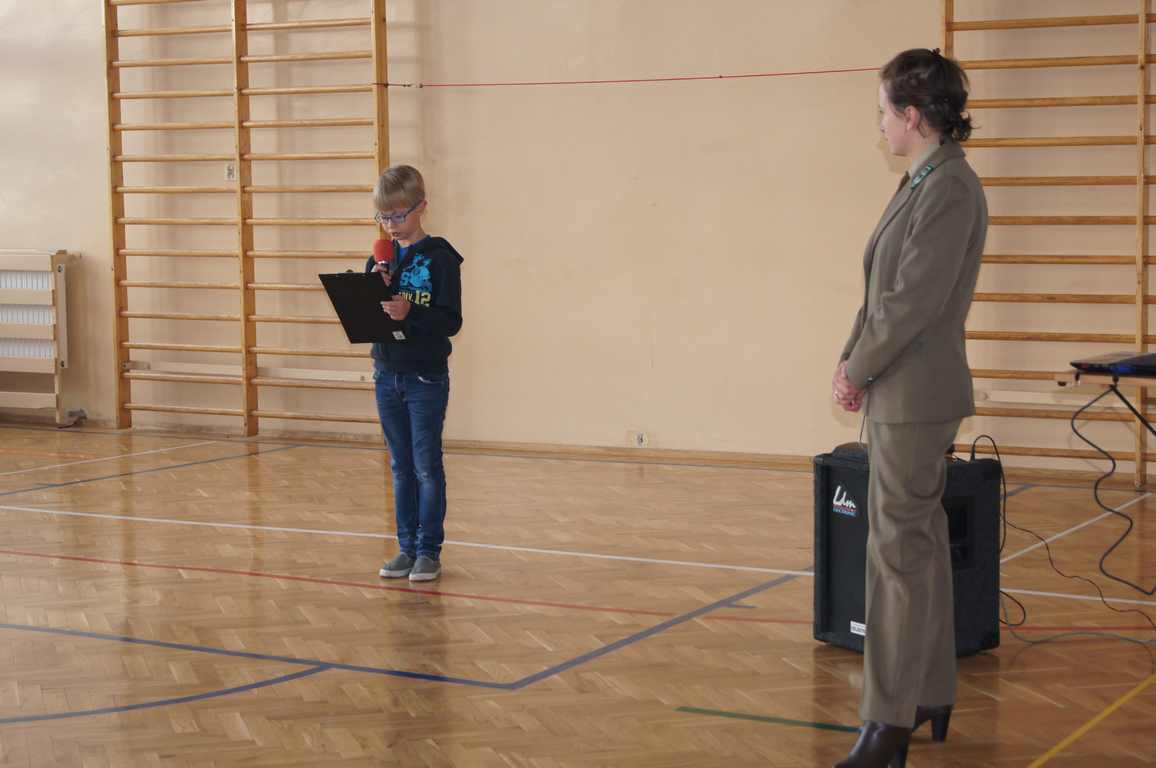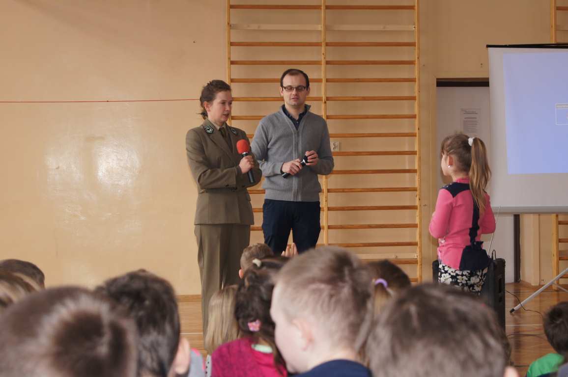 W ramach obchodów Dnia LOP, Szkolne Koło LOP zaprosiło na spotkanie panią Karolinę Matułę – leśnika z punktu edukacyjnego w leśnictwie Wał Ruda. Pani Karolina opowiedziała dzieciom o lesie i jego mieszkańcach, a za pomocą kolorowej prezentacji przybliżyła nazwy wszystkich warstw roślinności leśnej. Uczniowie dowiedzieli się również, na czym polega praca leśnika, jak chroni się okoliczne lasy. Pani leśnik zwróciła także uwagę, jak należy zachowywać się w lesie, by nie płoszyć zwierząt.