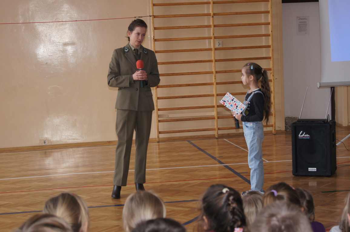 Na spotkaniu padło mnóstwo pytań dotyczących mieszkańców lasu, na które pani leśnik cierpliwie i wyczerpująco odpowiadała. Kończąc, pani Karolina zaprosiła wszystkie dzieci do zwiedzenia ścieżki edukacyjnej „Lasy Wierzchosławickie”. Uczniowie podziękowali pani Karolinie wręczając na pamiątkę drobny upominek.