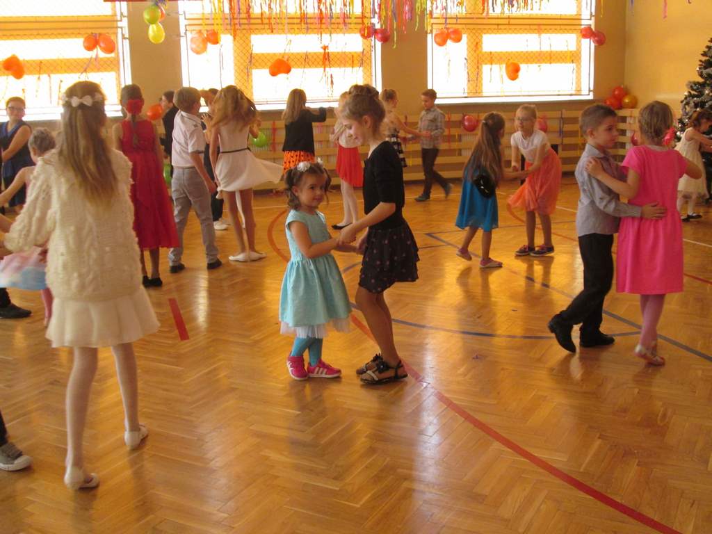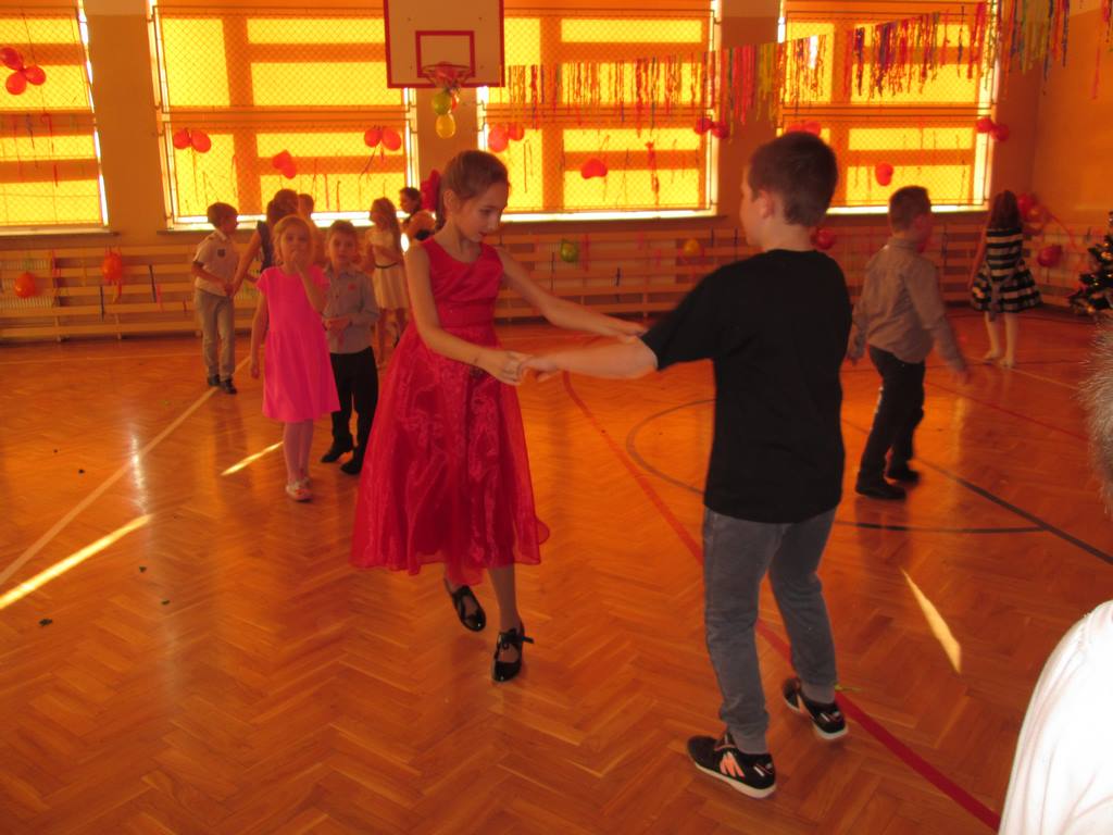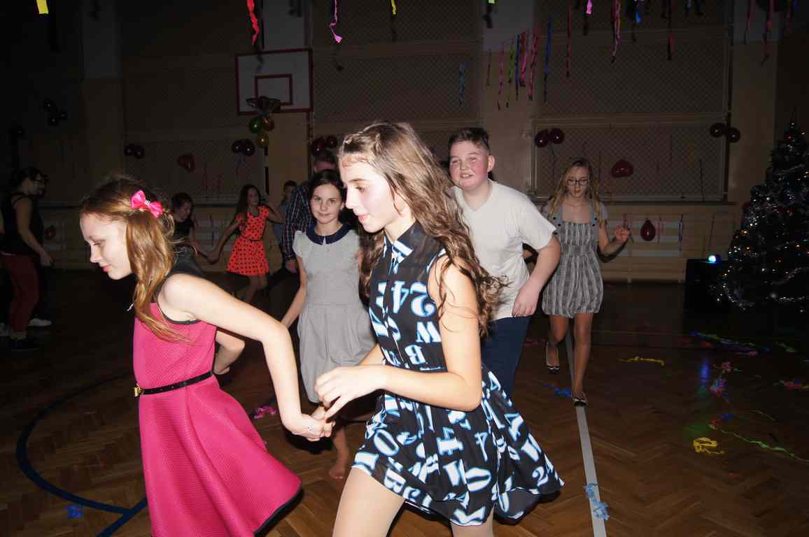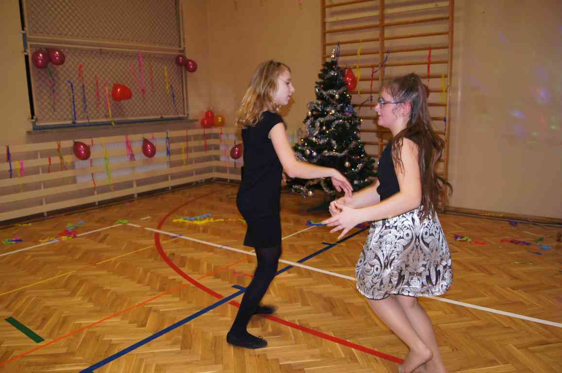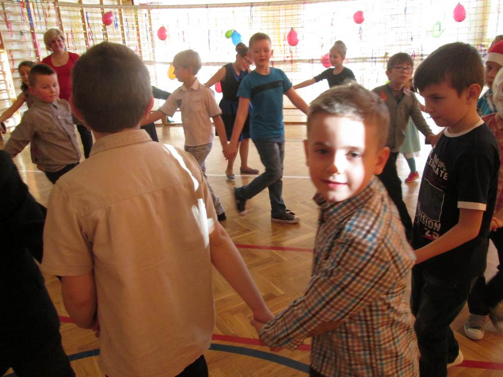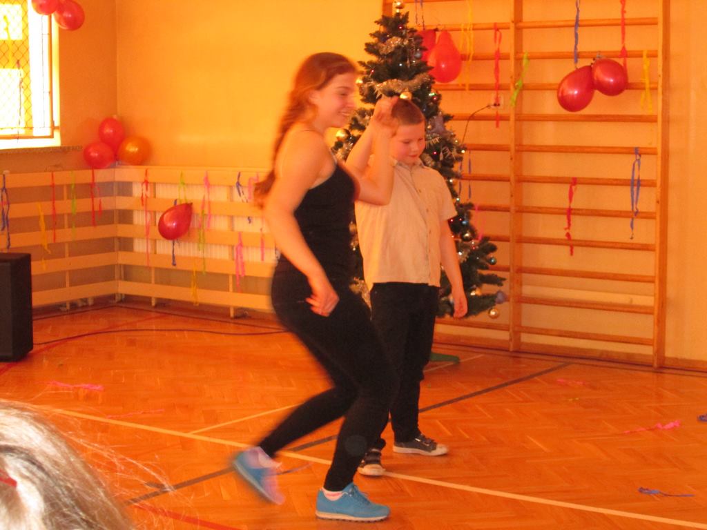 W grupie uczniów starszych prym wiodła klasa VI, która jako najstarsza w szkole wzięła na siebie obowiązek rozkręcenia imprezy. Jako, że są to uczniowie „do tańca i do różańca”, udało im się znakomicie. Tym razem największym hitem okazała się „belgijka”, którą z pełnym poświęceniem odtańczono kilka razy tak efektownie, że obecne na choince mamy dały się porwać muzyce i dołączyły do bawiących się dzieci.