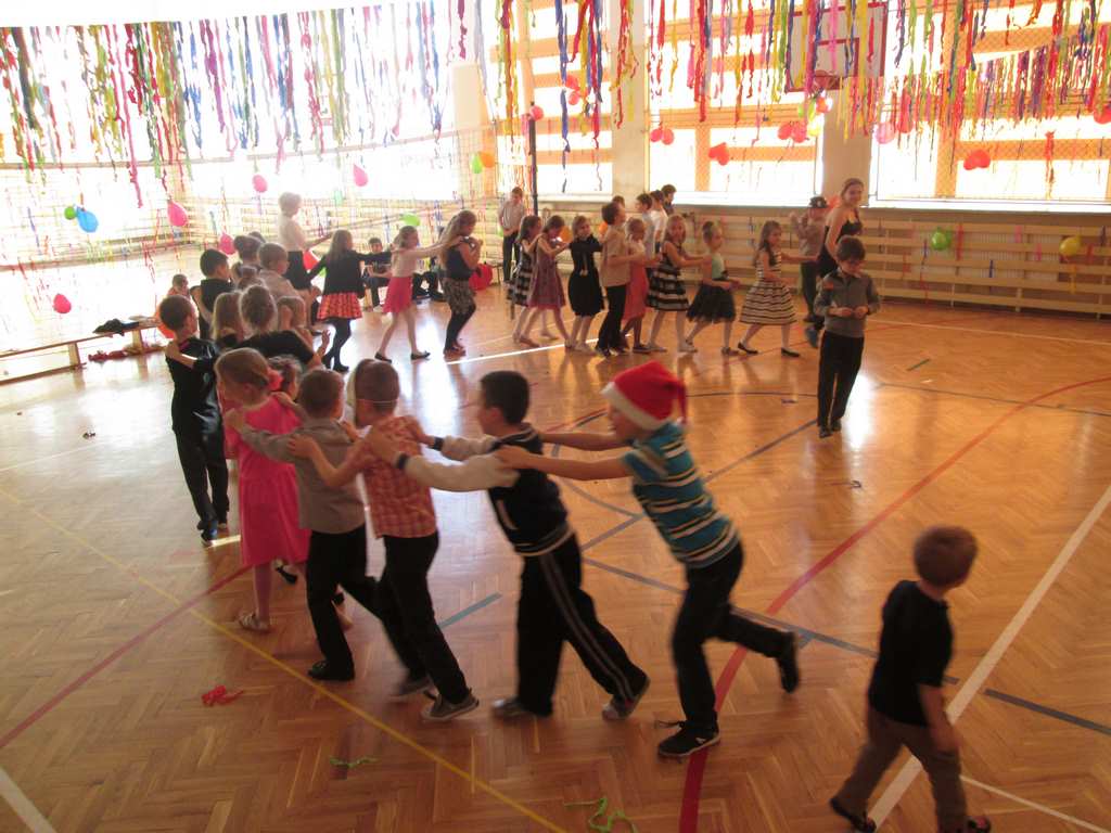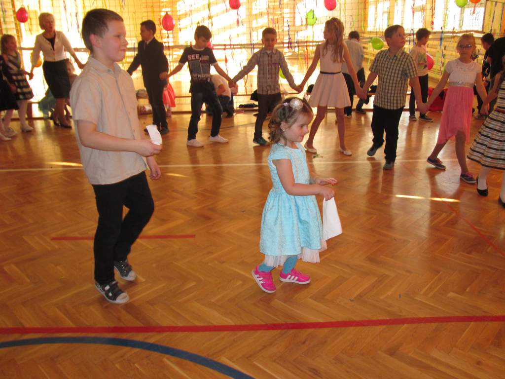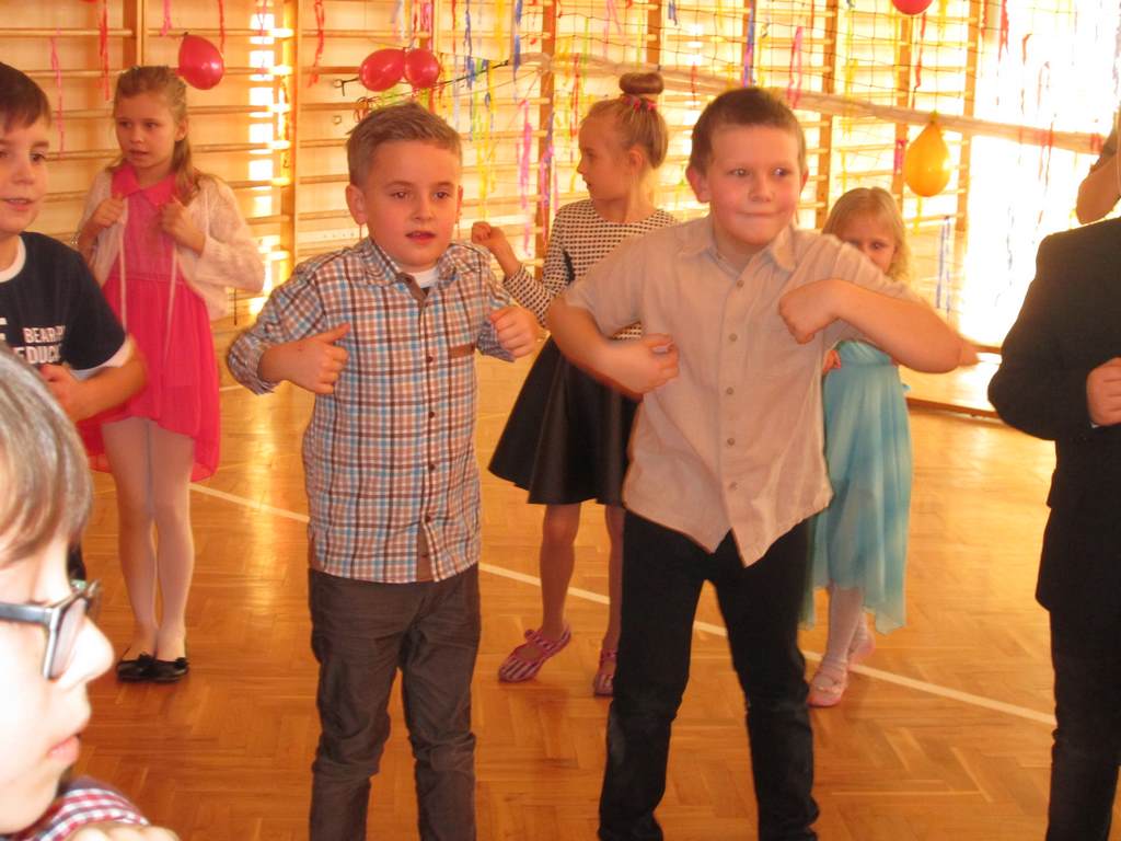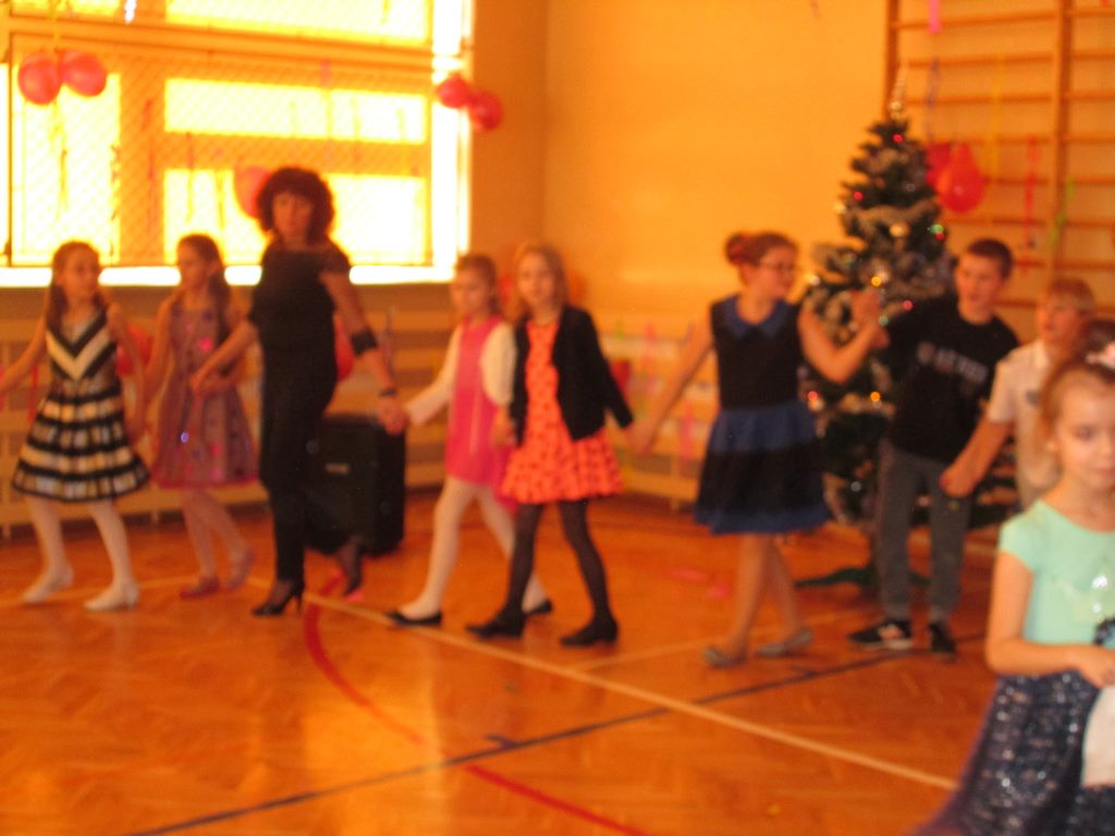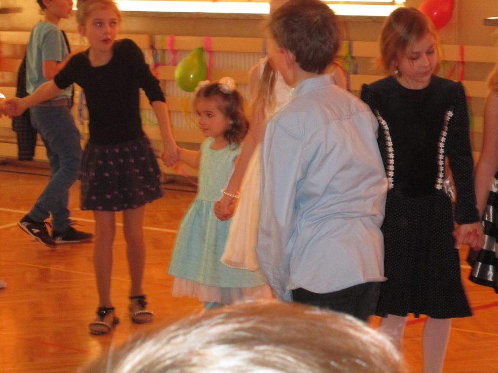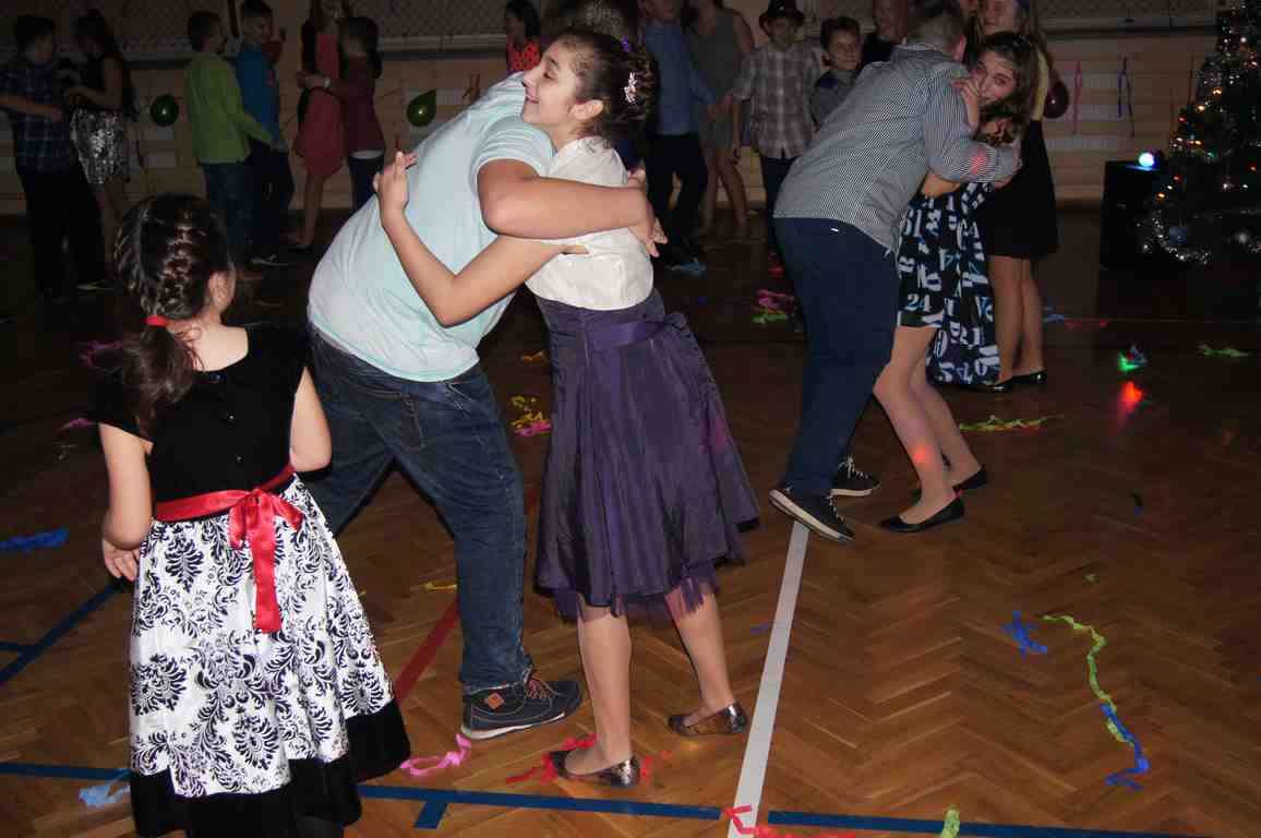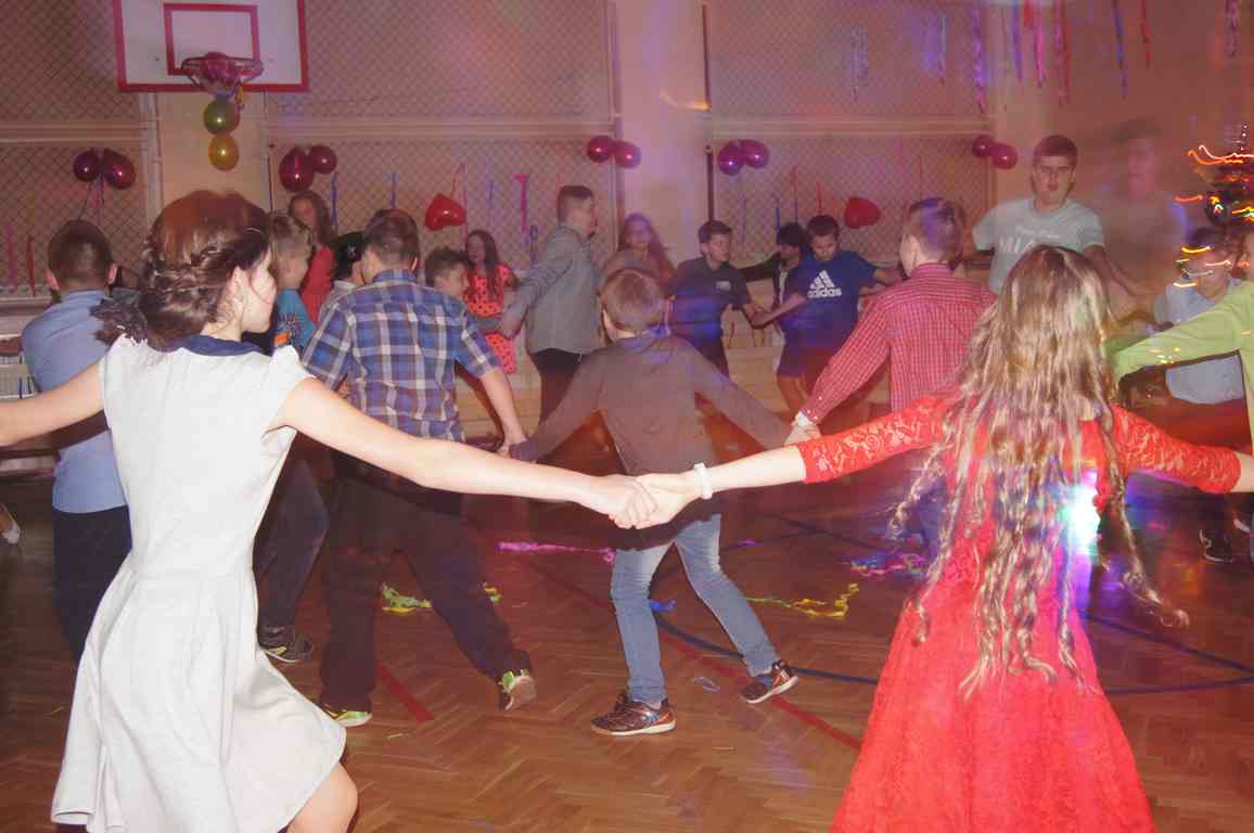 W grupie uczniów starszych prym wiodła klasa VI, która jako najstarsza w szkole wzięła na siebie obowiązek rozkręcenia imprezy. Jako, że są to uczniowie „do tańca i do różańca”, udało im się znakomicie. Tym razem największym hitem okazała się „belgijka”, którą z pełnym poświęceniem odtańczono kilka razy tak efektownie, że obecne na choince mamy dały się porwać muzyce i dołączyły do bawiących się dzieci.