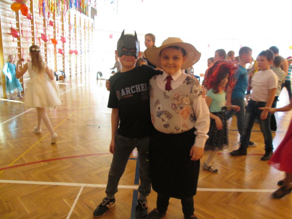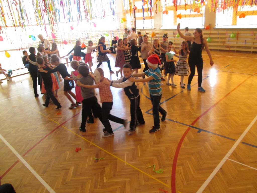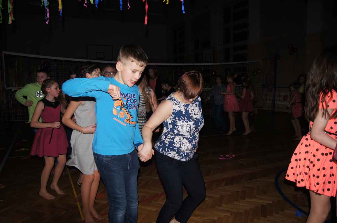 Tegoroczna zabawa, tradycyjnie zorganizowana przez Radę Rodziców, zgodnie z naszym zwyczajem odbyła się w pierwszą sobotę ferii zimowych w dwóch turach. Od 11 do 14 bawiły się dzieci z klas II – III, zaś od 15 do 19 salę opanowali uczniowie starsi.