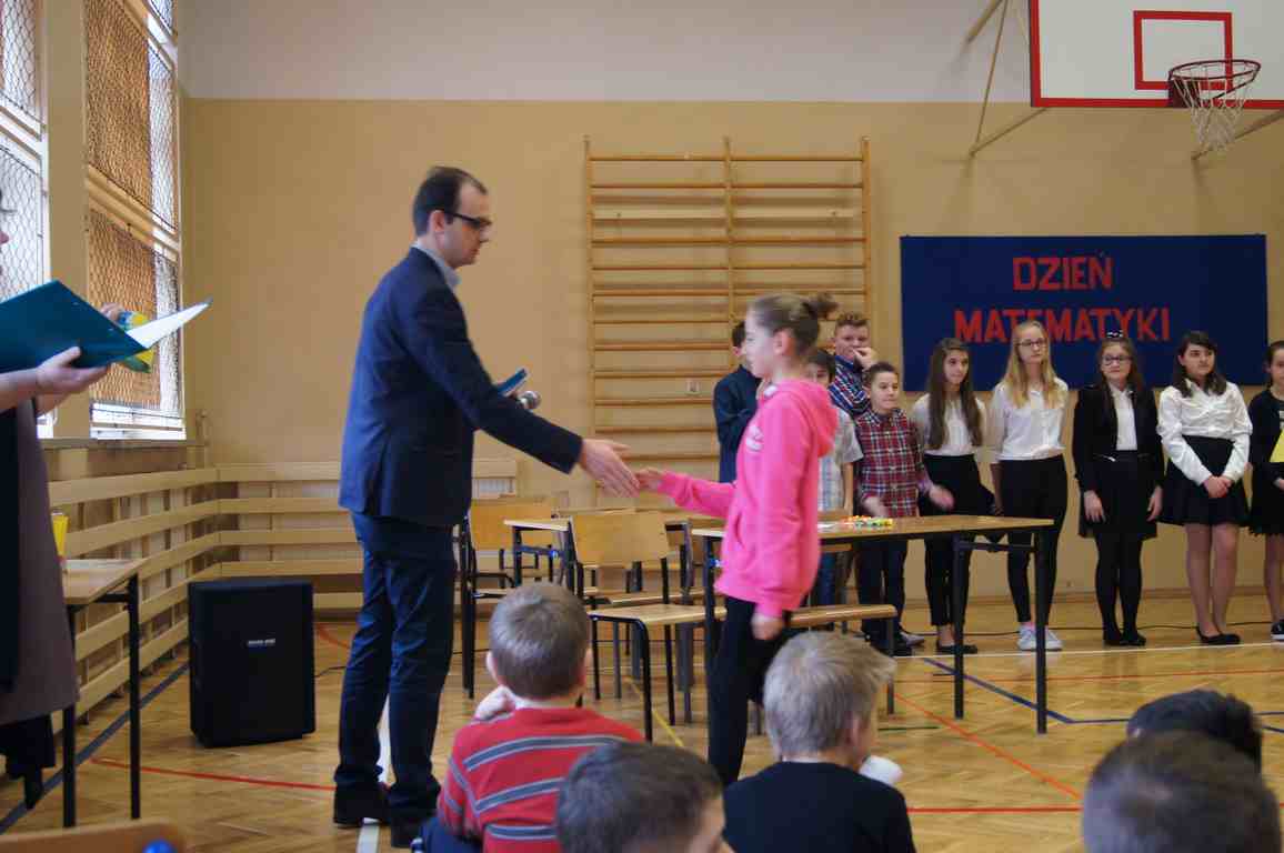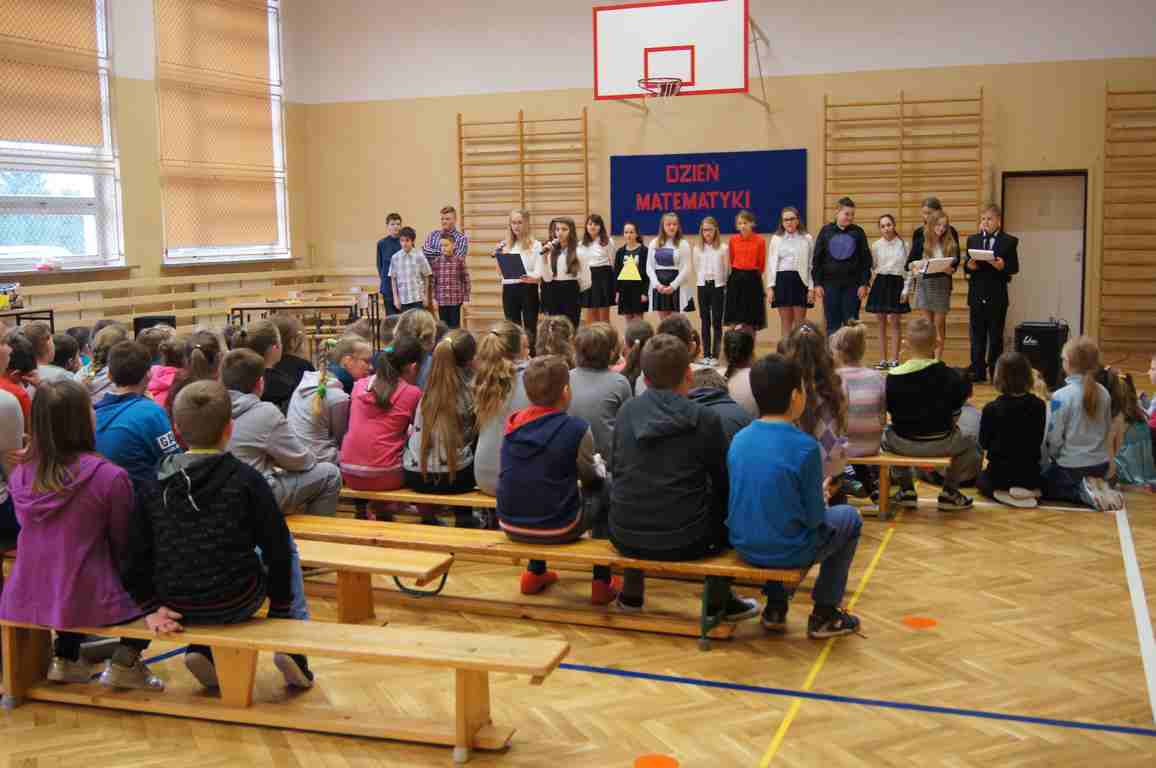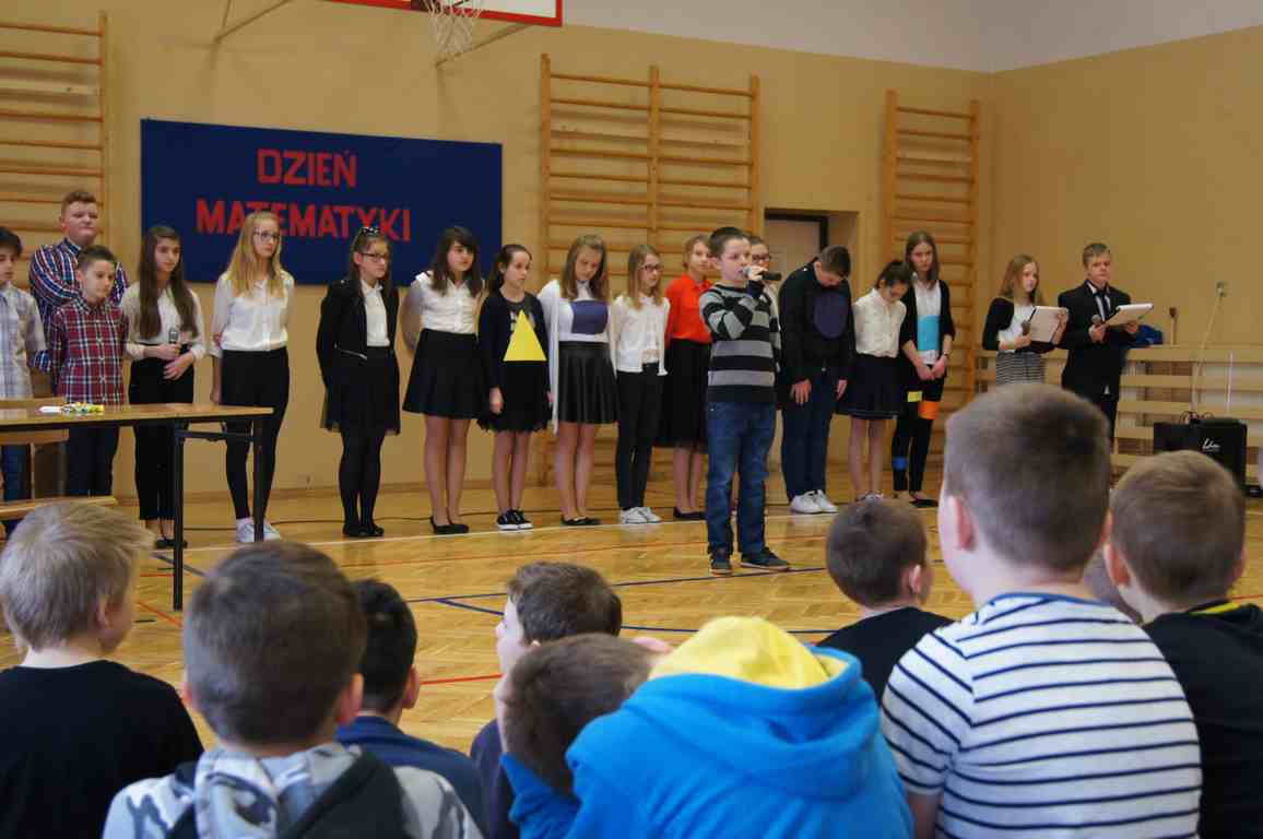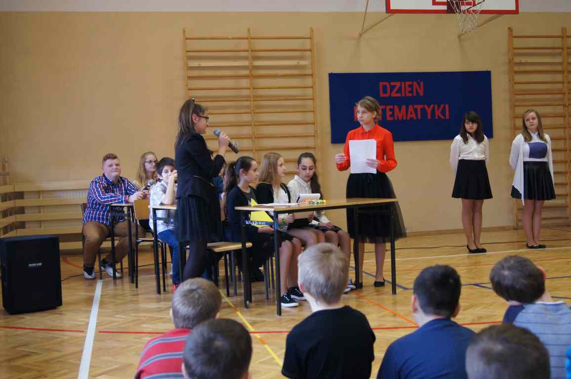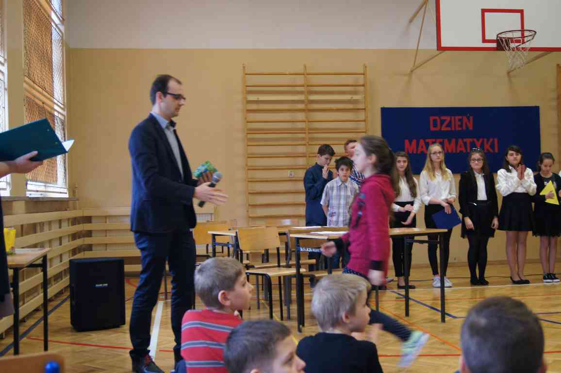 Szóstoklasiści w krótkiej inscenizacji przedstawili niewątpliwą przydatność znajomości zagadnień matematycznych w codziennym życiu i wykazali, że jest ona obecna w zasadzie we wszystkich jego dziedzinach. Ponadto uczniowie poprzez krótkie konkursy przeprowadzane zarówno na sali gimnastycznej, jak i w trakcie przerw na szkolnych korytarzach sprawdzili również umiejętność liczenia wśród dzieci i nauczycieli z naszej szkoły każdą poprawną odpowiedź nagradzając słodyczami. Tym sposobem przekonaliśmy się, jak przyjemnie jest znać matematykę 🙂