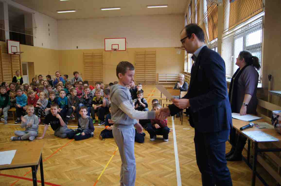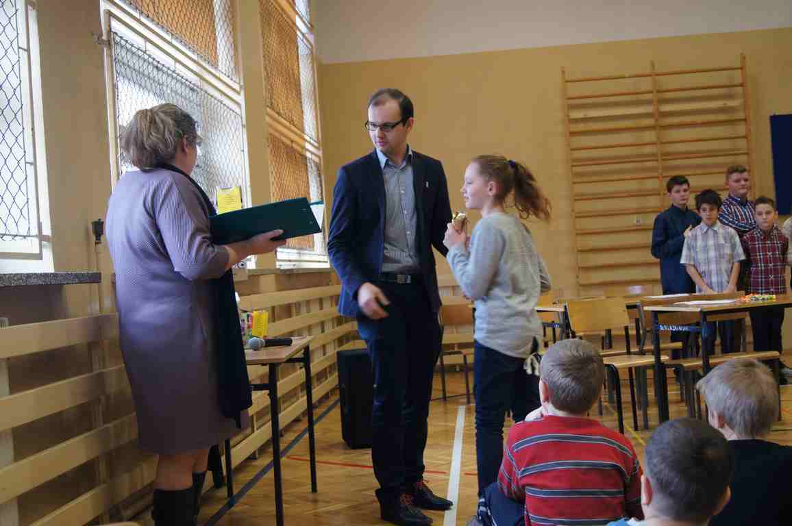 Po apelu pan dyrektor, Michał Wolak rozdał nagrody laureatom Matematycznego Czaru Par. I jak tu nie lubić matematyki?