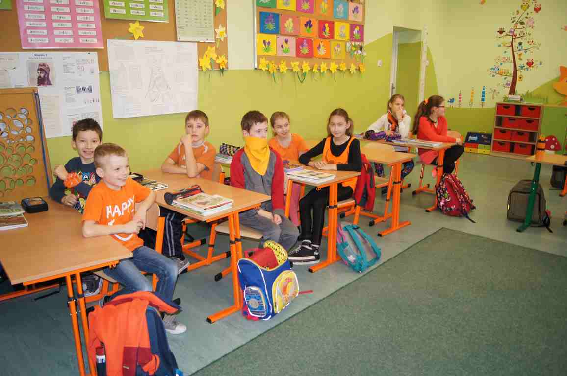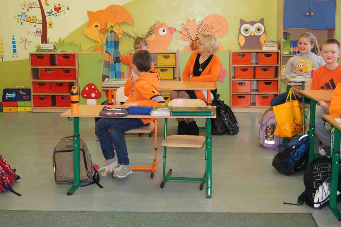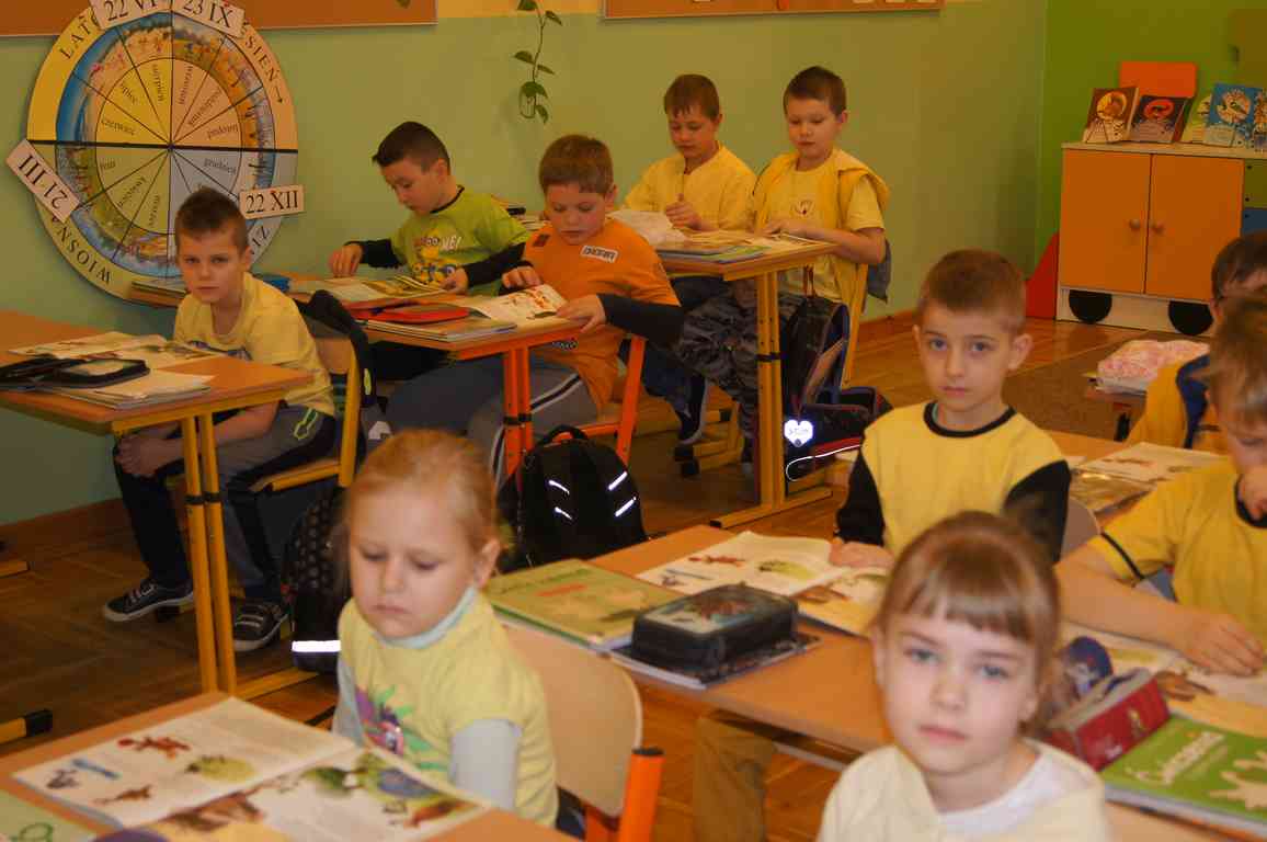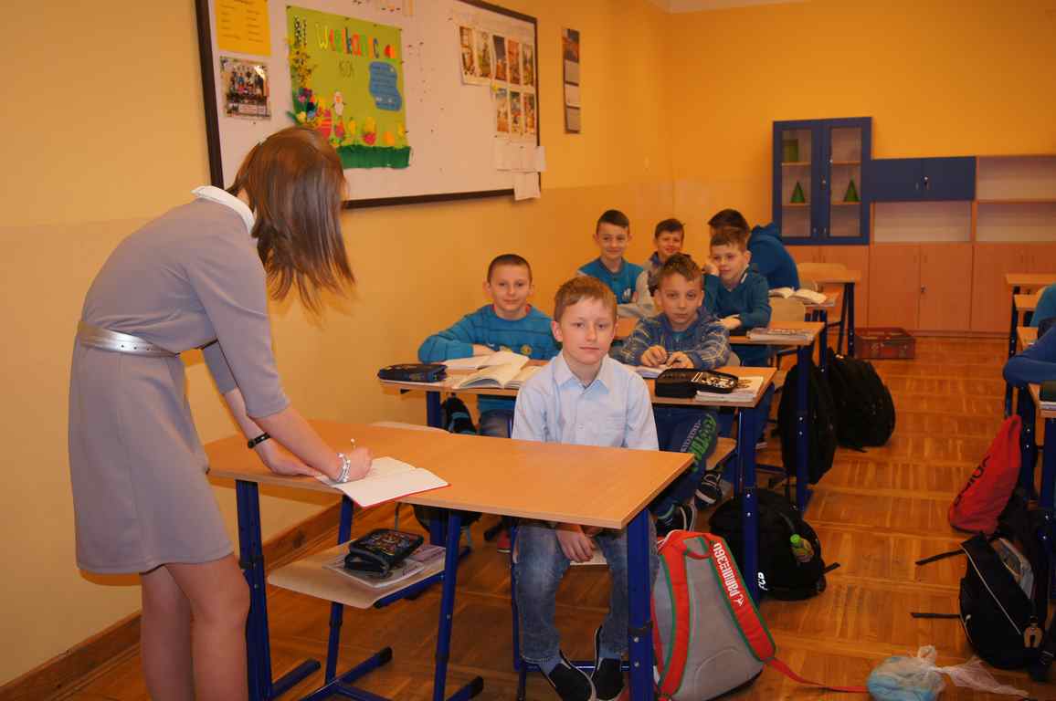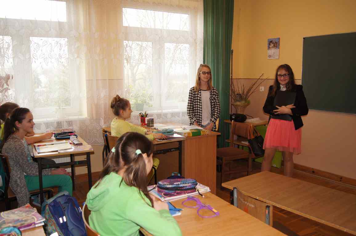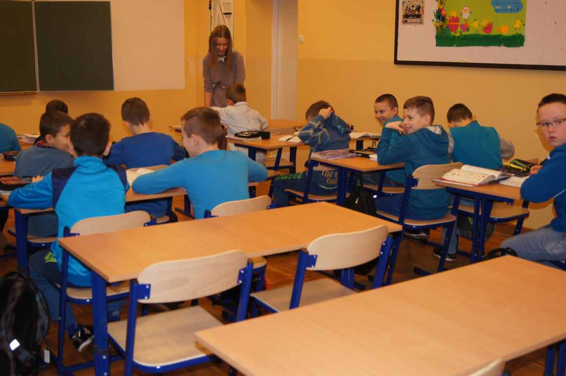 Podobnie rzecz się miała w tym roku. Samorząd Uczniowski, jako dodatkowy obowiązek, wprowadził w owym dniu nakaz założenia jednolitego kolorystycznie stroju. Każda klasa wylosowała kolor, w jakim należący do danego zespołu uczniowie mieli pojawić się 21 marca w szkole. Pomysł spotkał się z dużym zrozumieniem, dzięki czemu pierwszego dnia wiosny nasze dzieciaki na korytarzach tworzyły barwną tęczę. Szóstoklasiści, jako nauczyciele, spisali się znakomicie – przygotowani i odpowiedzialni z ogromnym zaangażowaniem pełnili swe obowiązki. Dla nauczycieli była to zaś bardzo dobra okazja, aby na swoją pracę popatrzeć trochę z innej perspektywy – perspektywy tego, który siedząc w ławce robi co może, by nie zwracać na siebie zbytniej uwagi 🙂