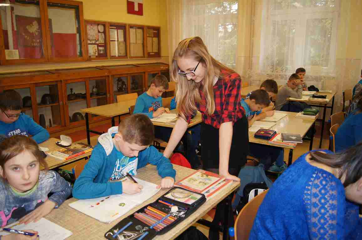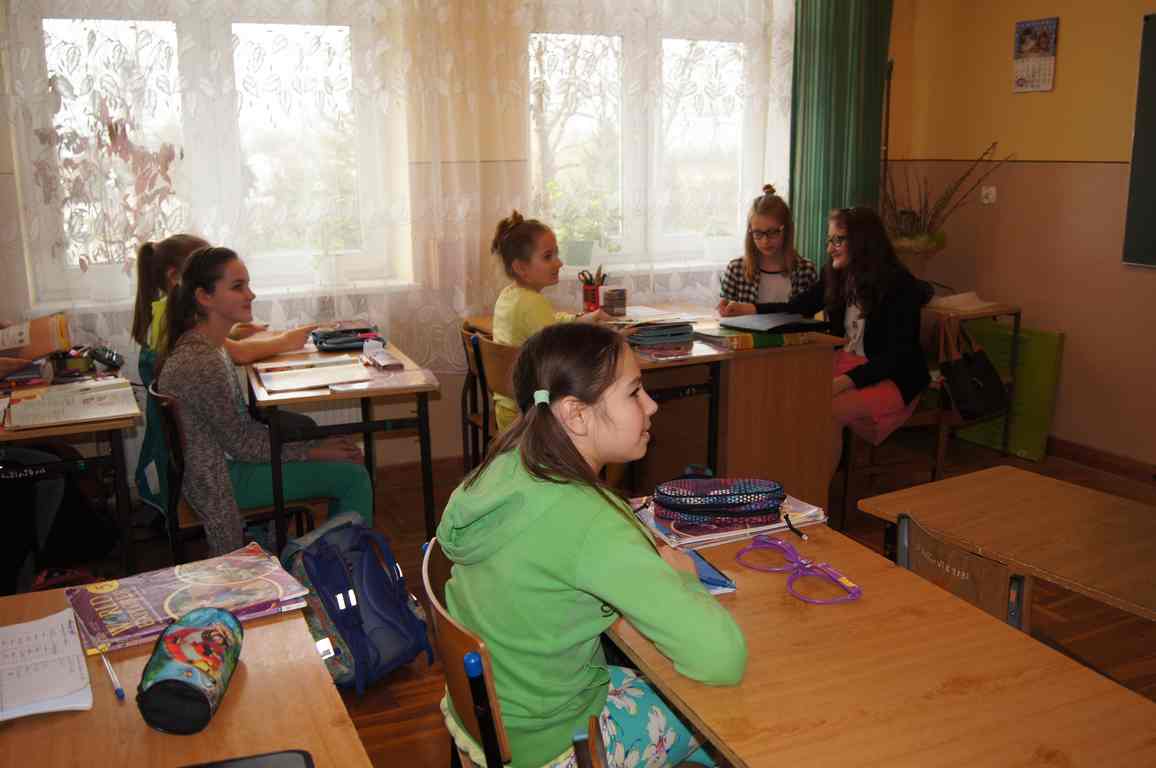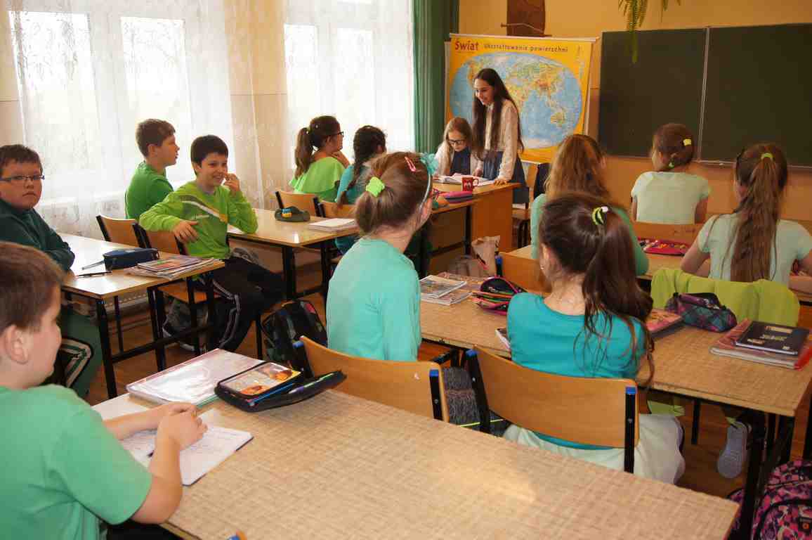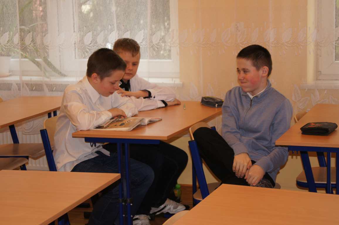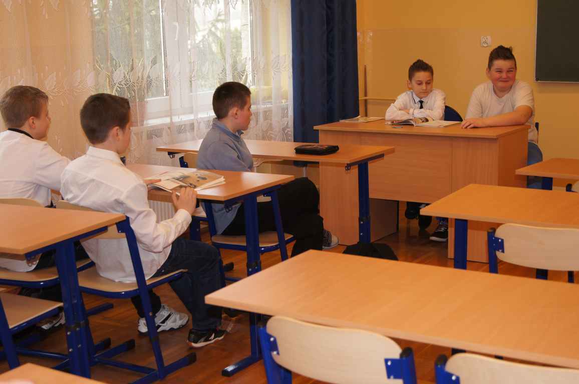 Podobnie rzecz się miała w tym roku. Samorząd Uczniowski, jako dodatkowy obowiązek, wprowadził w owym dniu nakaz założenia jednolitego kolorystycznie stroju. Każda klasa wylosowała kolor, w jakim należący do danego zespołu uczniowie mieli pojawić się 21 marca w szkole. Pomysł spotkał się z dużym zrozumieniem, dzięki czemu pierwszego dnia wiosny nasze dzieciaki na korytarzach tworzyły barwną tęczę. Szóstoklasiści, jako nauczyciele, spisali się znakomicie – przygotowani i odpowiedzialni z ogromnym zaangażowaniem pełnili swe obowiązki. Dla nauczycieli była to zaś bardzo dobra okazja, aby na swoją pracę popatrzeć trochę z innej perspektywy – perspektywy tego, który siedząc w ławce robi co może, by nie zwracać na siebie zbytniej uwagi 🙂