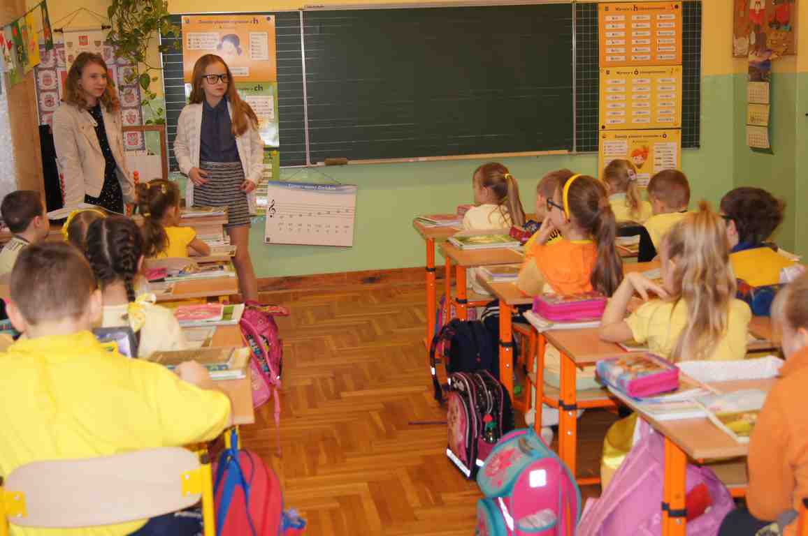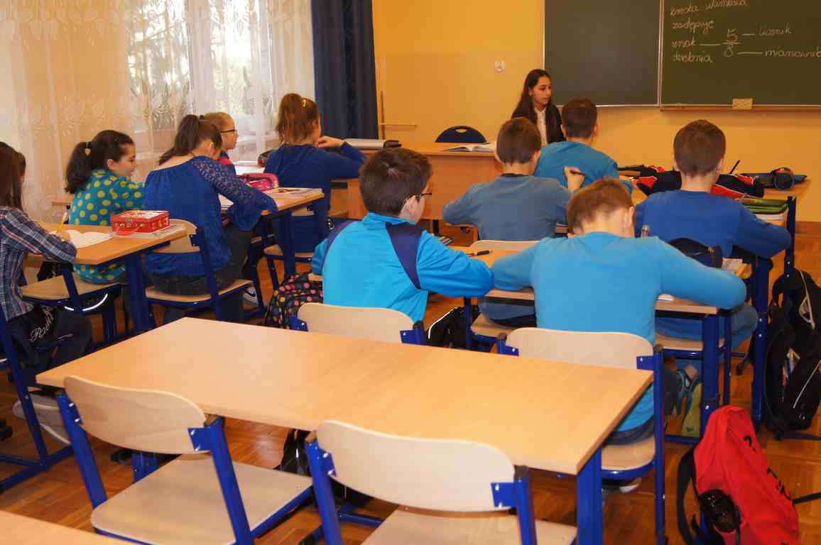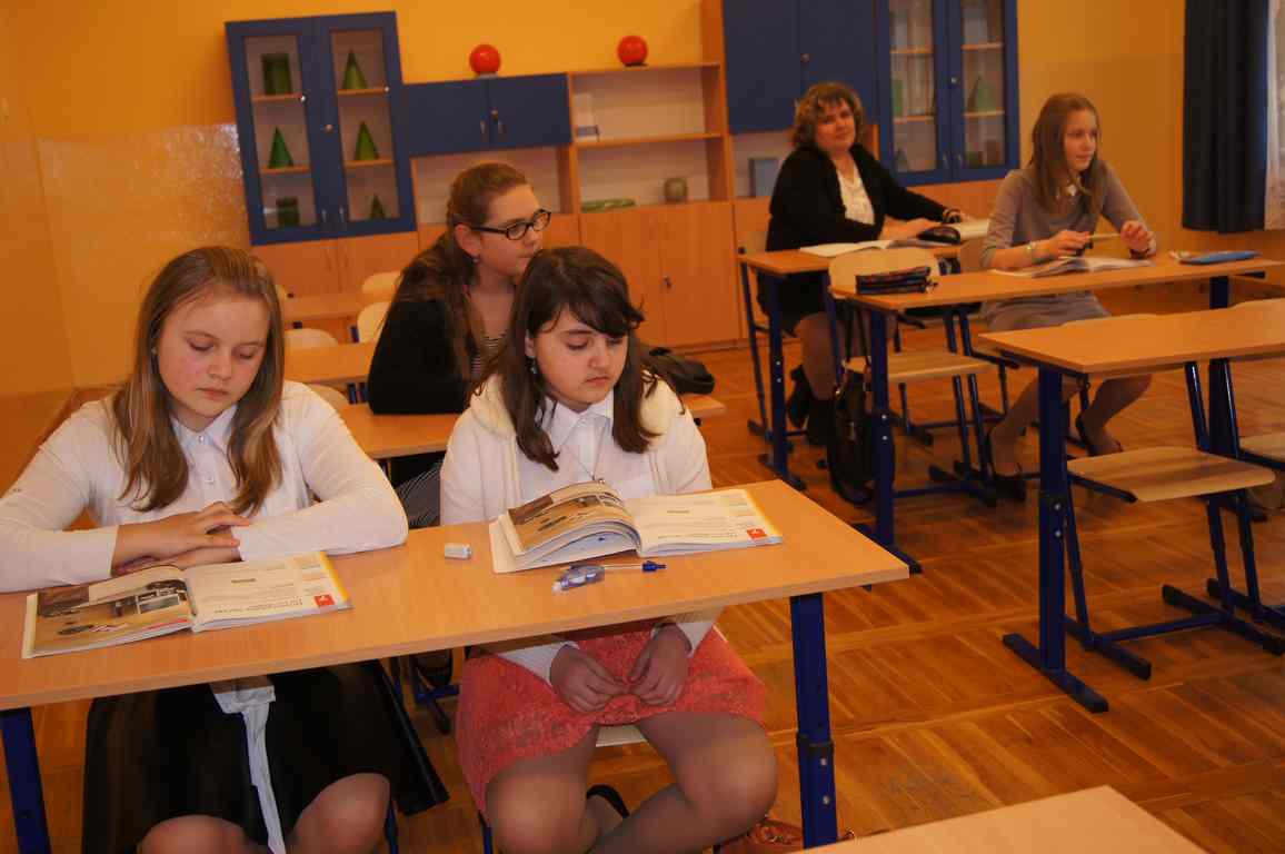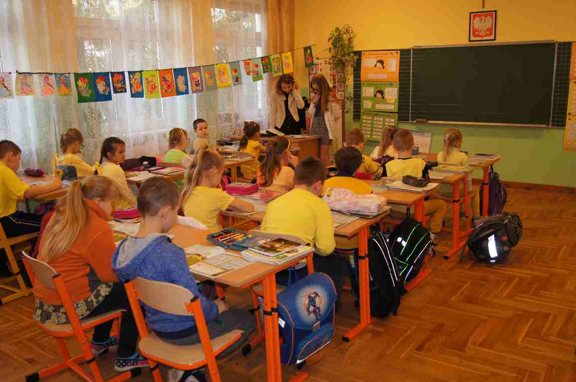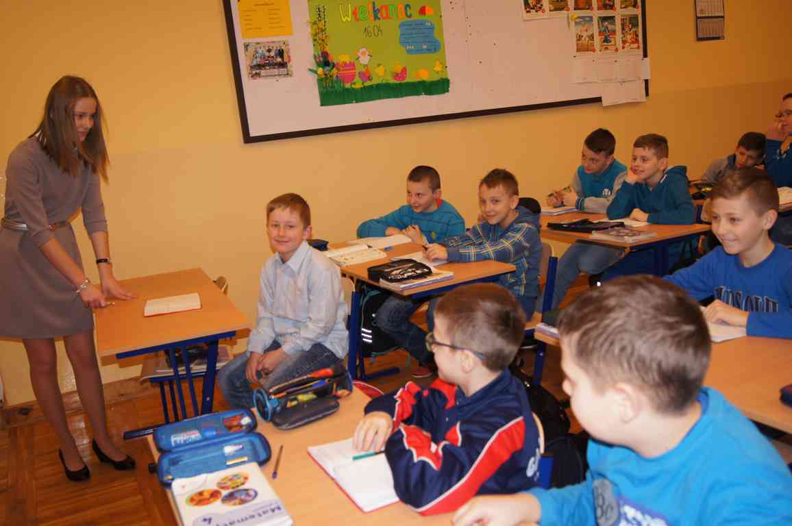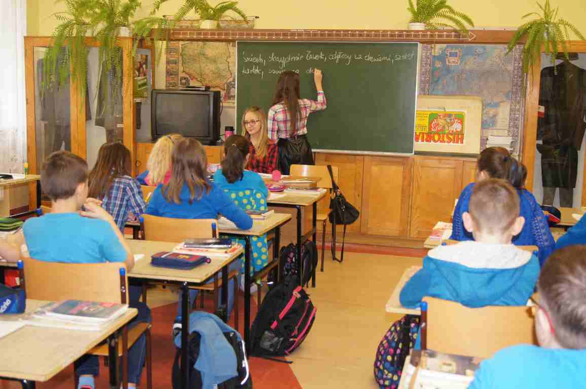 Podobnie rzecz się miała w tym roku. Samorząd Uczniowski, jako dodatkowy obowiązek, wprowadził w owym dniu nakaz założenia jednolitego kolorystycznie stroju. Każda klasa wylosowała kolor, w jakim należący do danego zespołu uczniowie mieli pojawić się 21 marca w szkole. Pomysł spotkał się z dużym zrozumieniem, dzięki czemu pierwszego dnia wiosny nasze dzieciaki na korytarzach tworzyły barwną tęczę. Szóstoklasiści, jako nauczyciele, spisali się znakomicie – przygotowani i odpowiedzialni z ogromnym zaangażowaniem pełnili swe obowiązki. Dla nauczycieli była to zaś bardzo dobra okazja, aby na swoją pracę popatrzeć trochę z innej perspektywy – perspektywy tego, który siedząc w ławce robi co może, by nie zwracać na siebie zbytniej uwagi 🙂