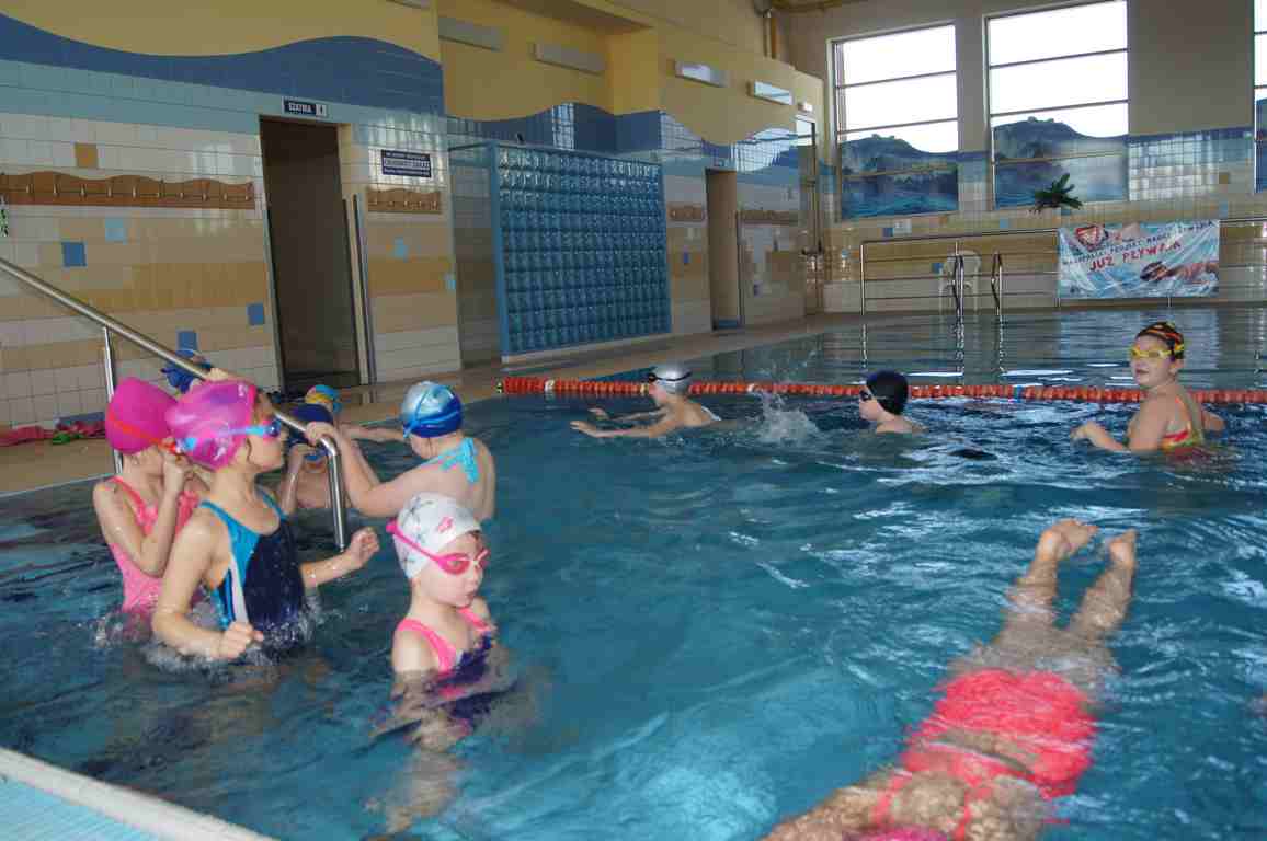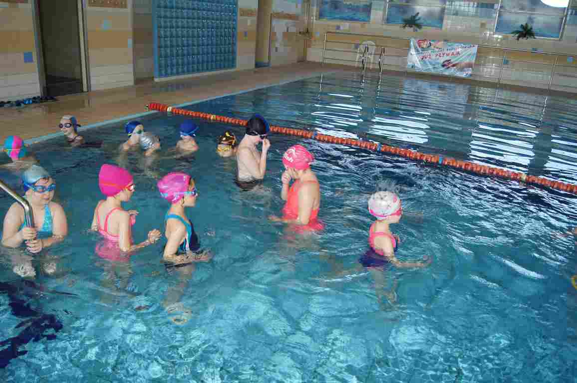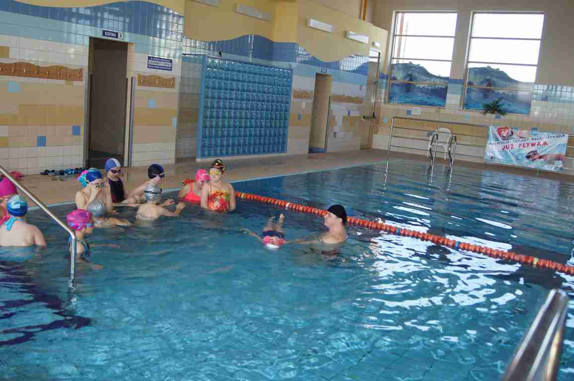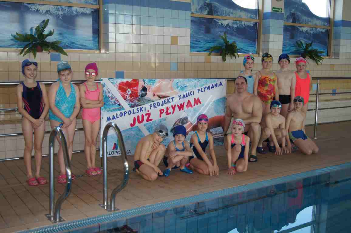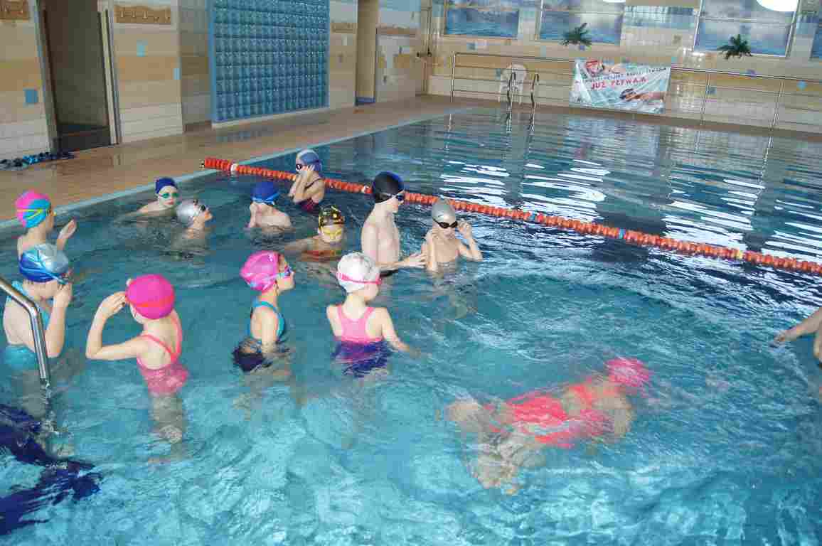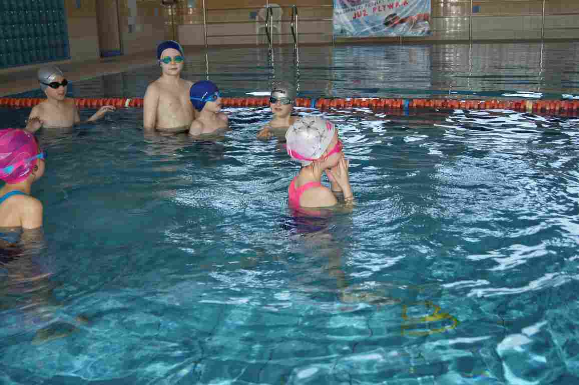 Od marca br. uczniowie klas II – III biorą udział w kursie pływania zorganizowanym na basenie w Jadownikach Mokrych w ramach projektu „Już pływam”. Miło jest patrzeć, jak umiejętności naszych podopiecznych wzrastają wraz z każdym pobytem na basenie. Dzieci nie tylko są już bardzo oswojone z wodą. Bez problemu potrafią w niej zanurkować, znaleźć pod taflą zgubiony krążek, czy przepłynąć pod niskim mostkiem. Umieją także utrzymywać się na wodzie zarówno na plecach, jak i na brzuchu, a zdecydowana większość z nich potrafi dryfować. Oczywiście największą frajdę sprawiają skoki do wody – im dalej, tym lepiej 🙂