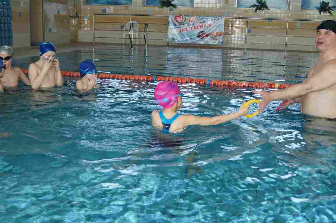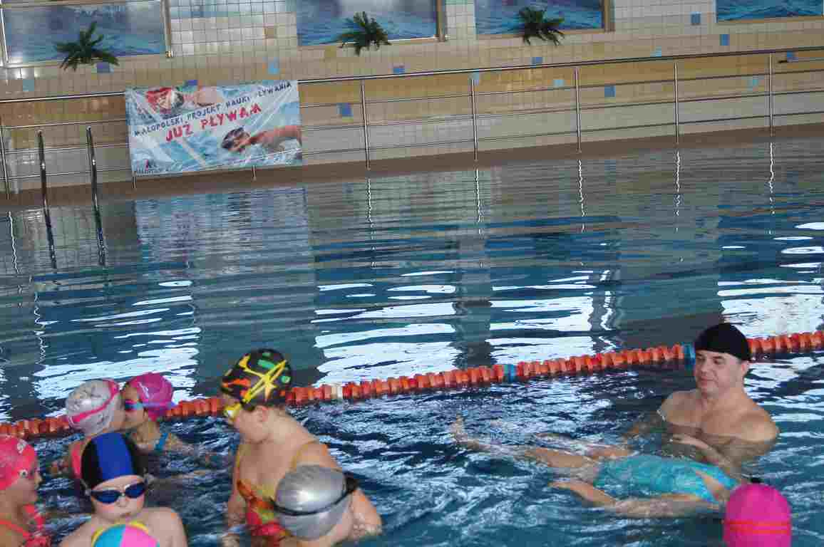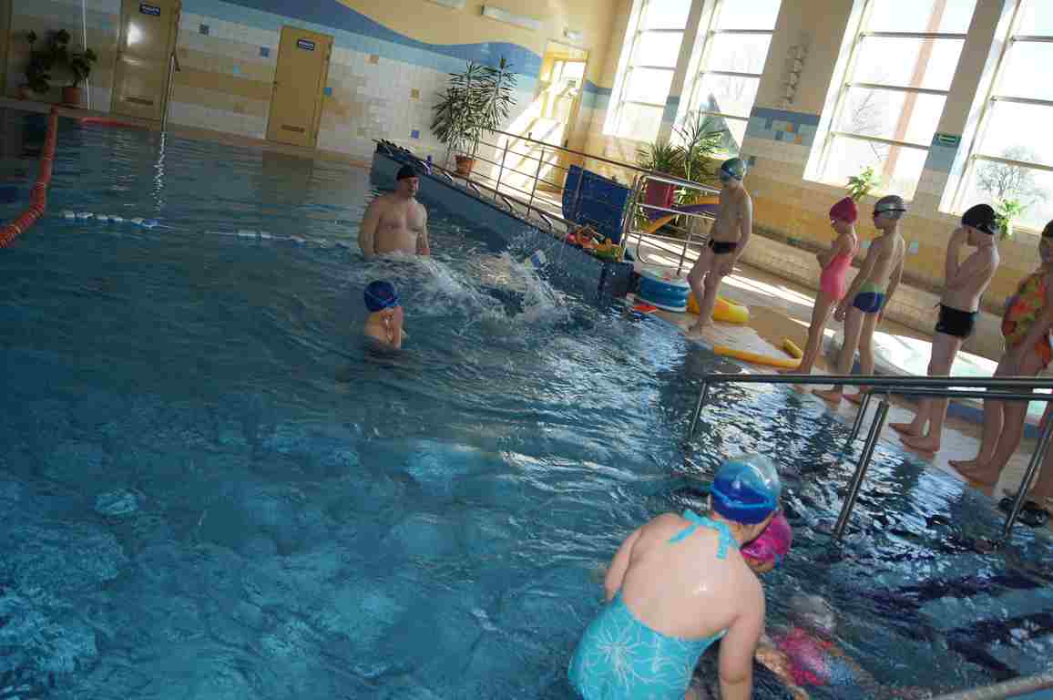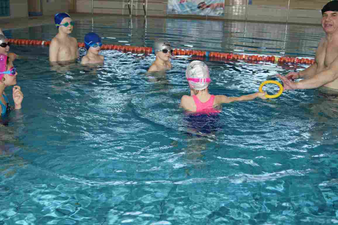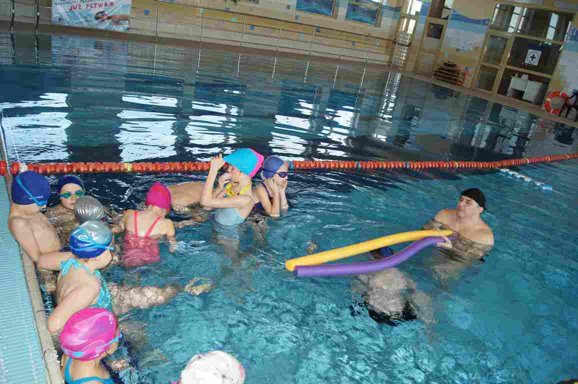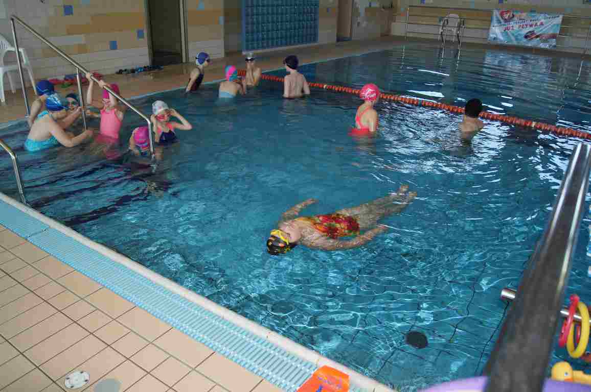 Od marca br. uczniowie klas II – III biorą udział w kursie pływania zorganizowanym na basenie w Jadownikach Mokrych w ramach projektu „Już pływam”. Miło jest patrzeć, jak umiejętności naszych podopiecznych wzrastają wraz z każdym pobytem na basenie. Dzieci nie tylko są już bardzo oswojone z wodą. Bez problemu potrafią w niej zanurkować, znaleźć pod taflą zgubiony krążek, czy przepłynąć pod niskim mostkiem. Umieją także utrzymywać się na wodzie zarówno na plecach, jak i na brzuchu, a zdecydowana większość z nich potrafi dryfować. Oczywiście największą frajdę sprawiają skoki do wody – im dalej, tym lepiej 🙂