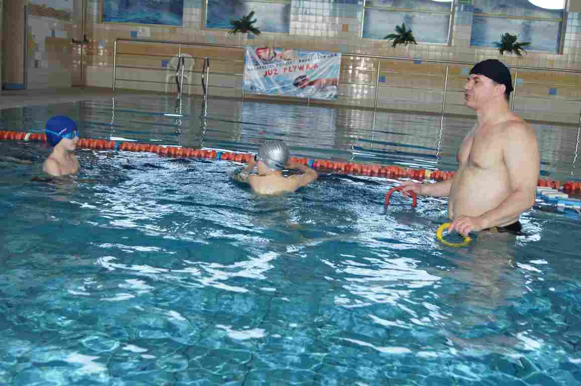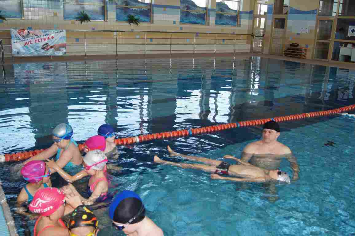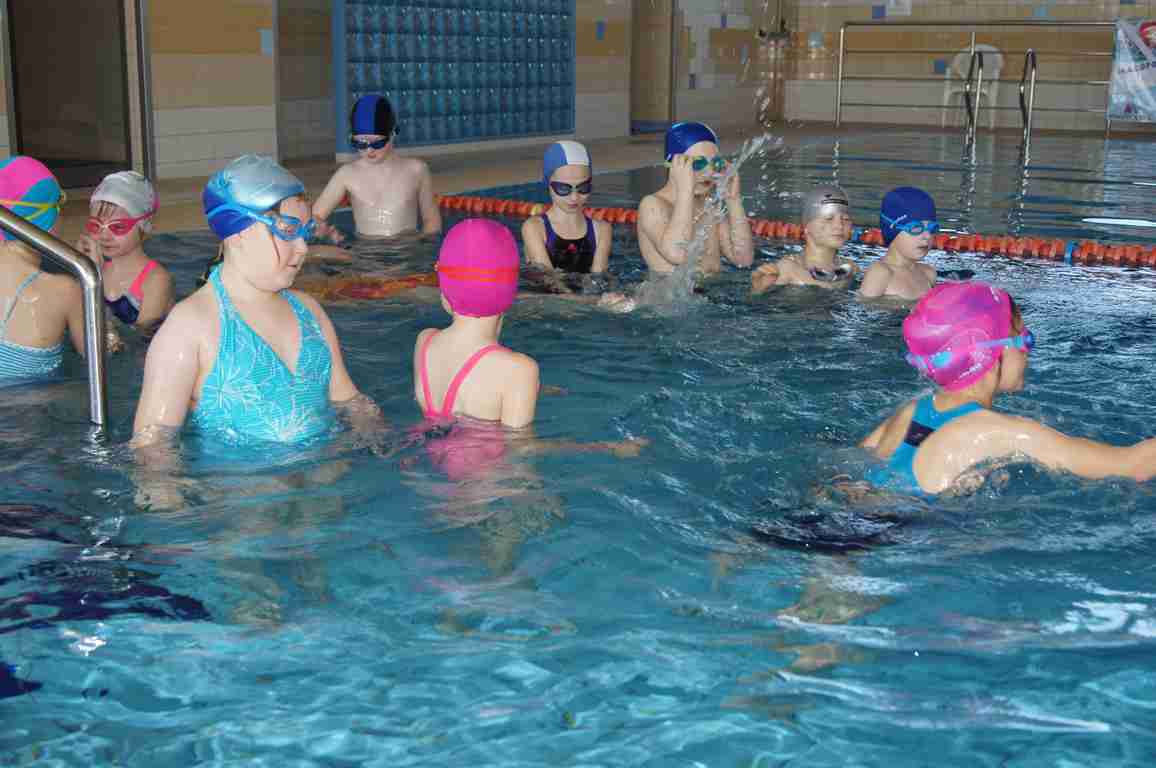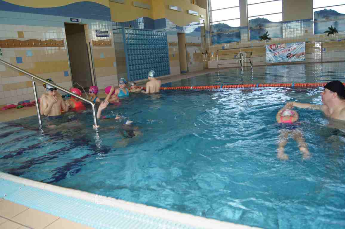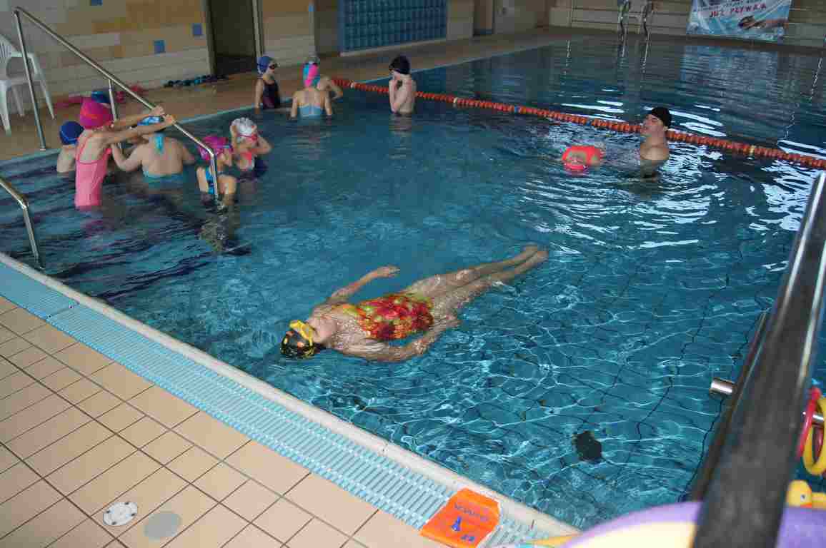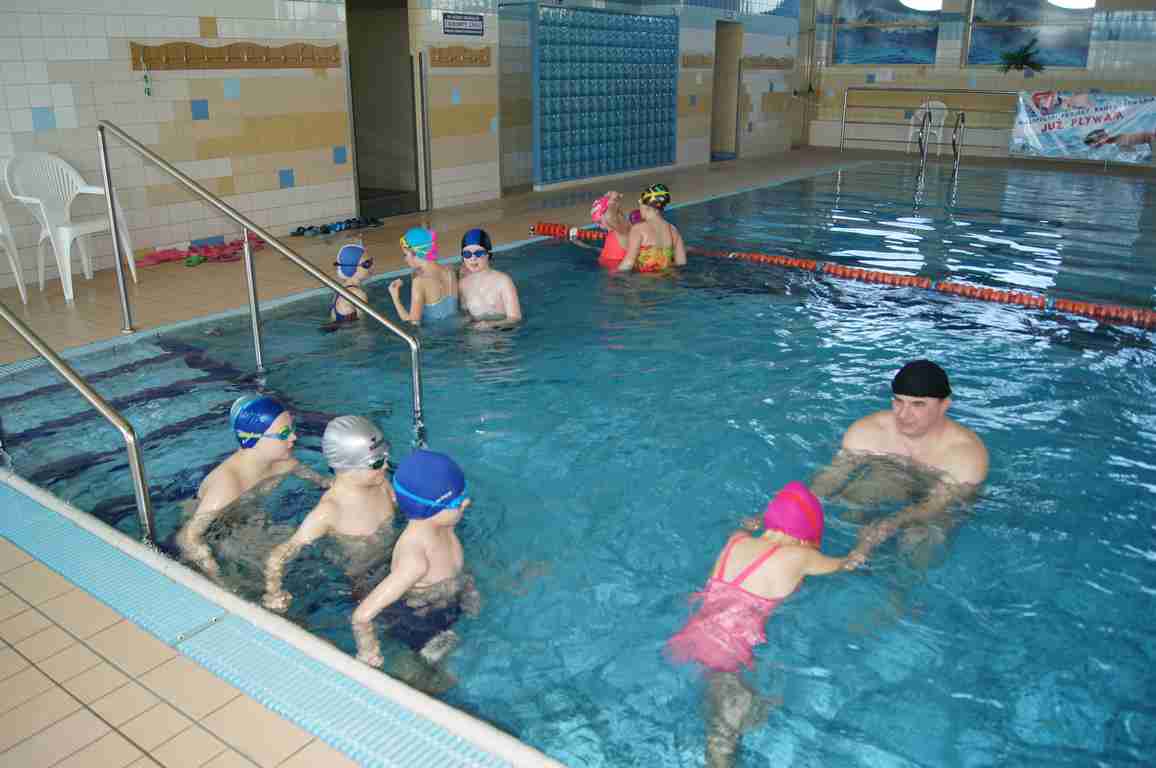 Od marca br. uczniowie klas II – III biorą udział w kursie pływania zorganizowanym na basenie w Jadownikach Mokrych w ramach projektu „Już pływam”. Miło jest patrzeć, jak umiejętności naszych podopiecznych wzrastają wraz z każdym pobytem na basenie. Dzieci nie tylko są już bardzo oswojone z wodą. Bez problemu potrafią w niej zanurkować, znaleźć pod taflą zgubiony krążek, czy przepłynąć pod niskim mostkiem. Umieją także utrzymywać się na wodzie zarówno na plecach, jak i na brzuchu, a zdecydowana większość z nich potrafi dryfować. Oczywiście największą frajdę sprawiają skoki do wody – im dalej, tym lepiej 🙂