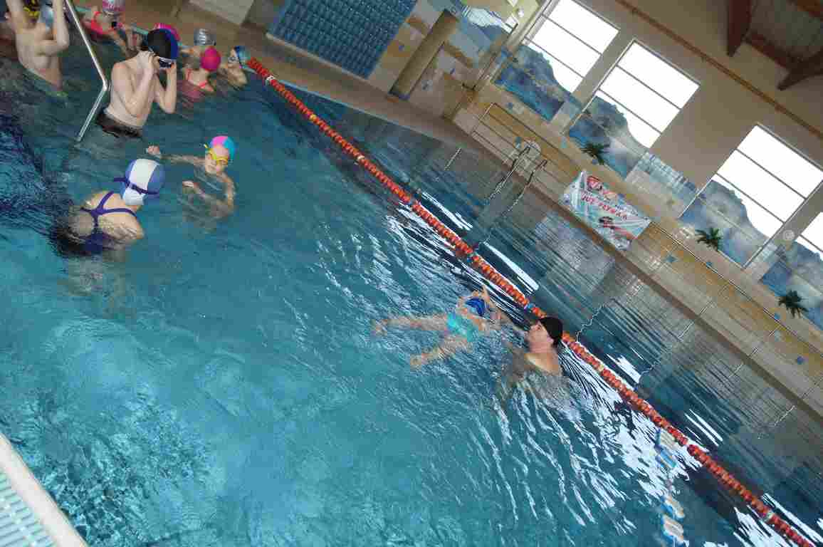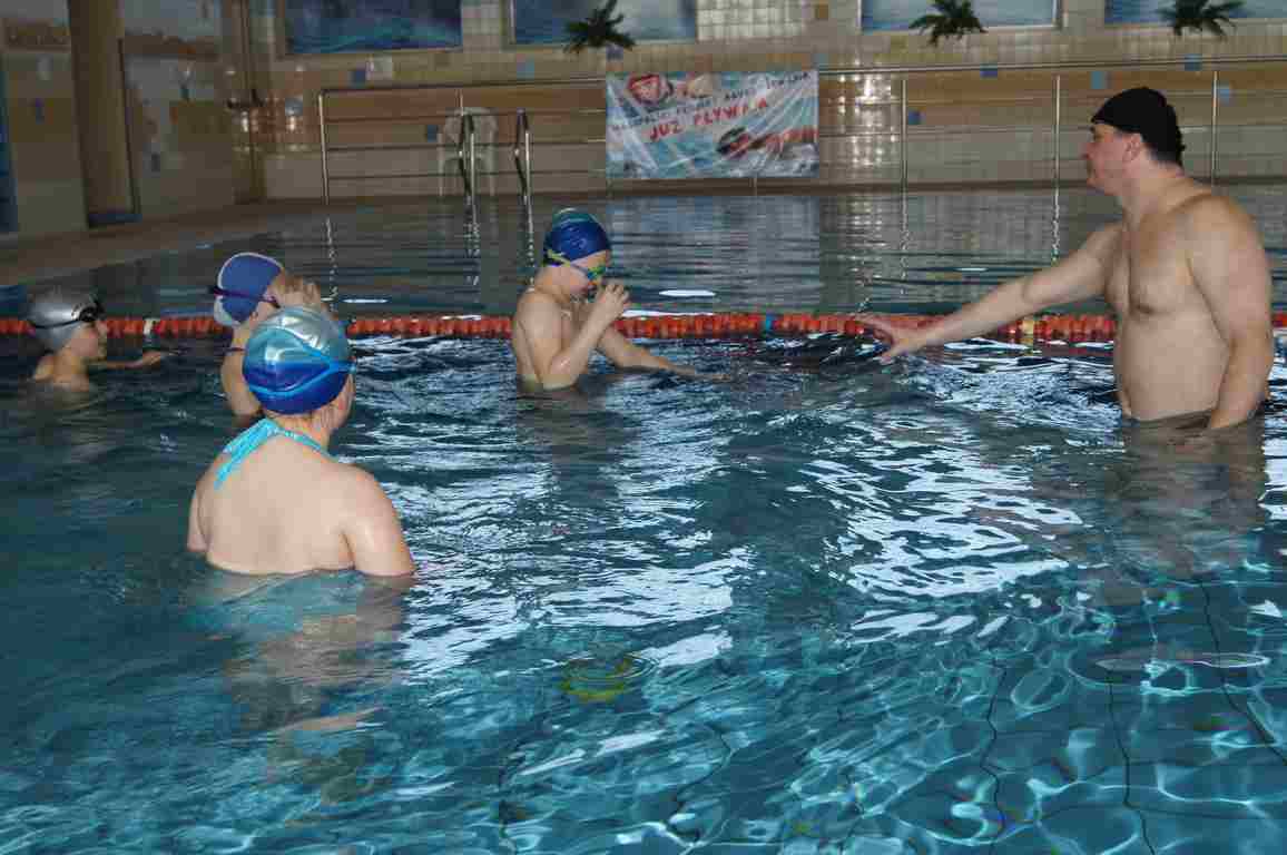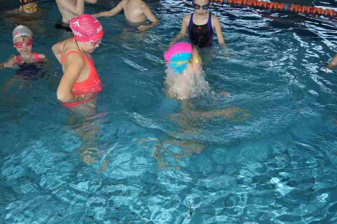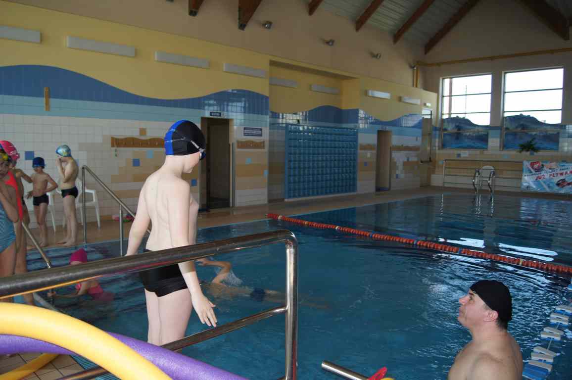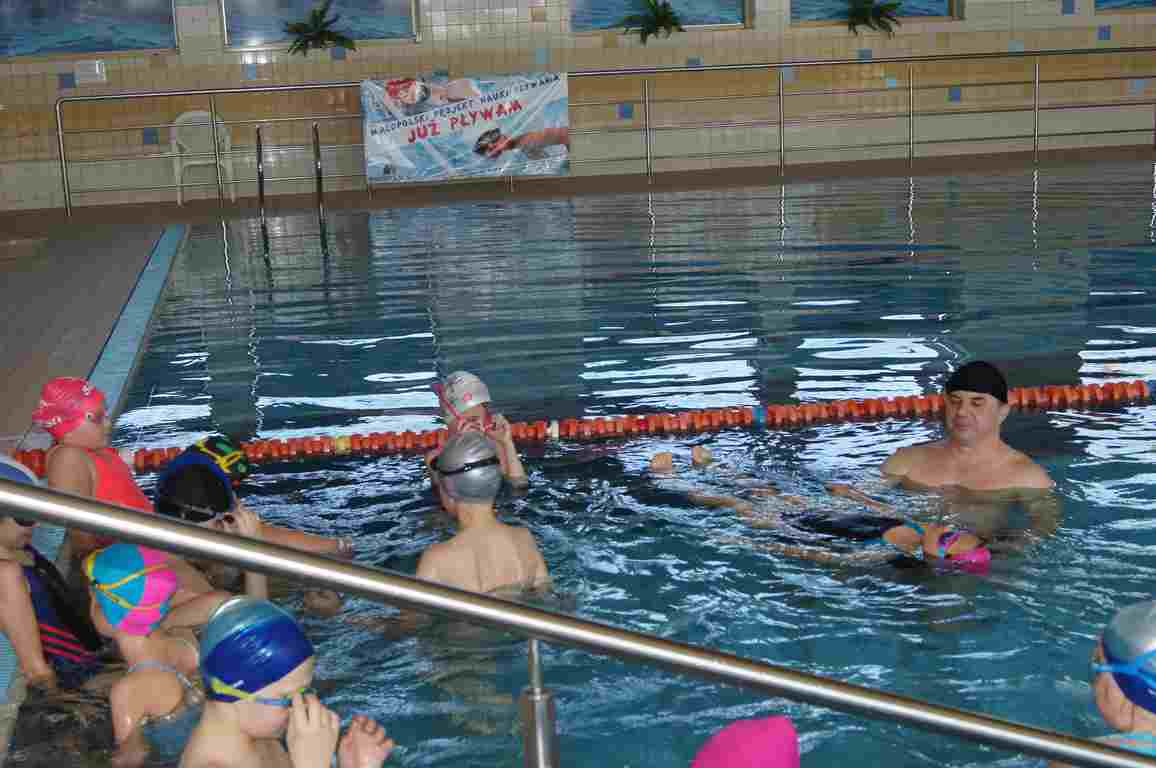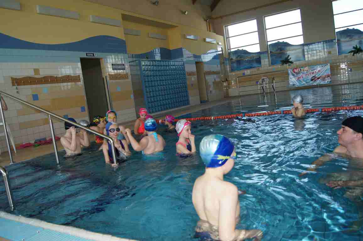 Od marca br. uczniowie klas II – III biorą udział w kursie pływania zorganizowanym na basenie w Jadownikach Mokrych w ramach projektu „Już pływam”. Miło jest patrzeć, jak umiejętności naszych podopiecznych wzrastają wraz z każdym pobytem na basenie. Dzieci nie tylko są już bardzo oswojone z wodą. Bez problemu potrafią w niej zanurkować, znaleźć pod taflą zgubiony krążek, czy przepłynąć pod niskim mostkiem. Umieją także utrzymywać się na wodzie zarówno na plecach, jak i na brzuchu, a zdecydowana większość z nich potrafi dryfować. Oczywiście największą frajdę sprawiają skoki do wody – im dalej, tym lepiej 🙂