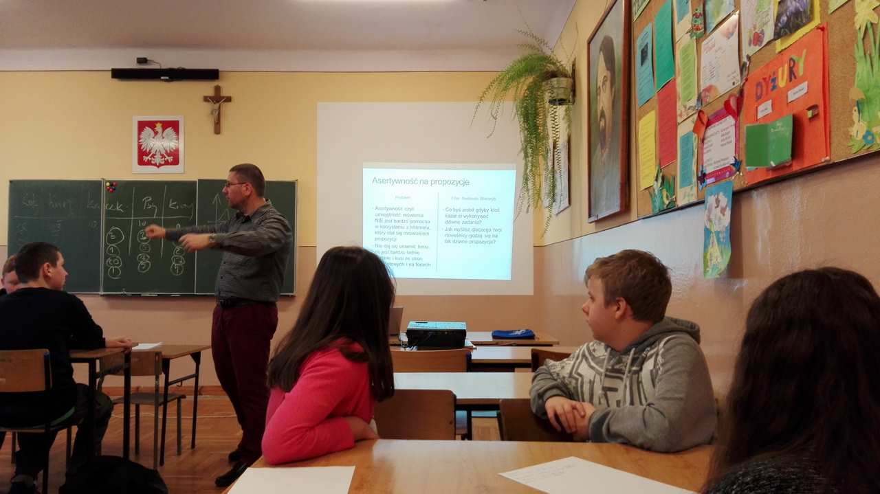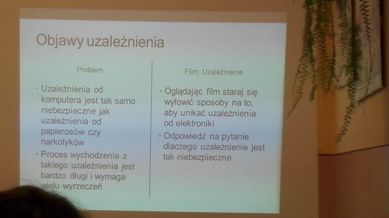 Pan pedagog i terapeuta prowadzący zajęcia z uczniami w sposób niezwykle ciekawy, z ogromną znajomością tematu i doświadczeniem w pracy terapeutycznej z uzależnionymi od komputera i Internetu, pokazał młodzieży jakie są konsekwencje bezmyślnego korzystania z sieci.