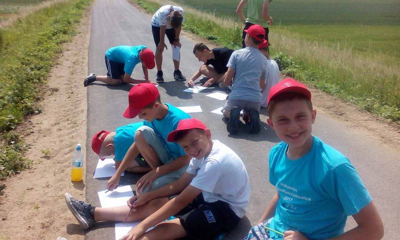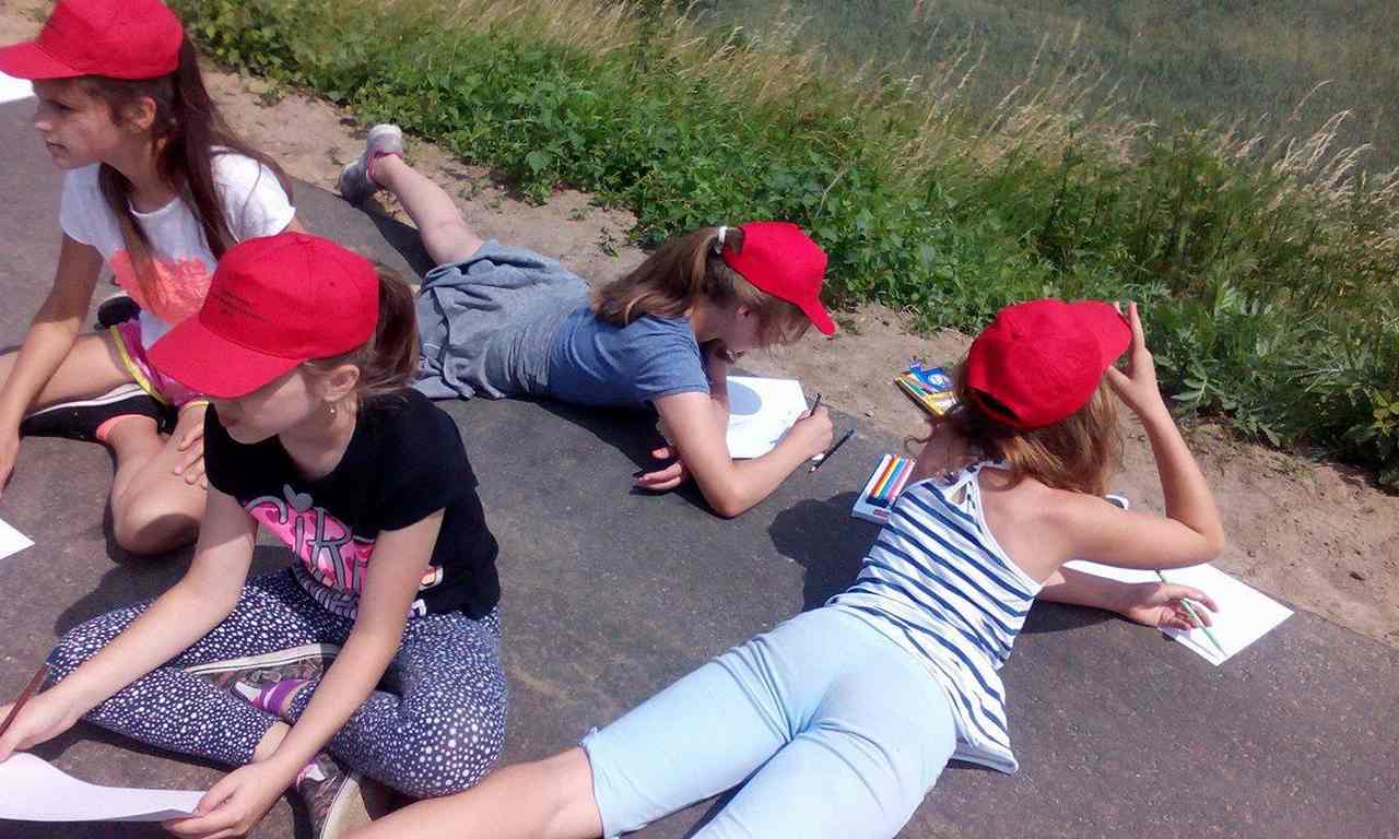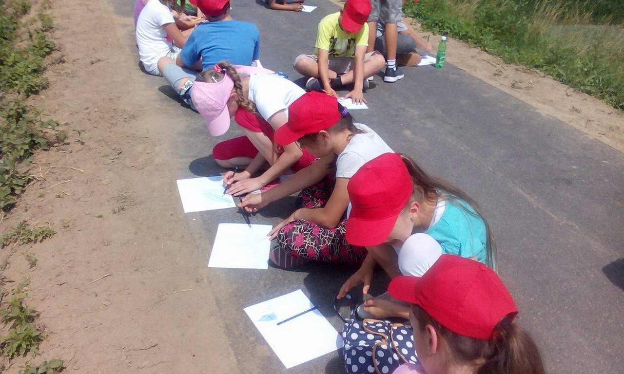 W pierwszym dniu naszej półkolonii, po oficjalnym jej rozpoczęciu w sali gimnastycznej i obfitym śniadaniu udaliśmy się w plener. Wycieczka wiodła ścieżką rowerową Velo Dunajec na odcinku Wietrzychowice-Szymanowice. Po znalezieniu interesującej panoramy części naszej wioski każdy półkolonista rozpoczął tworzenie pracy plastycznej na miarę własnych możliwości artystycznych. Po ukończeniu szkiców i rysunków przeszliśmy dróżką ku Kościołowi w Wietrzychowicach i tam, pod zabytkową dzwonnicą specjalne jury oceniło zgromadzone prace. Wyłoniliśmy 4 piękne krajobrazy, które zostaną nagrodzone na zakończenie półkolonii.