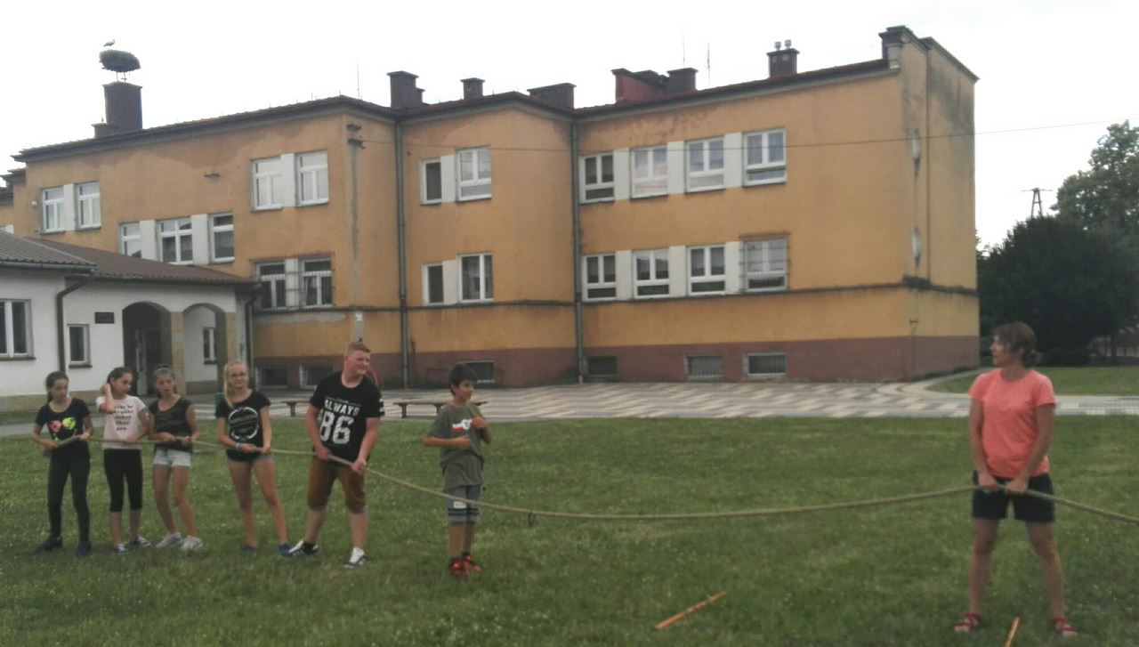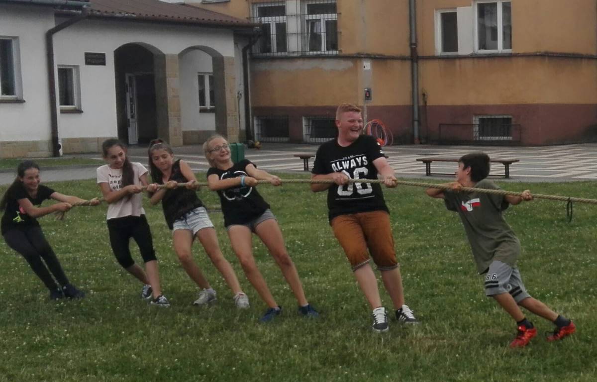 Po obiedzie utworzyliśmy stacje sportowe, na których odbywała się rywalizacja w przeciąganiu liny, piłce ręcznej, ringo i piłce nożnej.
