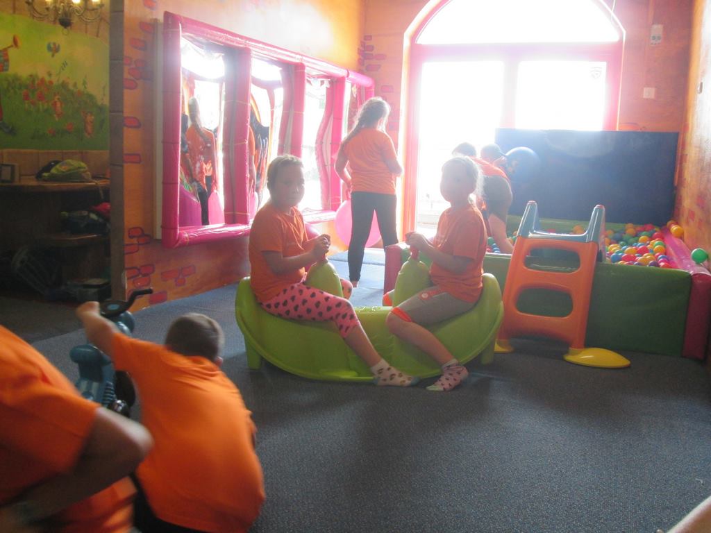 Półkoloniści z grupy młodszej odwiedzili Tarnów. Swoją wizytę rozpoczęli w „Promiennym Zamku” – miejscu, gdzie każdy dzieciak lubiący ruch i dobrą zabawę czuje się jak ryba w wodzie. Jako, że nasze dzieciaki dysponują wprost niesamowitymi zasobami energii, zabawa była przednia. Dobrze, że zameczek przetrwał 🙂 Uszczuplone nieco pokłady siły i witalności dzieciaki uzupełniły w kolejnym przybytku rozkoszy – Restauracji McDonald’s. Pobyt w Tarnowie zakończyliśmy seansem w kinie 3D, w którym to przy wiadereczkach i kubełkach prażonej kukurydzy obejrzeliśmy fascynujące przygody Smerfów 🙂