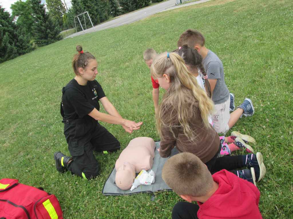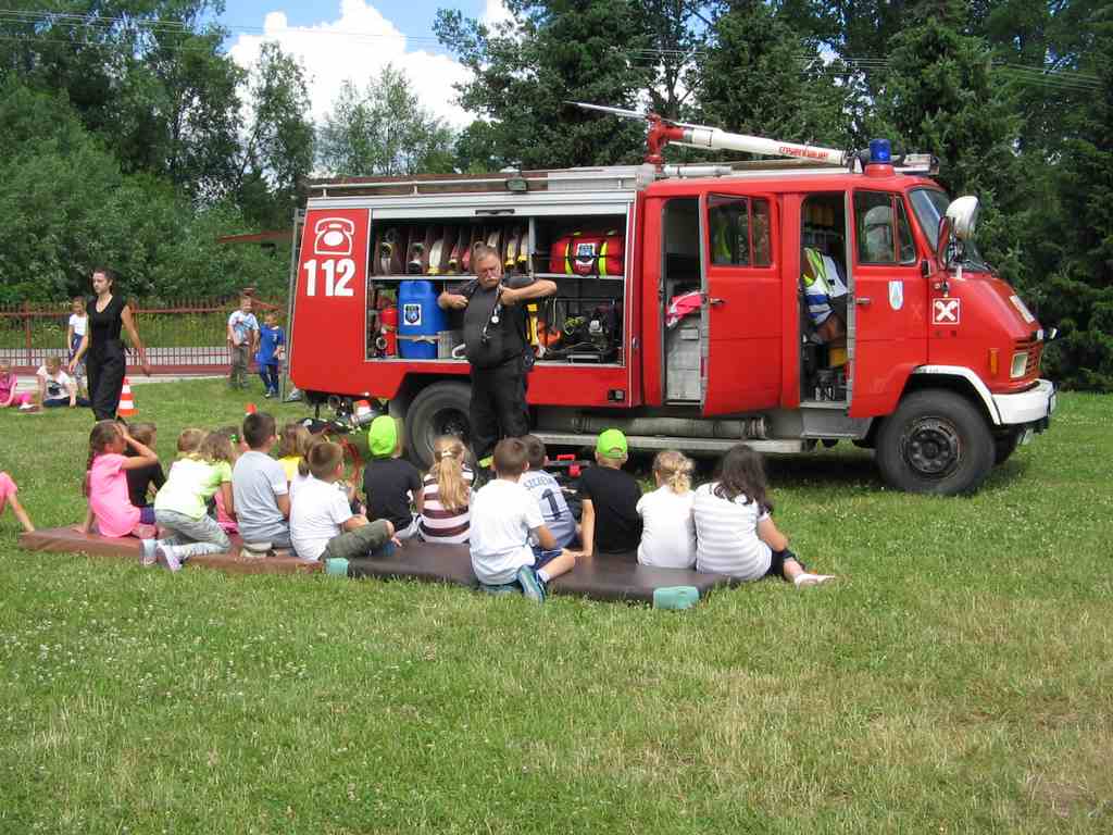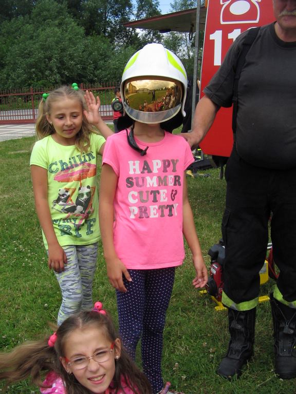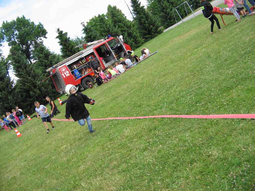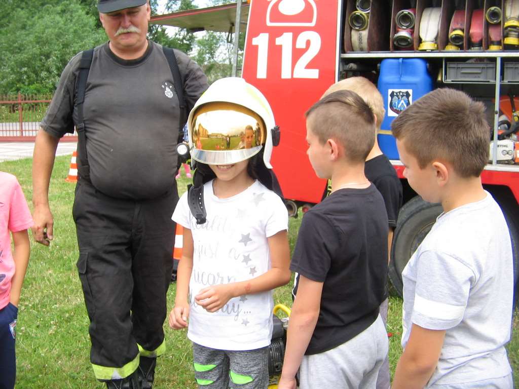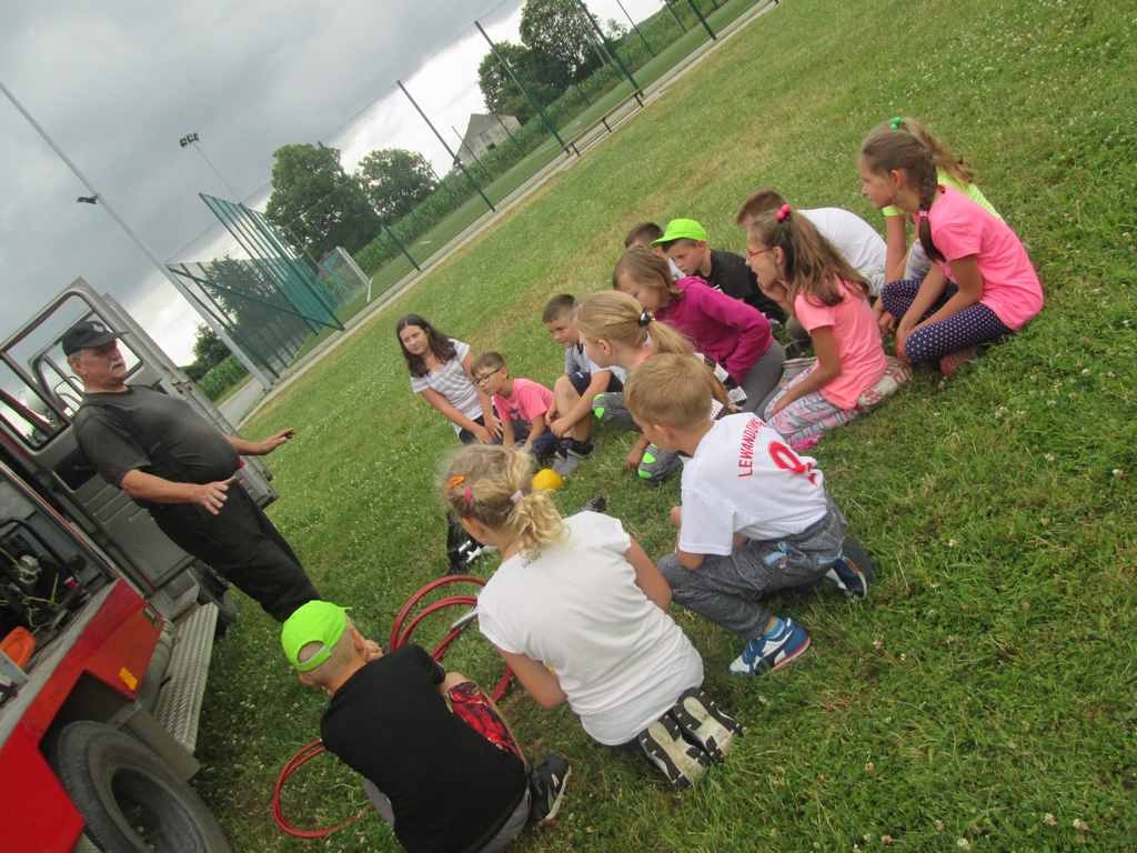 Drugi tydzień półkolonii grupa młodsza rozpoczęła ze strażakami z OSP Wietrzychowice. Dzieciaki wzięły udział w zawodach strażackich, odbyły szkolenie z pierwszej pomocy oraz zapoznały się ze sprzętem, z jakim strażacy pracują na co dzień. Wizyta zaprzyjaźnionych strażaków tradycyjnie zakończyła się uruchomieniem kurtyny wodnej, co jest zdecydowanie ulubionym momentem naszych kolonistów.