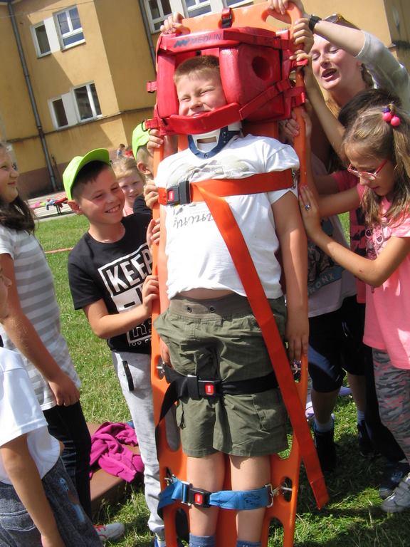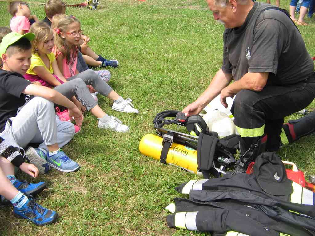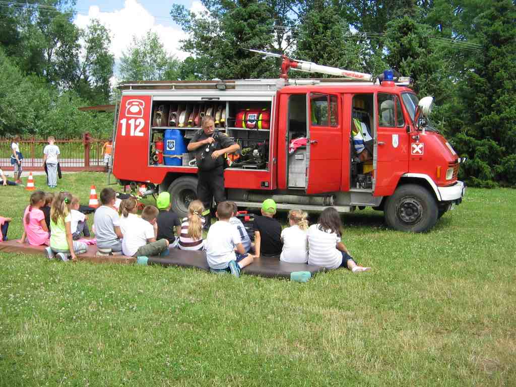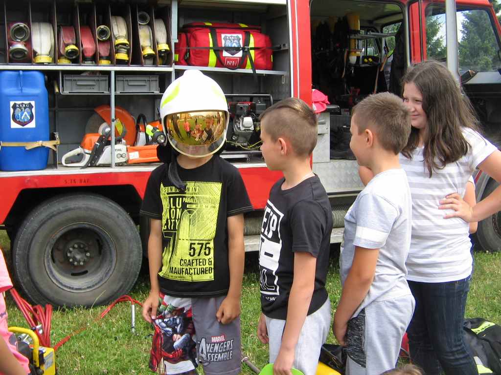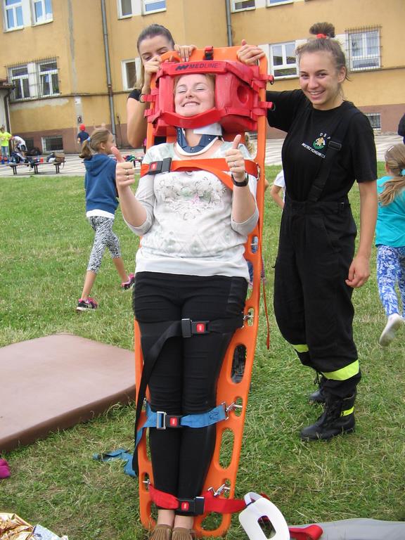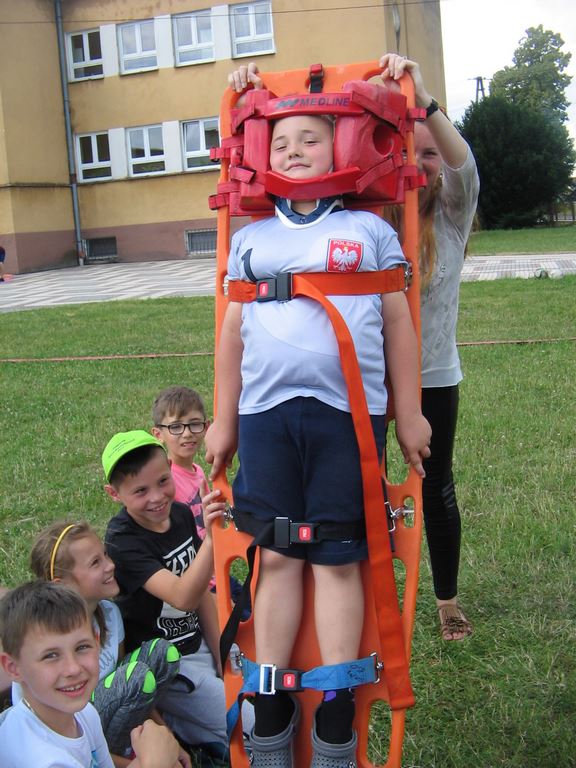 Drugi tydzień półkolonii grupa młodsza rozpoczęła ze strażakami z OSP Wietrzychowice. Dzieciaki wzięły udział w zawodach strażackich, odbyły szkolenie z pierwszej pomocy oraz zapoznały się ze sprzętem, z jakim strażacy pracują na co dzień. Wizyta zaprzyjaźnionych strażaków tradycyjnie zakończyła się uruchomieniem kurtyny wodnej, co jest zdecydowanie ulubionym momentem naszych kolonistów.