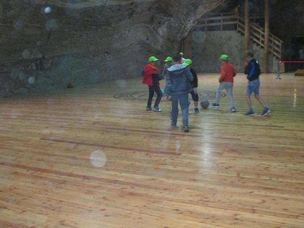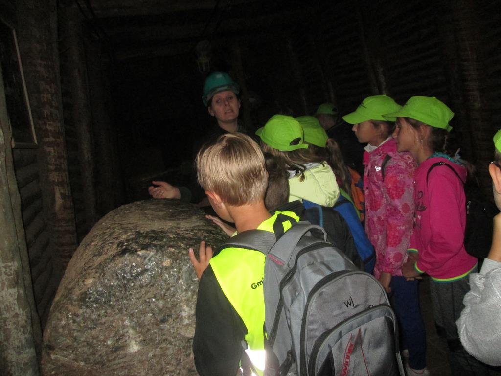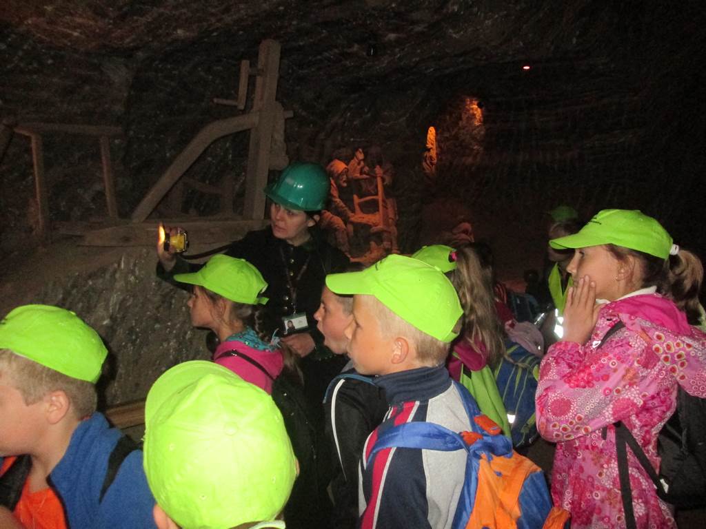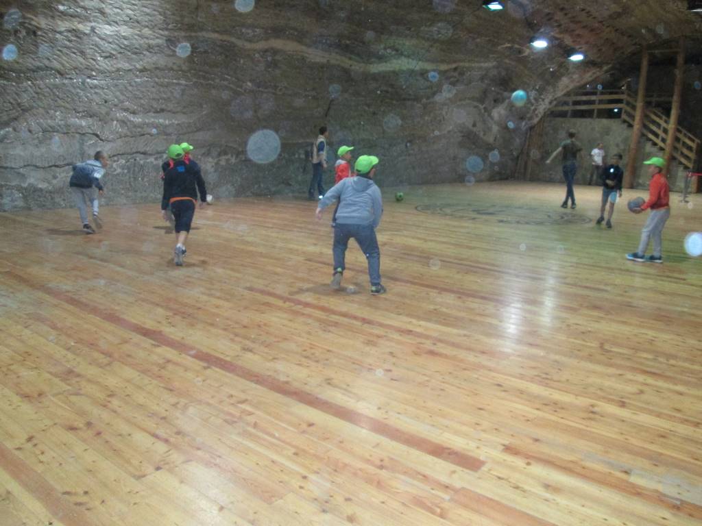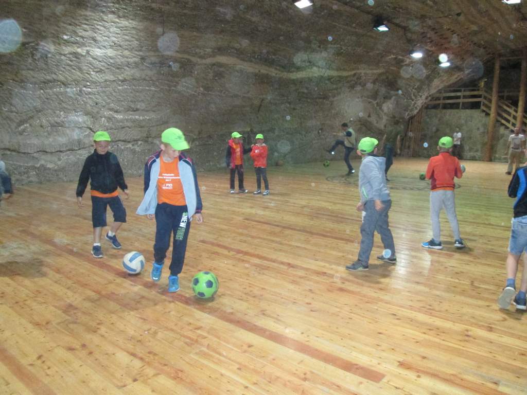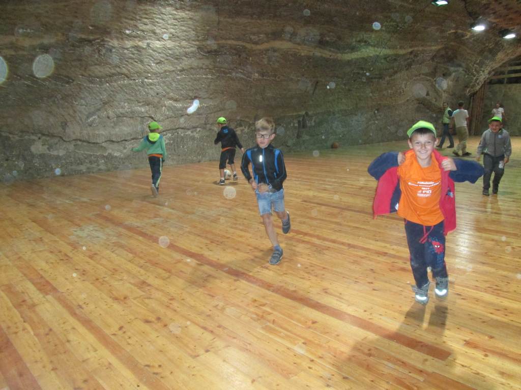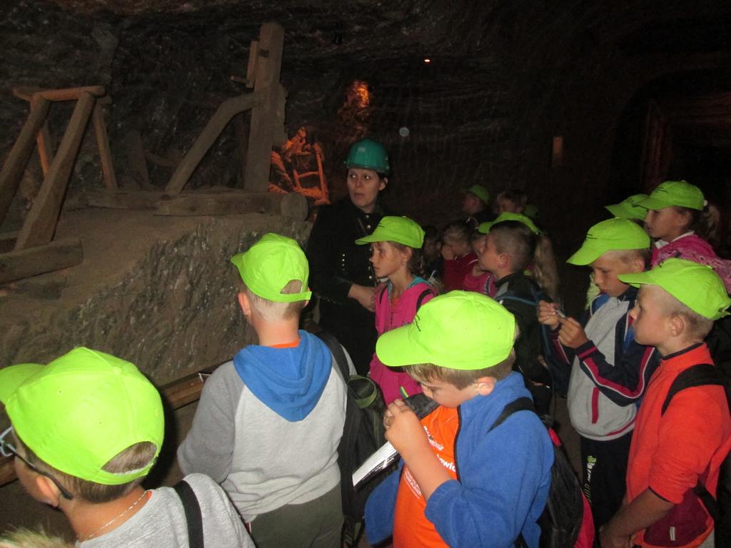 Prosto z osady udaliśmy się do Kopalni Soli Bochnia. Tam uczestnicy półkolonii zwiedzili trasę historyczną, w której szczególną uwagę przyciągała Ekspozycja Multimedialna pozwalająca poznać historię wydobycia soli i trud pracy górnika, łapali łzy Skarbnika wróżące (w zależności od tego, gdzie spadną) bogactwo, mądrość lub garba, odbyli przejażdżkę podziemną kolejką oraz rozegrali mecze piłki nożnej na podziemnym boisku.