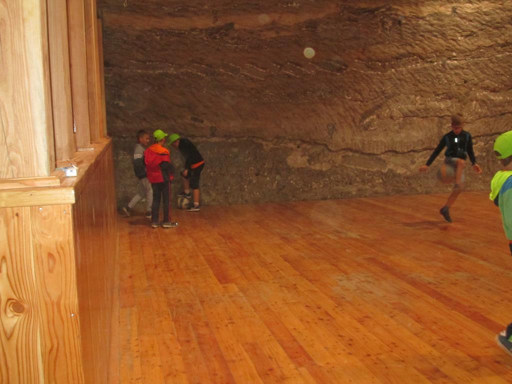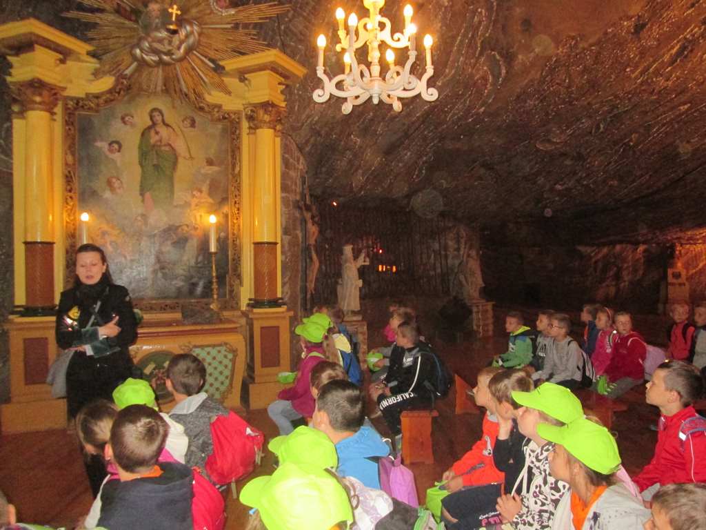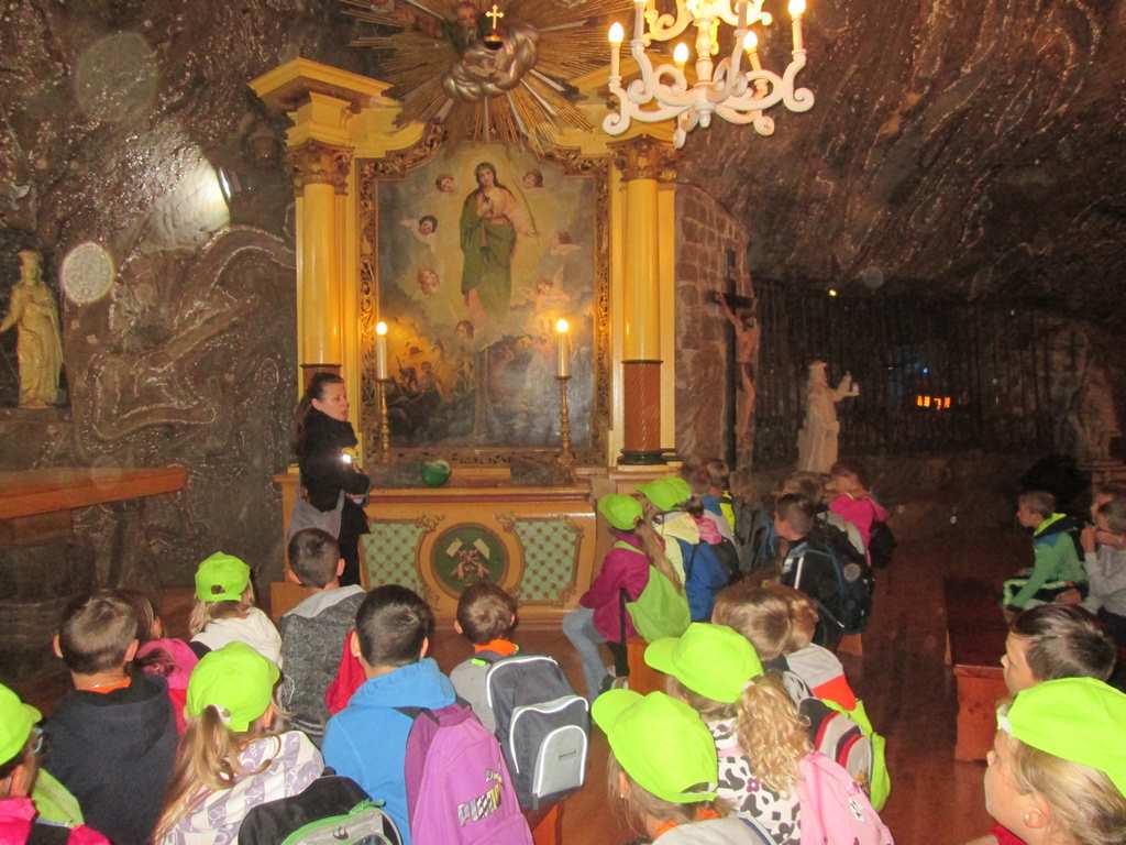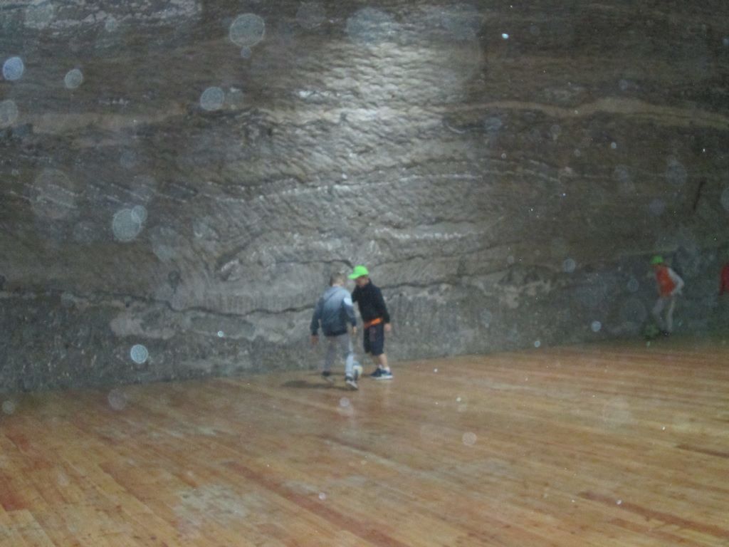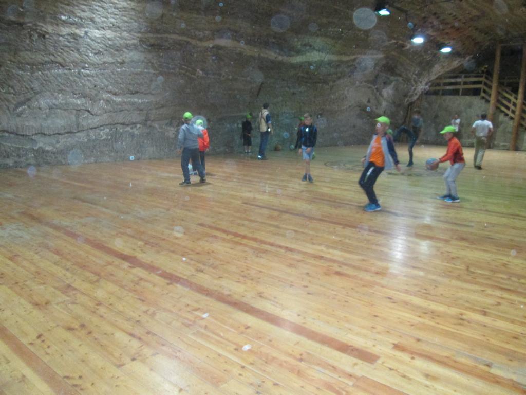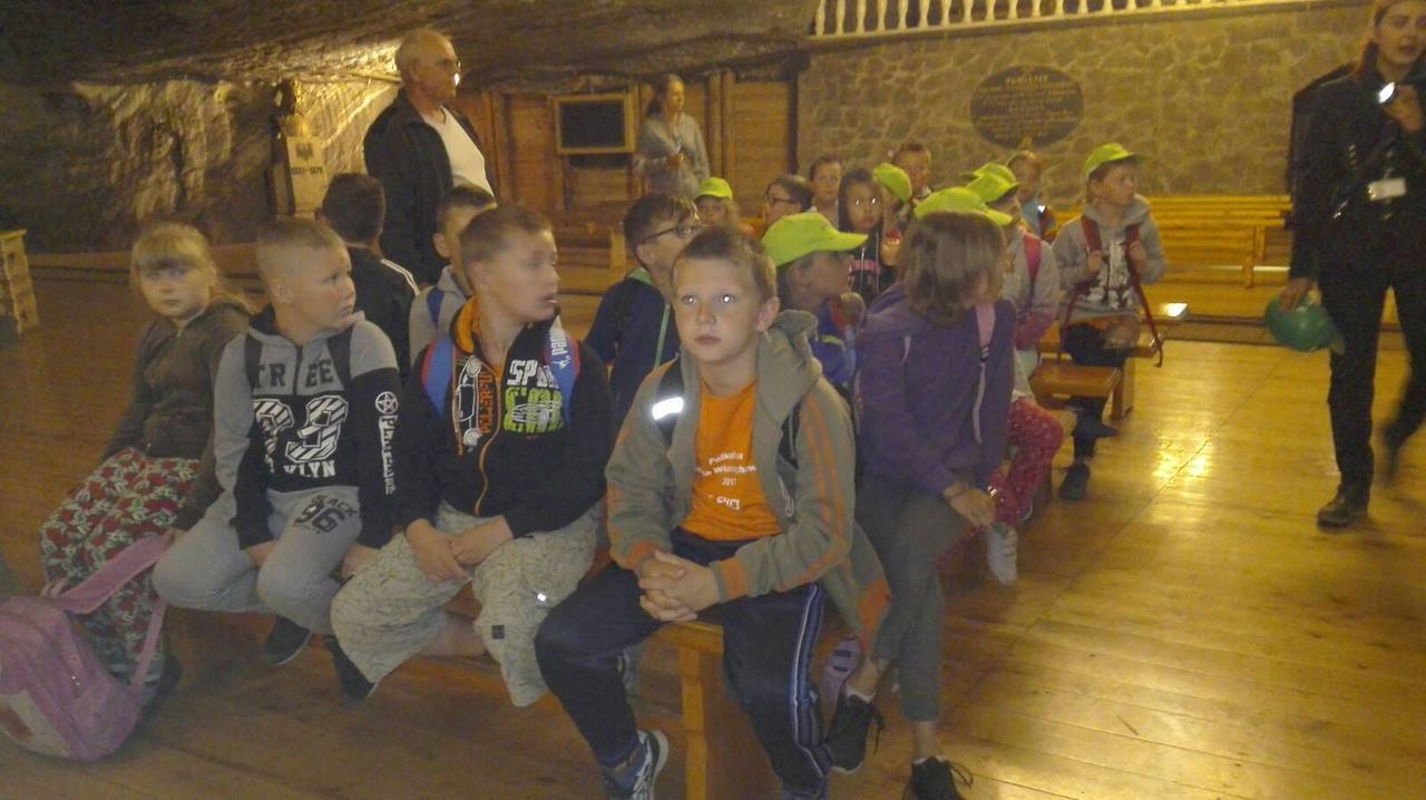 Prosto z osady udaliśmy się do Kopalni Soli Bochnia. Tam uczestnicy półkolonii zwiedzili trasę historyczną, w której szczególną uwagę przyciągała Ekspozycja Multimedialna pozwalająca poznać historię wydobycia soli i trud pracy górnika, łapali łzy Skarbnika wróżące (w zależności od tego, gdzie spadną) bogactwo, mądrość lub garba, odbyli przejażdżkę podziemną kolejką oraz rozegrali mecze piłki nożnej na podziemnym boisku.
