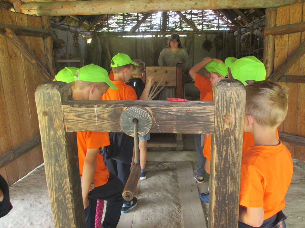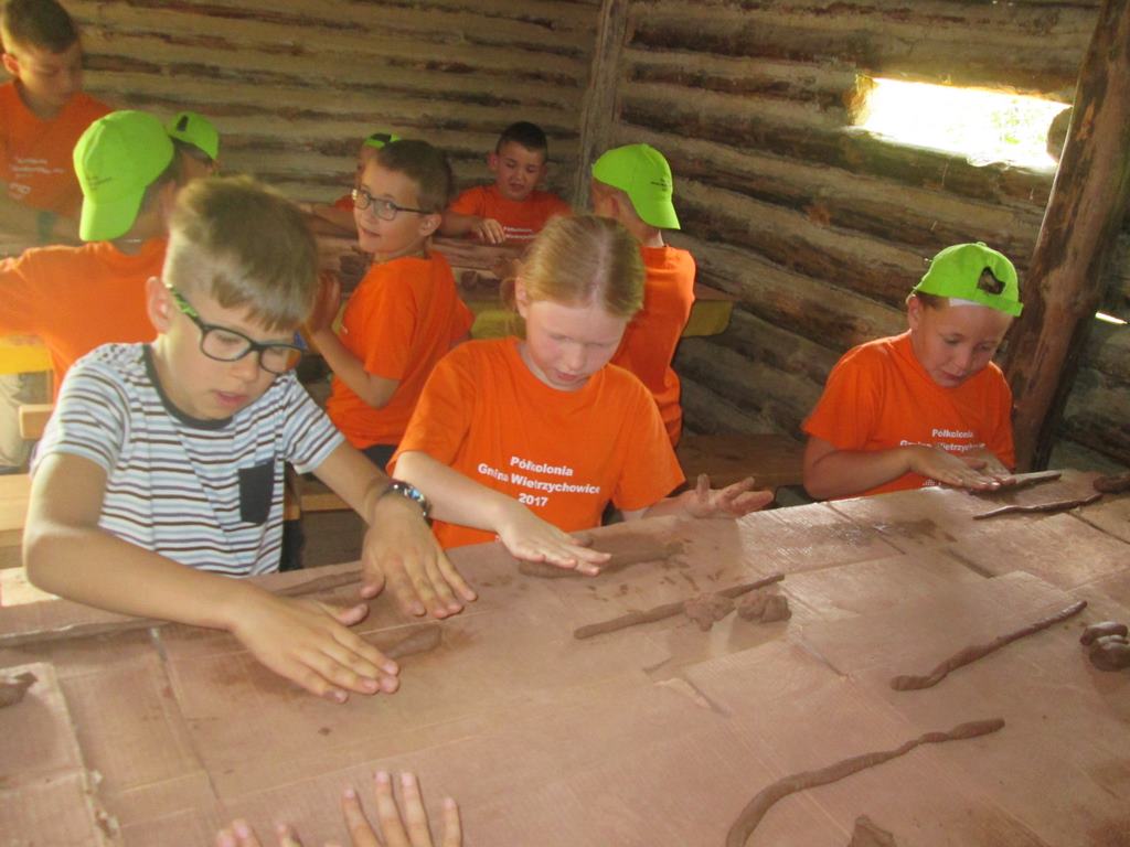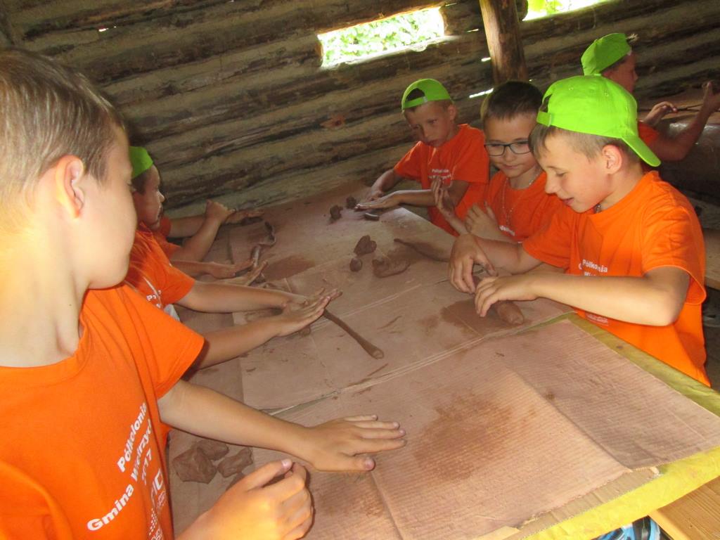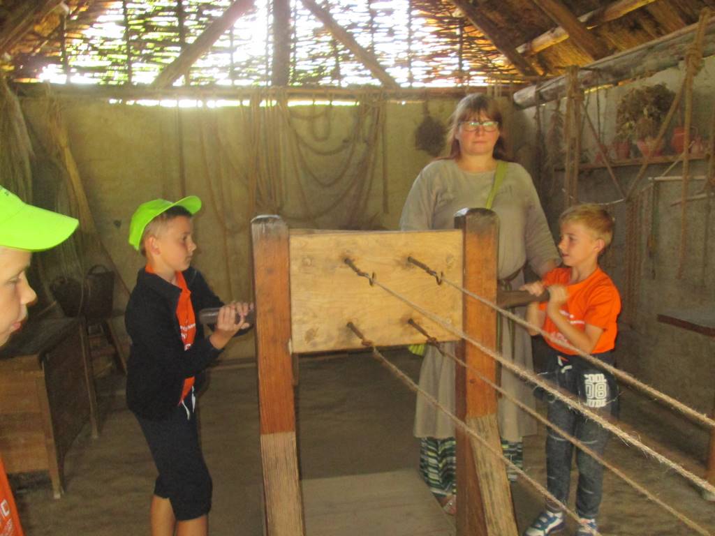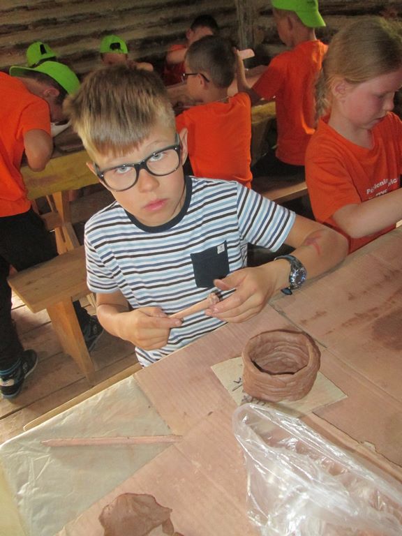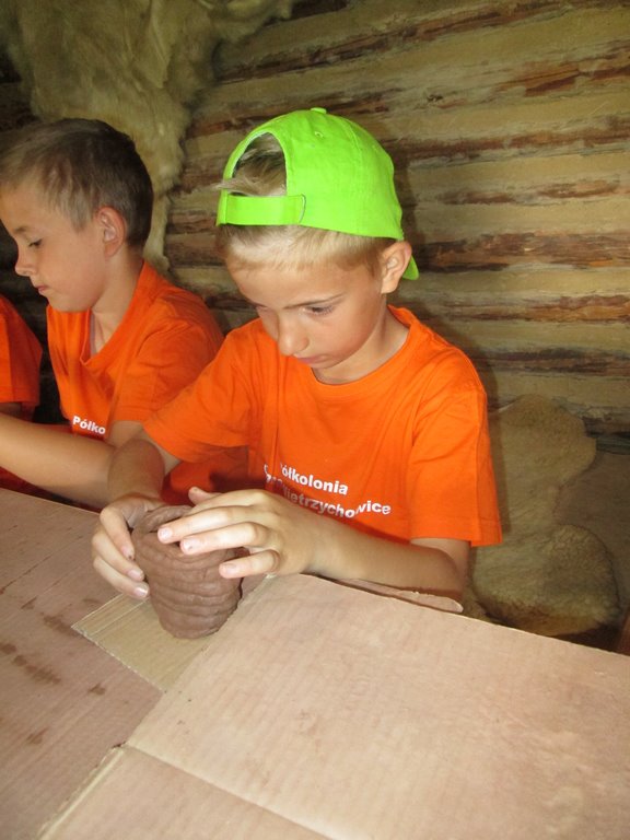 Przedostatnim punktem na naszej kolonijnej mapie wycieczek była Bochnia. Do tego najstarszego miasta w Małopolsce dotarliśmy szóstego dnia półkolonii. Pierwszym punktem programu była wizyta w Parku Archeologicznym „Osada VI Oraczy” będącym rekonstrukcją średniowiecznej wioski charakterystycznej dla małopolskiego osadnictwa z połowy XIII wieku. Podczas pobytu w osadzie uczestnicy półkolonii nie tylko zobaczyli, jak wyglądała średniowieczna zabudowa , ale również dowiedzieli się, jak się w niej żyło i pracowało – odwiedzili warzelnika, tkaczkę, garncarkę, powroźnika i zielarkę, samodzielnie wykonali gliniane naczynia i upletli prawdziwy sznur.