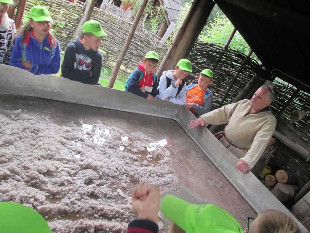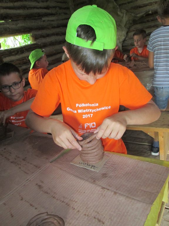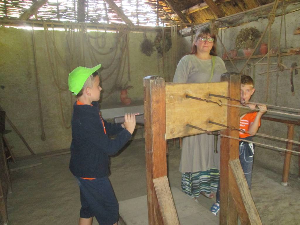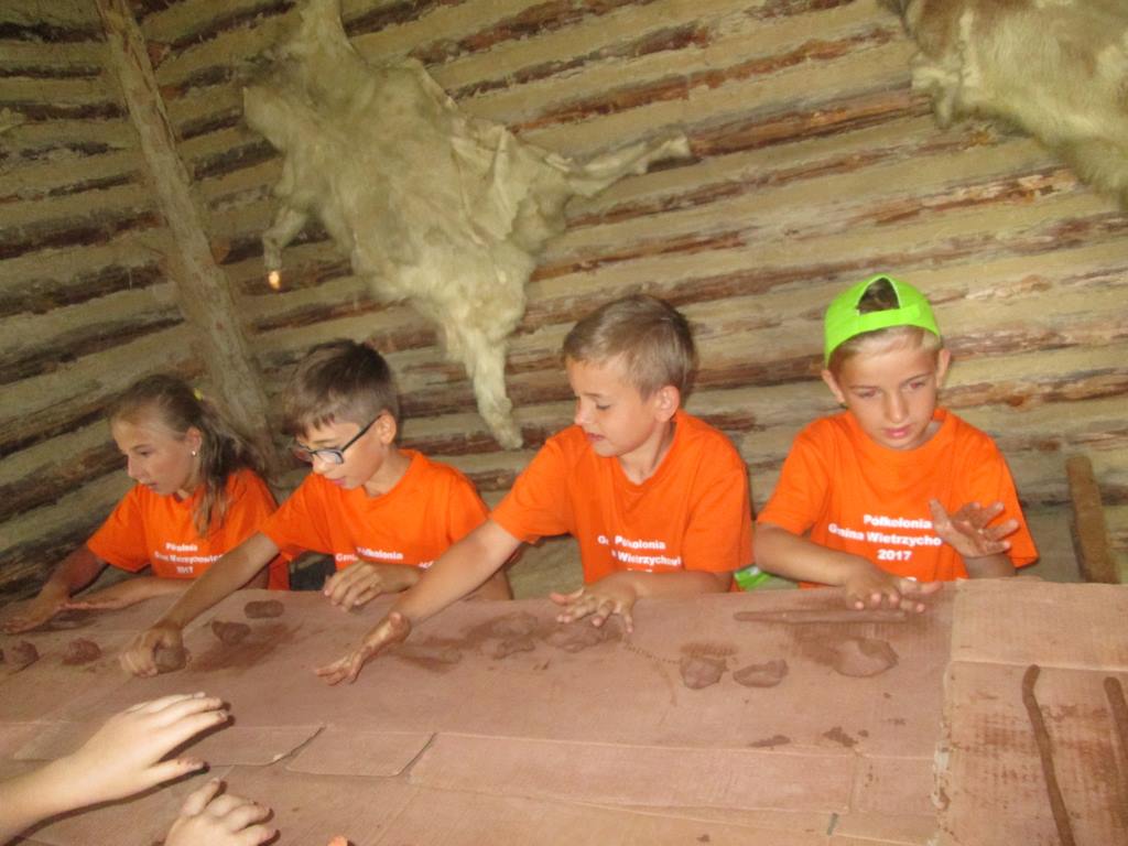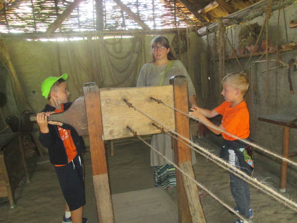 Przedostatnim punktem na naszej kolonijnej mapie wycieczek była Bochnia. Do tego najstarszego miasta w Małopolsce dotarliśmy szóstego dnia półkolonii. Pierwszym punktem programu była wizyta w Parku Archeologicznym „Osada VI Oraczy” będącym rekonstrukcją średniowiecznej wioski charakterystycznej dla małopolskiego osadnictwa z połowy XIII wieku. Podczas pobytu w osadzie uczestnicy półkolonii nie tylko zobaczyli, jak wyglądała średniowieczna zabudowa , ale również dowiedzieli się, jak się w niej żyło i pracowało – odwiedzili warzelnika, tkaczkę, garncarkę, powroźnika i zielarkę, samodzielnie wykonali gliniane naczynia i upletli prawdziwy sznur.