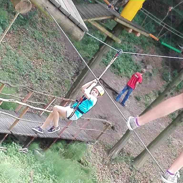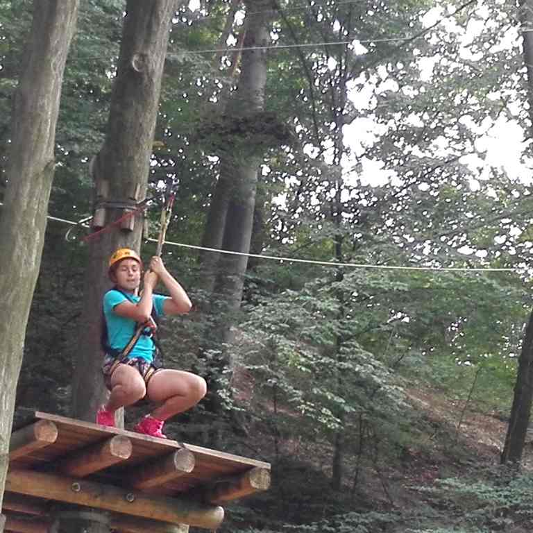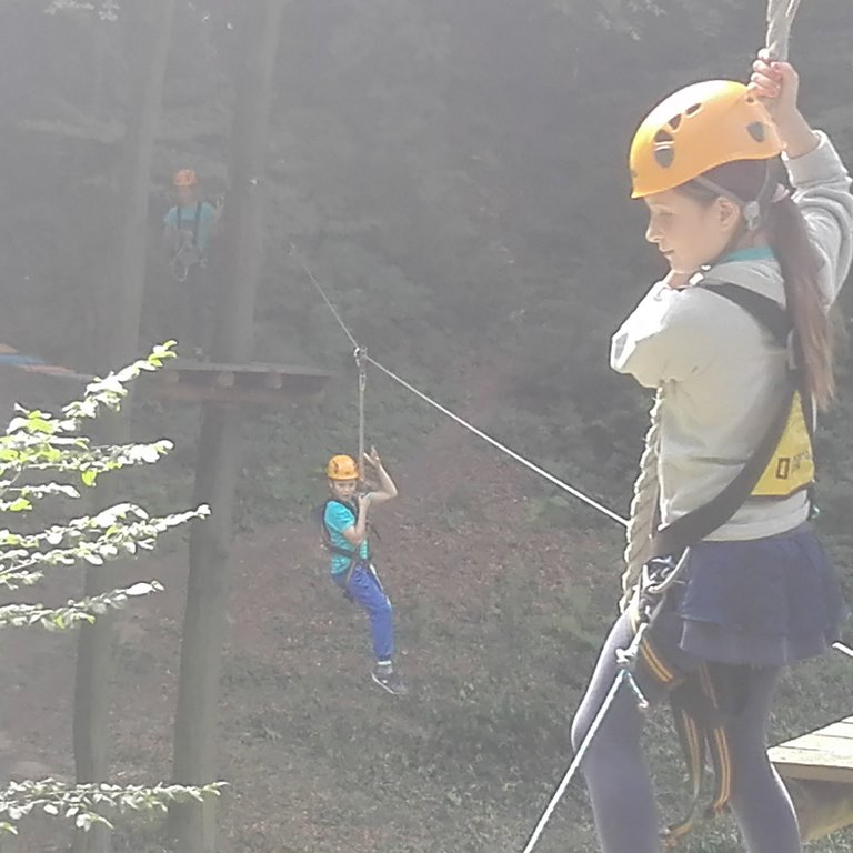 4 lipca wyruszyliśmy na wycieczkę pełną adrenaliny. Czekał na nas Park Linowy w Zawadzie. Na miejscu przeszliśmy specjalne szkolenie i ruszyliśmy na drzewa. Każdy spróbował swoich sił i mógł ocenić własne możliwości znalazłszy się kilka metrów nad ziemią. Po wysiłku fizycznym i niezapomnianych wrażeniach zjedliśmy pyszna pizzę U Włocha i radośnie wróciliśmy do domu.