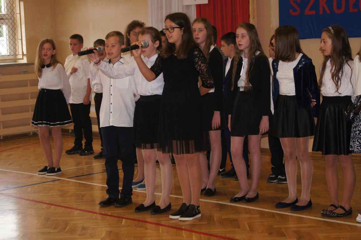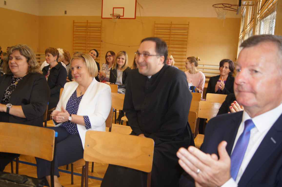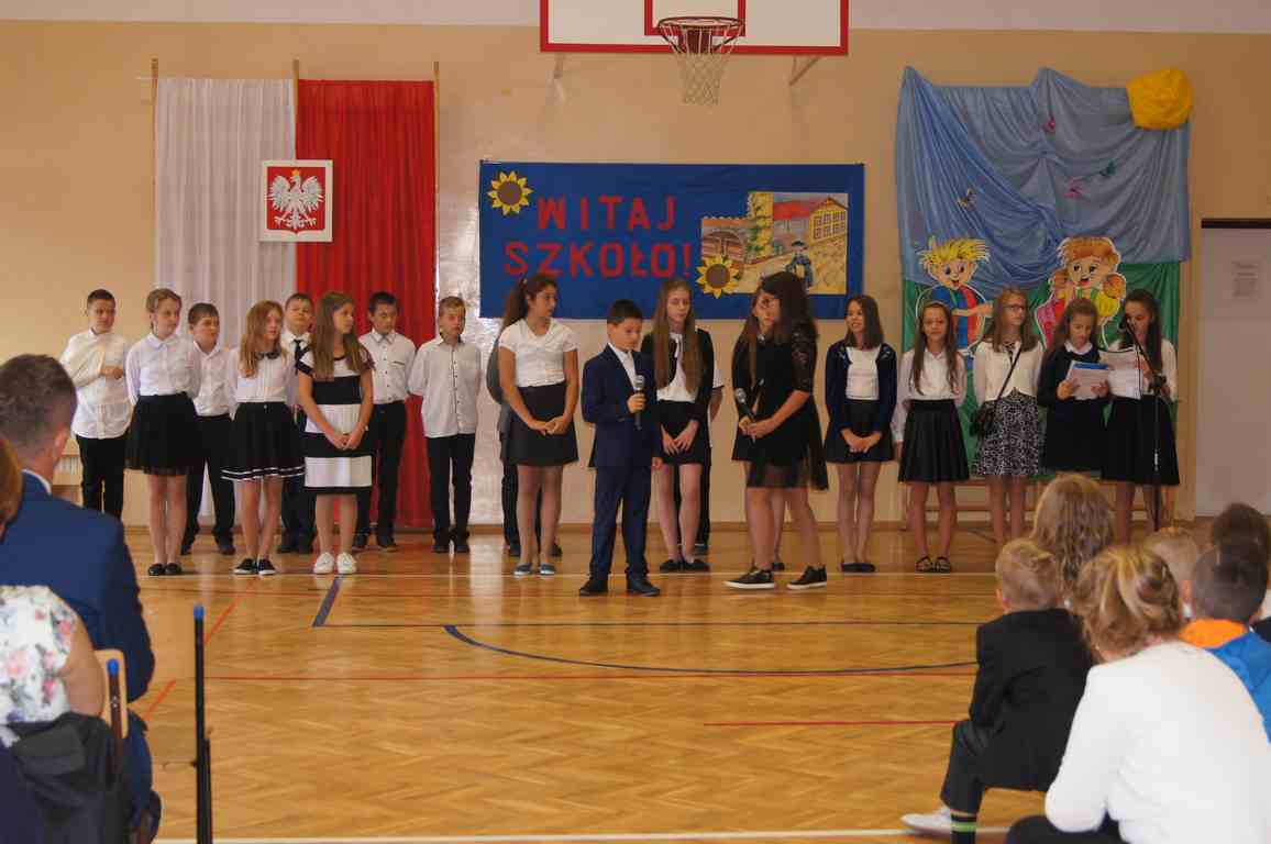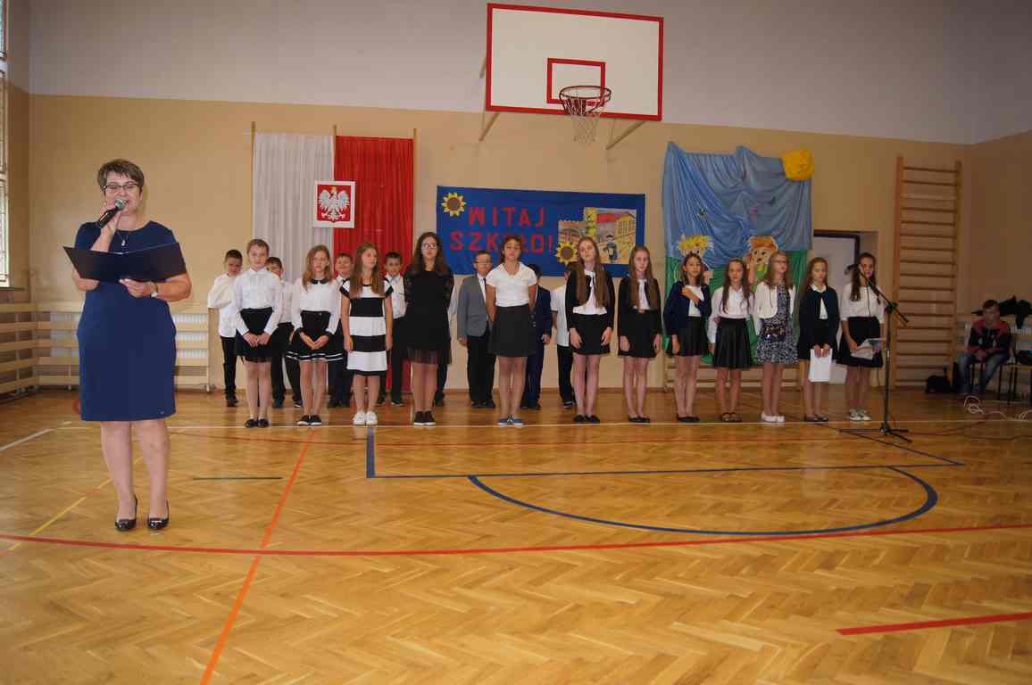 4 września odbyła się w naszej szkole inauguracja roku szkolnego 2017/2018 – roku zmian związanych nie tylko z reformą edukacji, ale również z poważnymi przekształceniami w naszej placówce. Tradycyjnie nowy rok nauki i pracy rozpoczęliśmy mszą świętą w kościele parafialnym w Wietrzychowicach, skąd następnie przeszliśmy na salę gimnastyczną, gdzie wszystkich przybyłych powitała pani dyrektor Zespołu Szkolno – Przedszkolnego w Wietrzychowicach, Jadwiga Łucarz. W swoim przemówieniu pani dyrektor powitała powracających z wakacyjnego wypoczynku uczniów i nauczycieli, szczególnie ciepło zwracając się do tych, którzy próg naszej szkoły przekroczyli po raz pierwszy – uczniów klasy I, piąto – i siódmoklasistów z Jadownik Mokrych oraz nowego katechetę, księdza Romana Łagosza.