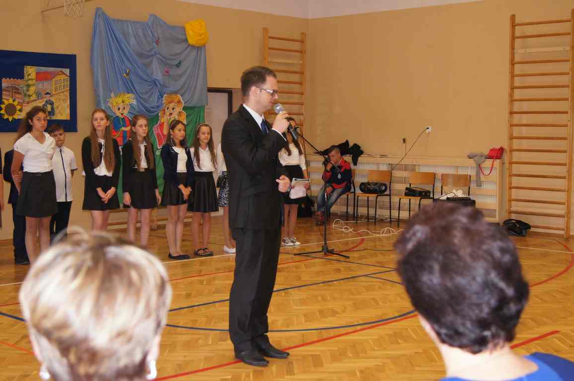 Akademię zakończył wicedyrektor szkoły, pan Michał Wolak, zapraszając wszystkich do poszczególnych klas na spotkanie z wychowawcami.