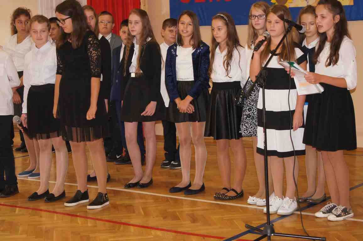 Po części oficjalnej głos zabrali uczniowie klasy szóstej, którzy w krótkiej części artystycznej pożegnali wakacje i jednocześnie udzielili kilku cennych rad, co zrobić, by w miarę względnym spokoju doczekać następnych.