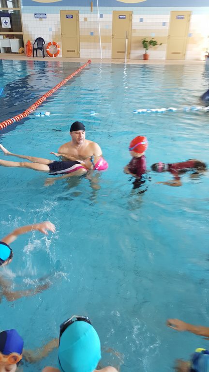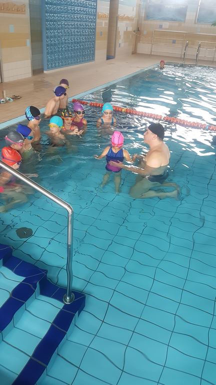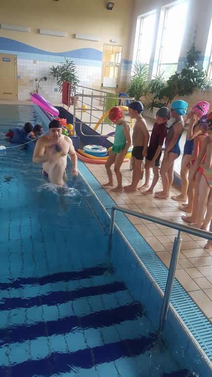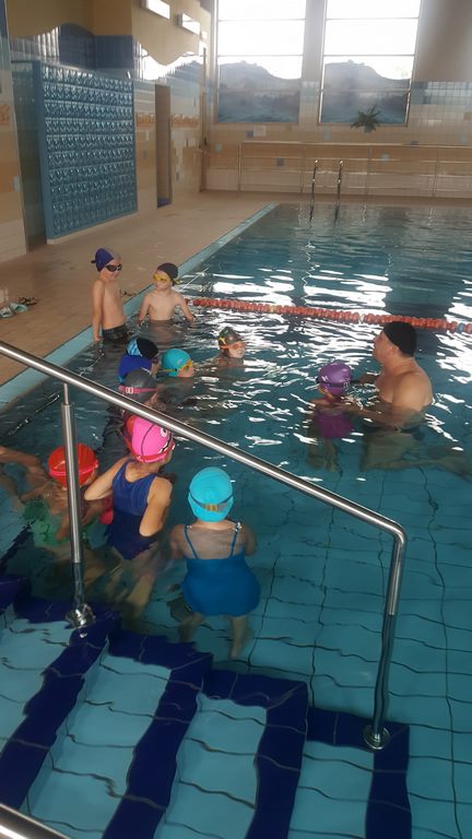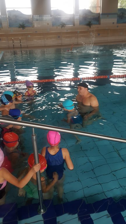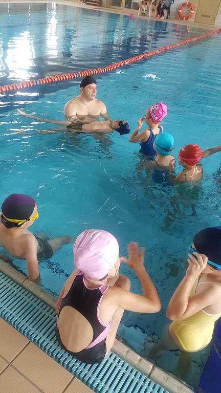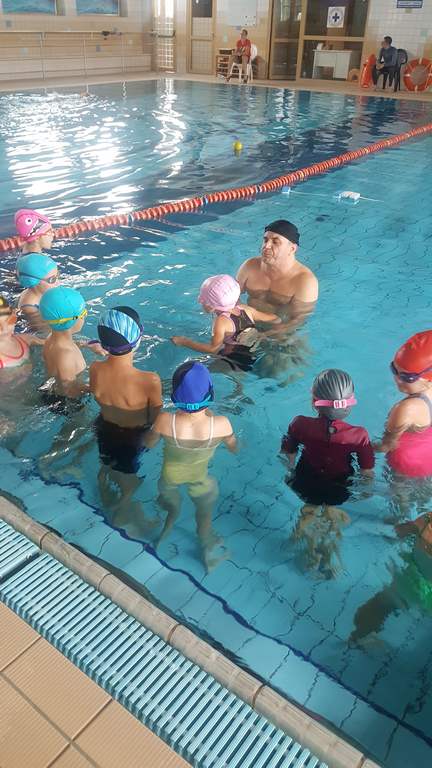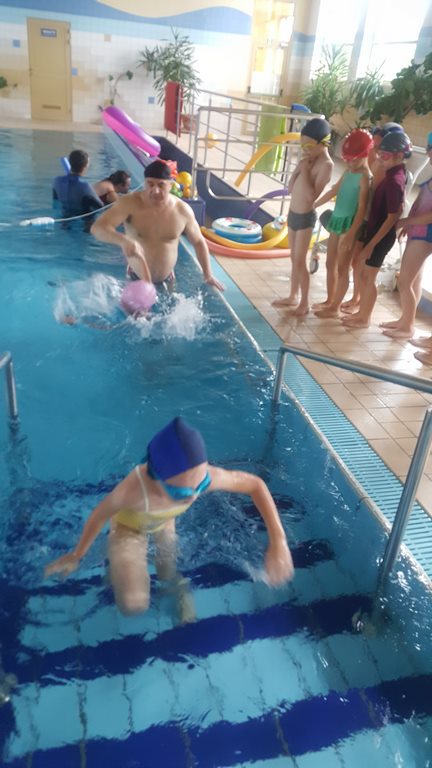 Pierwsze zajęcia miały na celu rozeznanie się w umiejętnościach uczniów – zwłaszcza starszych i oswojenie dzieci z wodą. Zajęcia jak zwykle cieszą się dużym zainteresowaniem, a kontakt z wodą oprócz korzyści zdrowotnych przynosi także dużo radości.