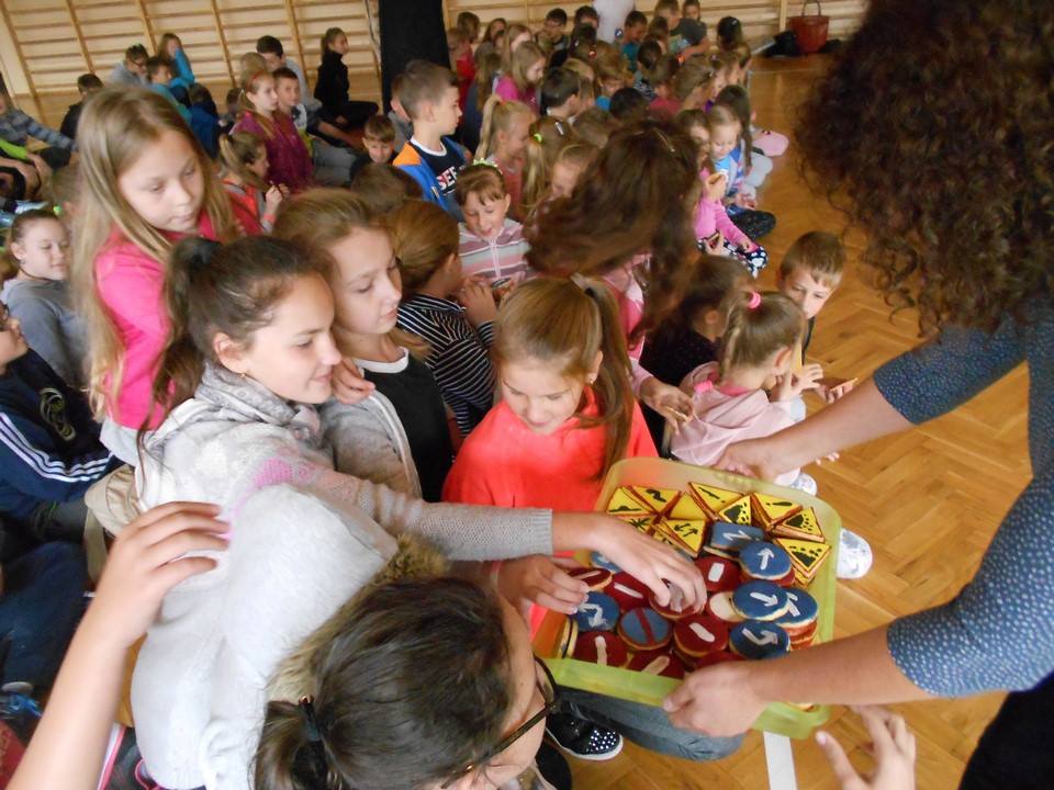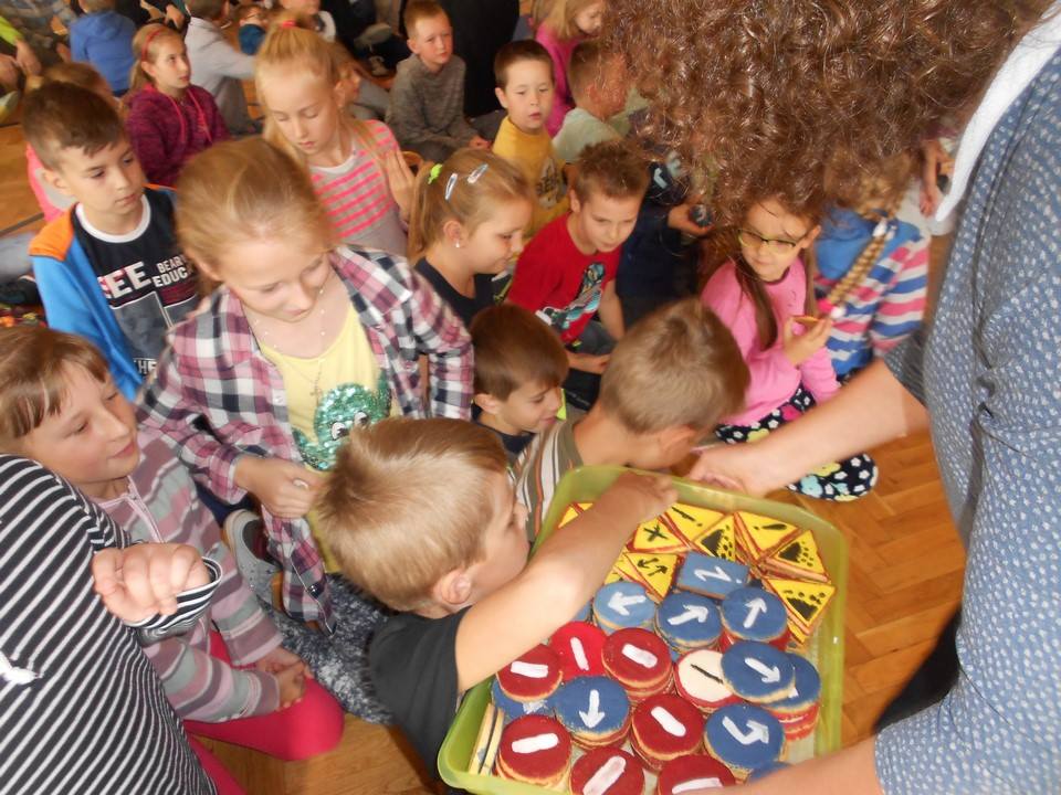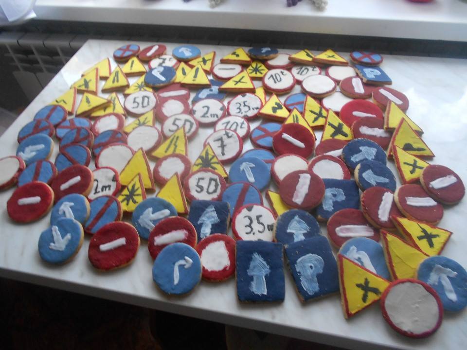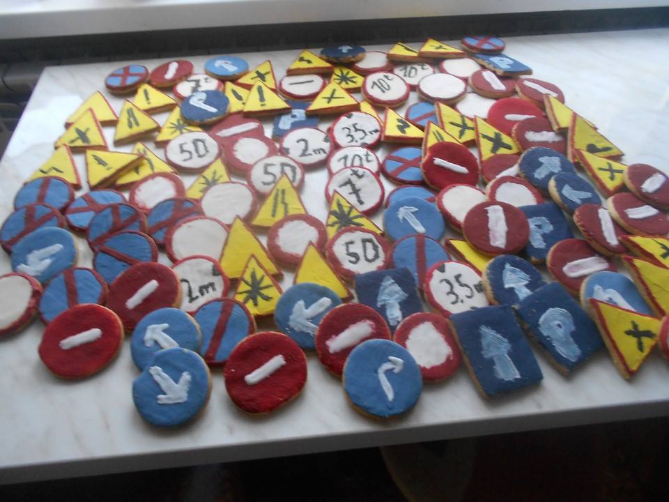 Grupowa degustacja nastąpiła w poniedziałek w naszej szkole, gdzie wszystkie dzieci poczęstowały się ciastkiem i z wielkim apetytem je zjadły, zgadując, jaki znak drogowy jego ciastko przedstawiało. Efekt końcowy wypieków oceńcie sami.