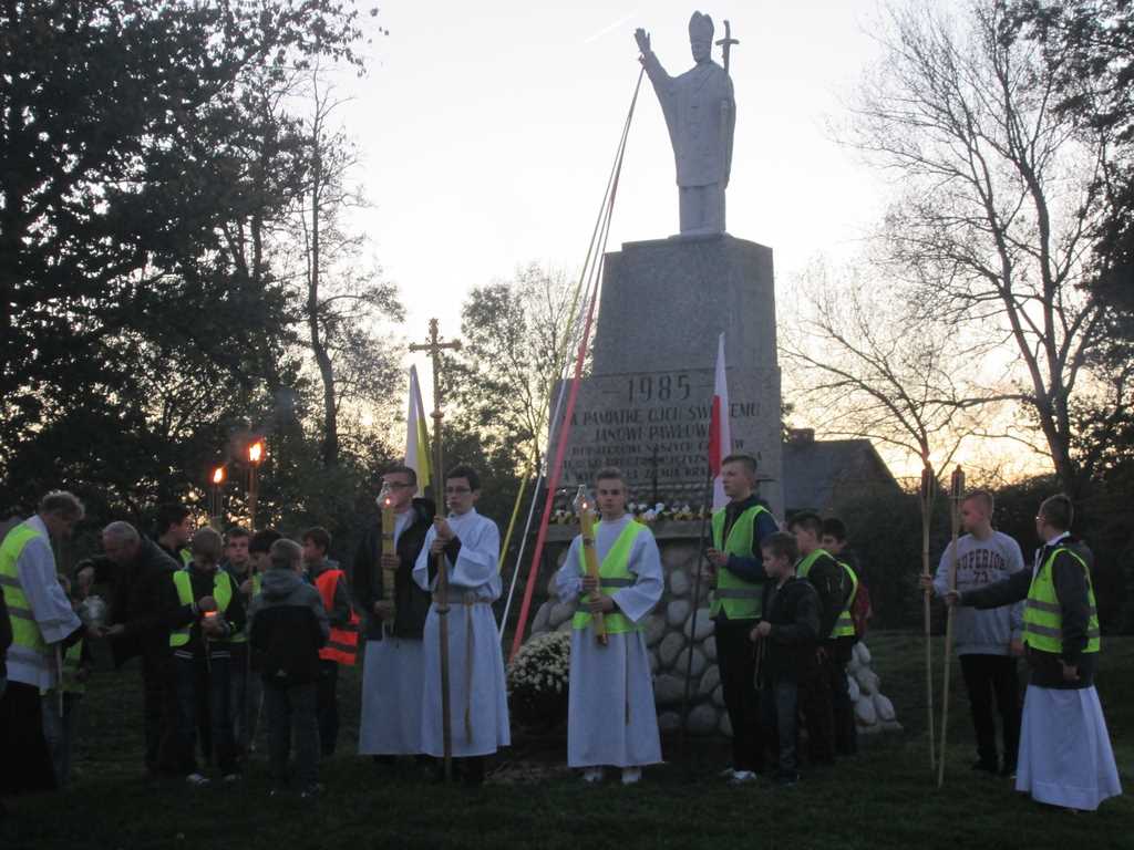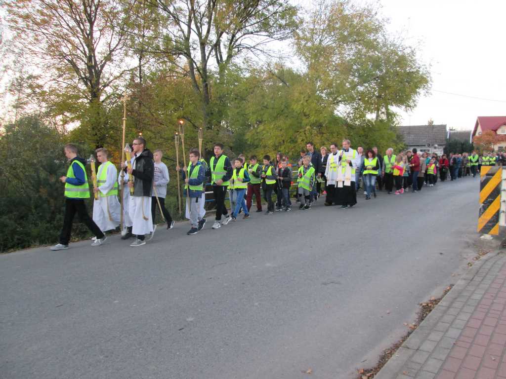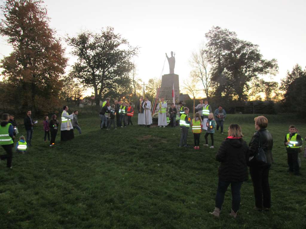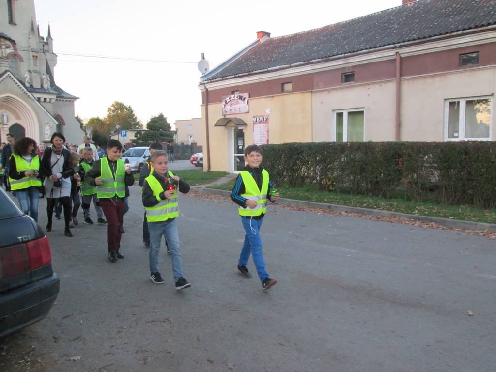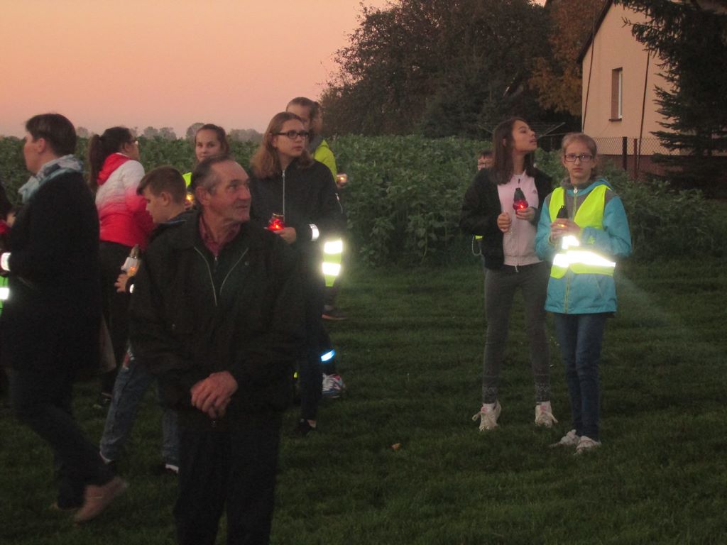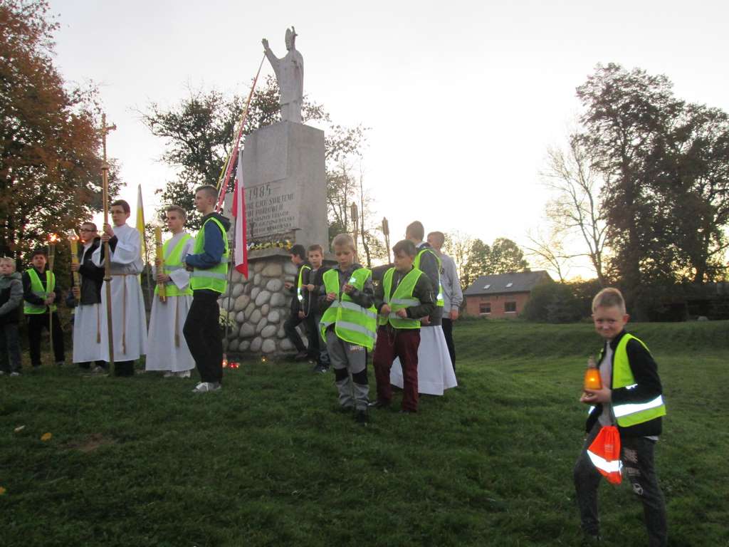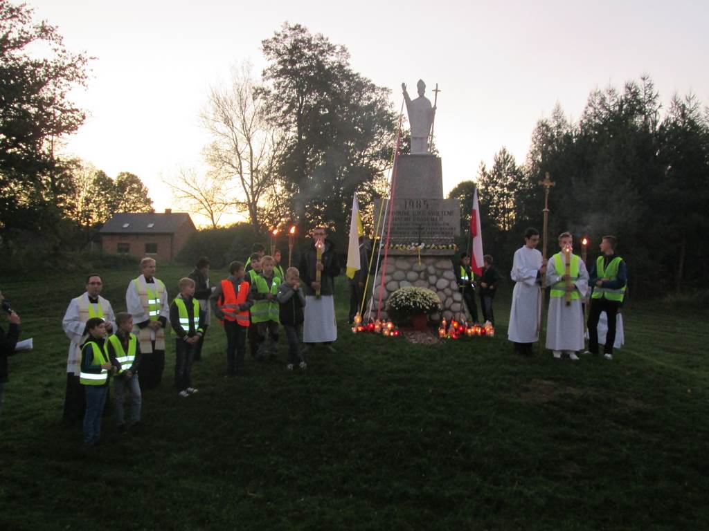 16 października uczniowie i nauczyciele naszej szkoły spotkali się kościele parafialnym w Wietrzychowicach na popołudniowej mszy świętej, po której wraz ze sporą grupą mieszkańców gminy, pod przewodnictwem ks. Kazimierza Borczewskiego oraz ks. Romana Łagosza udali się pod pomnik Świętego Jana Pawła II w Miechowicach Wielkich, by uczcić rocznicę wyboru Karola Wojtyły na Papieża, a w modlitwie różańcowej podziękować za Jego Pontyfikat i prosić o potrzebne łaski. Przygotowując się do udziału w procesji wszyscy wzięli ze sobą kamizelki oraz różnego rodzaju elementy odblaskowe. Dało się zauważyć, że coraz więcej osób zwraca uwagę na prawidłowe oznakowanie się na drodze. Mamy nadzieję, że w przyszłym roku będzie jeszcze bardziej odblaskowo ![]()