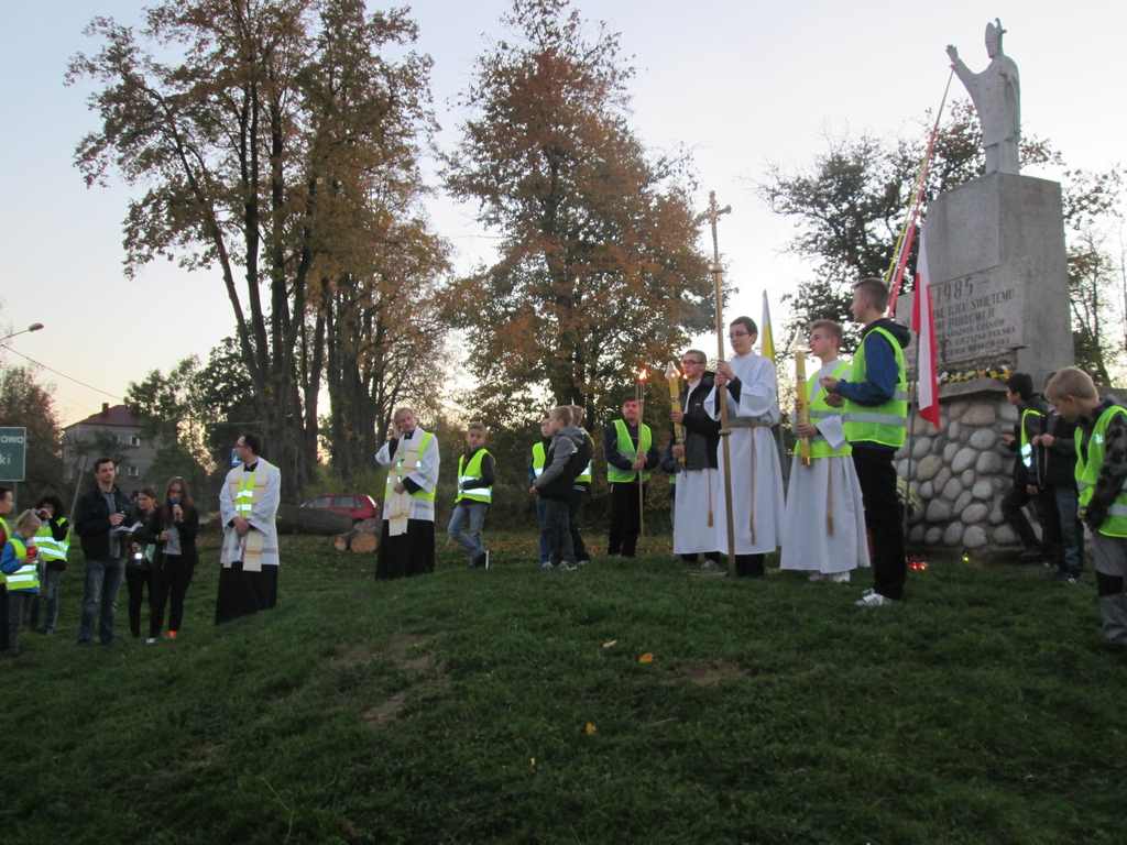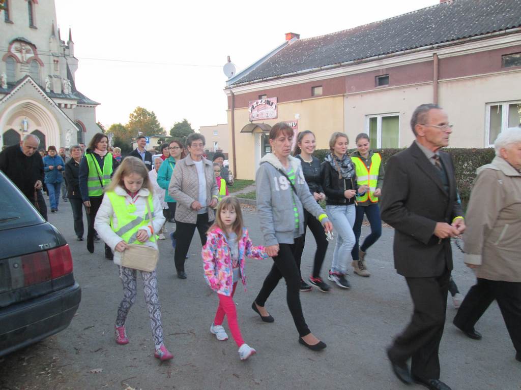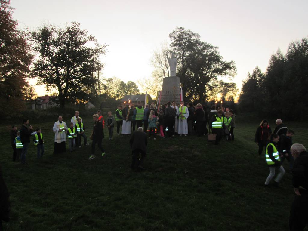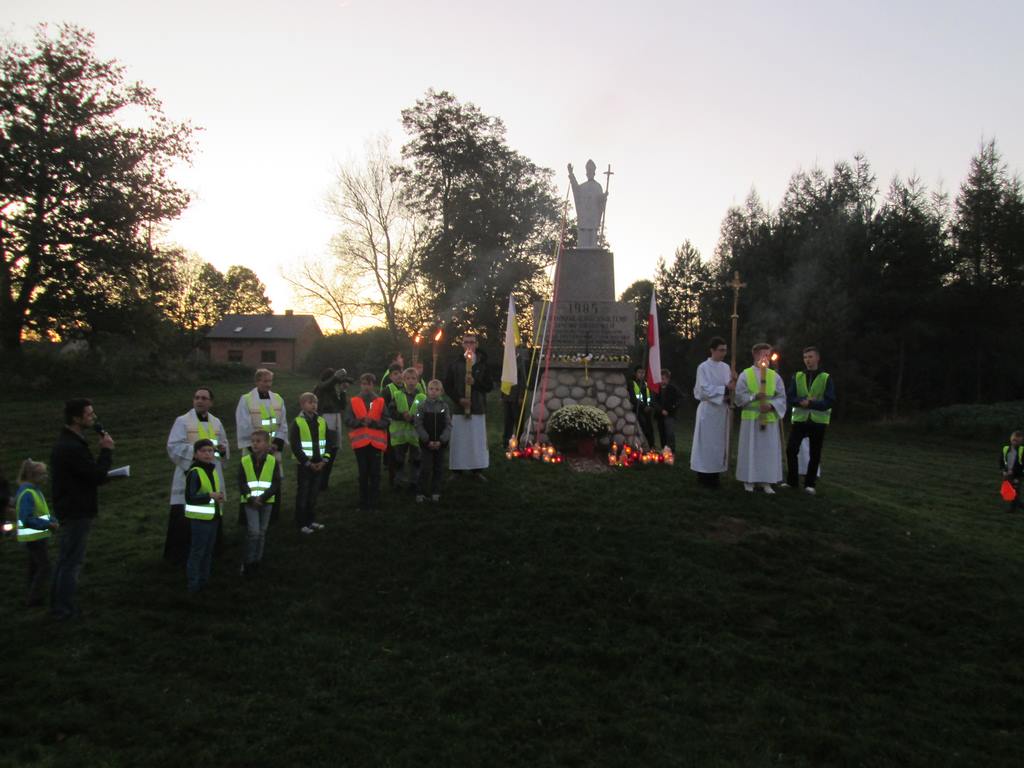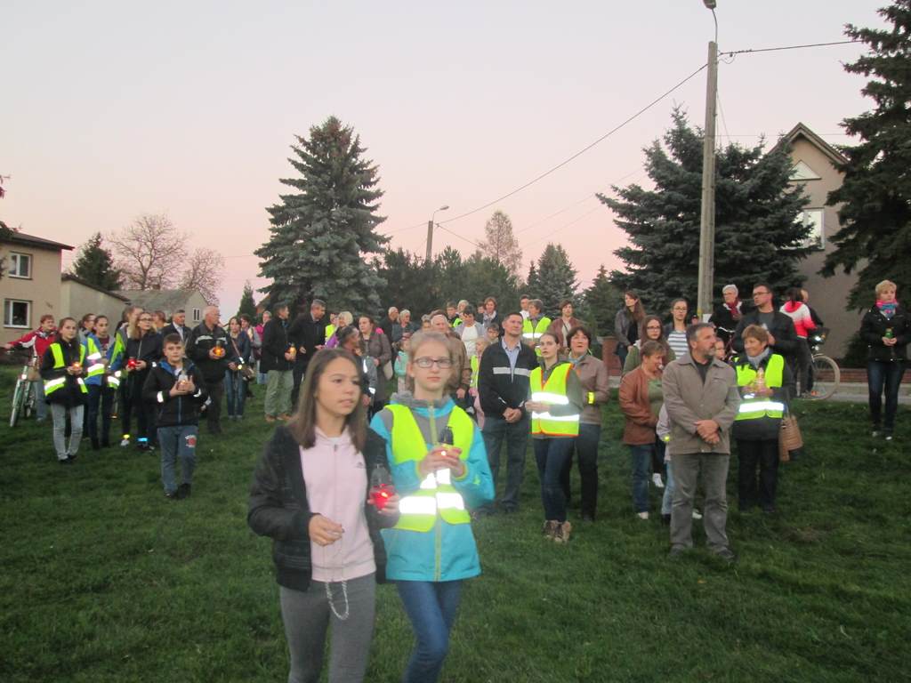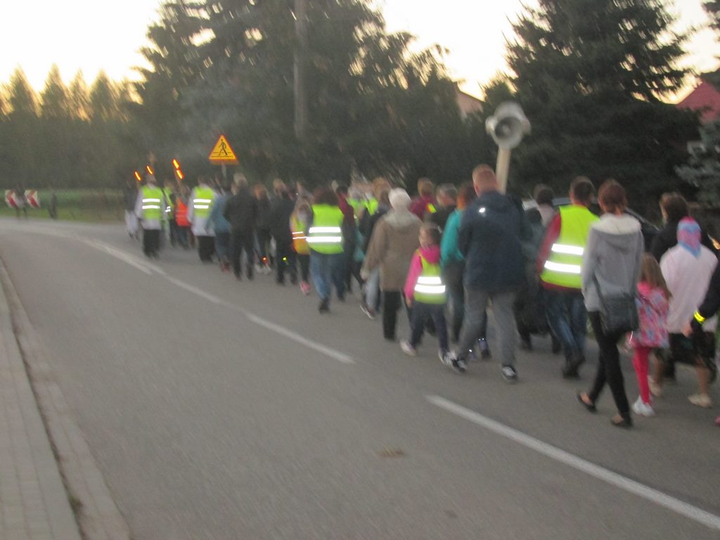 16 października uczniowie i nauczyciele naszej szkoły spotkali się kościele parafialnym w Wietrzychowicach na popołudniowej mszy świętej, po której wraz ze sporą grupą mieszkańców gminy, pod przewodnictwem ks. Kazimierza Borczewskiego oraz ks. Romana Łagosza udali się pod pomnik Świętego Jana Pawła II w Miechowicach Wielkich, by uczcić rocznicę wyboru Karola Wojtyły na Papieża, a w modlitwie różańcowej podziękować za Jego Pontyfikat i prosić o potrzebne łaski. Przygotowując się do udziału w procesji wszyscy wzięli ze sobą kamizelki oraz różnego rodzaju elementy odblaskowe. Dało się zauważyć, że coraz więcej osób zwraca uwagę na prawidłowe oznakowanie się na drodze. Mamy nadzieję, że w przyszłym roku będzie jeszcze bardziej odblaskowo ![]()