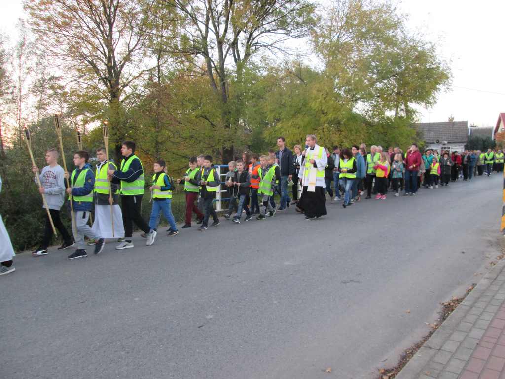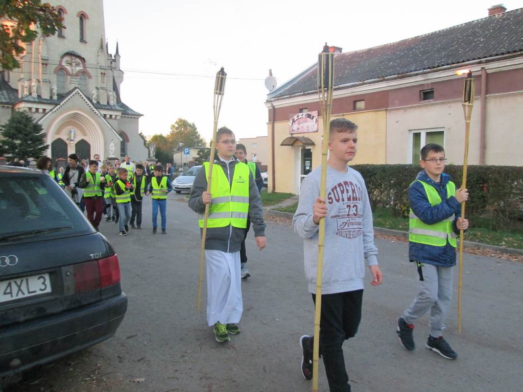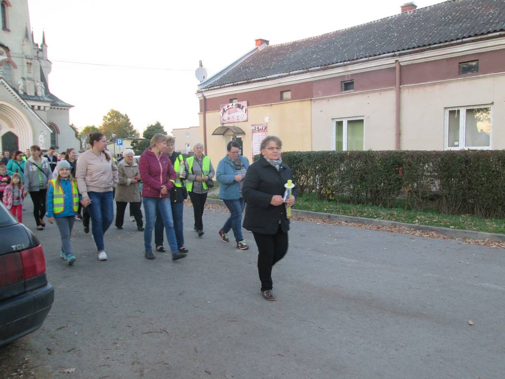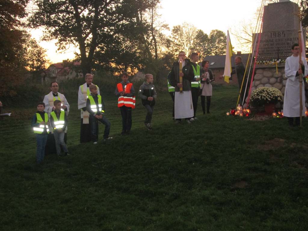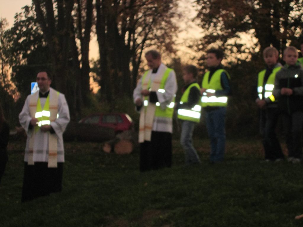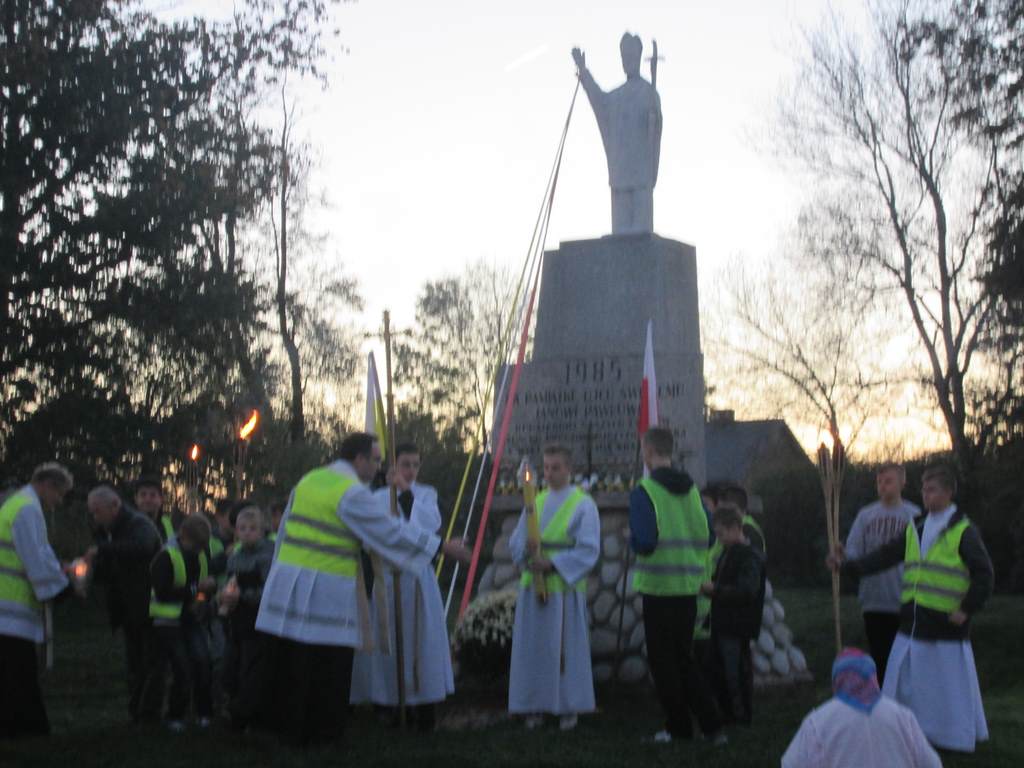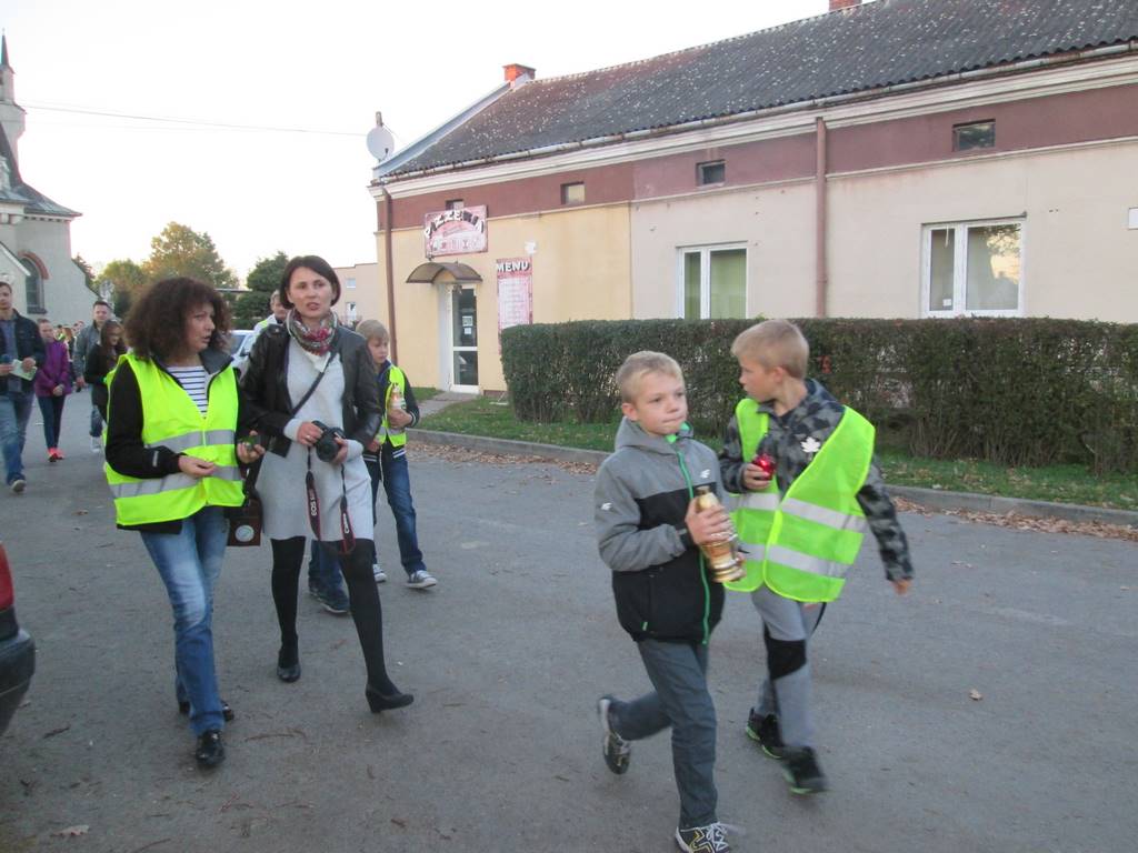 16 października uczniowie i nauczyciele naszej szkoły spotkali się kościele parafialnym w Wietrzychowicach na popołudniowej mszy świętej, po której wraz ze sporą grupą mieszkańców gminy, pod przewodnictwem ks. Kazimierza Borczewskiego oraz ks. Romana Łagosza udali się pod pomnik Świętego Jana Pawła II w Miechowicach Wielkich, by uczcić rocznicę wyboru Karola Wojtyły na Papieża, a w modlitwie różańcowej podziękować za Jego Pontyfikat i prosić o potrzebne łaski. Przygotowując się do udziału w procesji wszyscy wzięli ze sobą kamizelki oraz różnego rodzaju elementy odblaskowe. Dało się zauważyć, że coraz więcej osób zwraca uwagę na prawidłowe oznakowanie się na drodze. Mamy nadzieję, że w przyszłym roku będzie jeszcze bardziej odblaskowo ![]()
