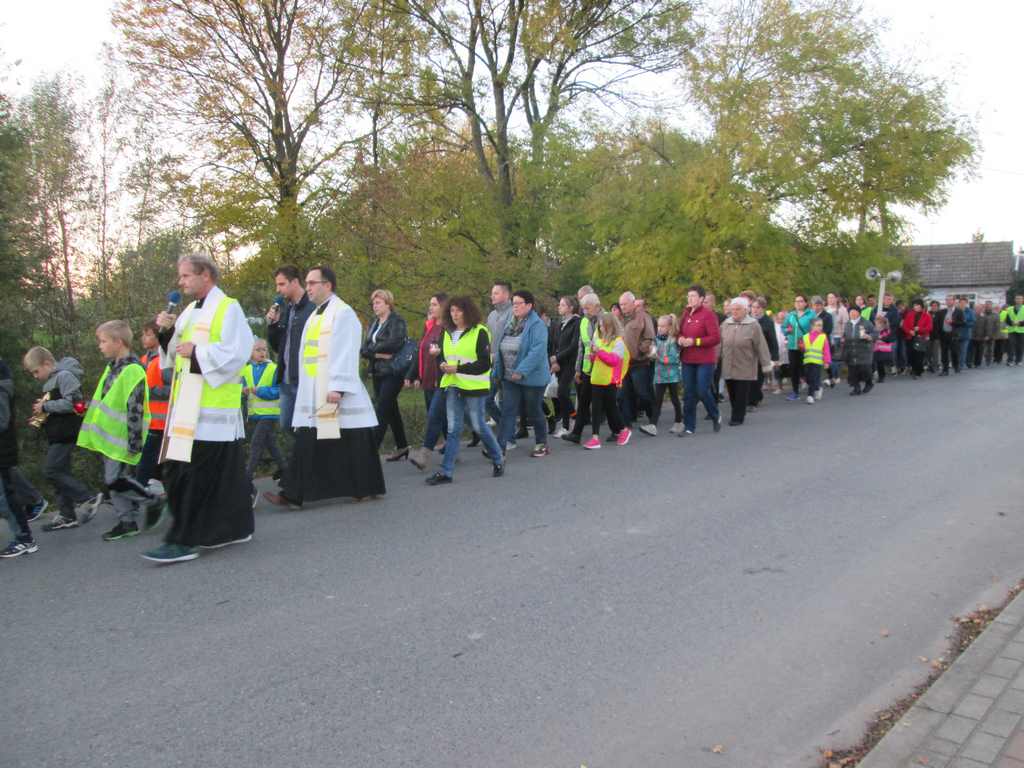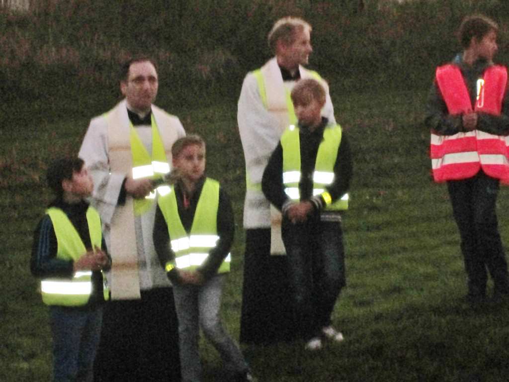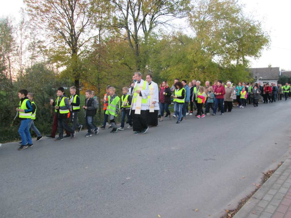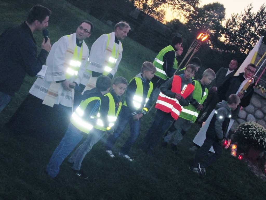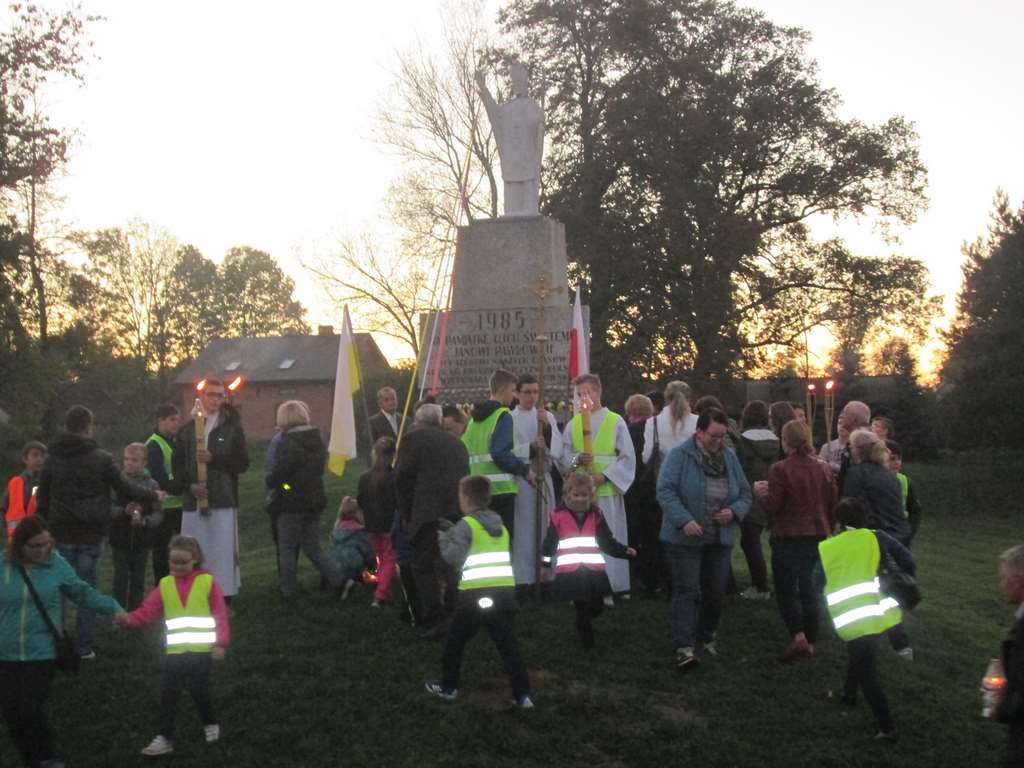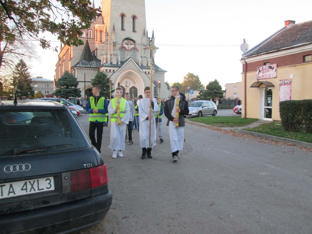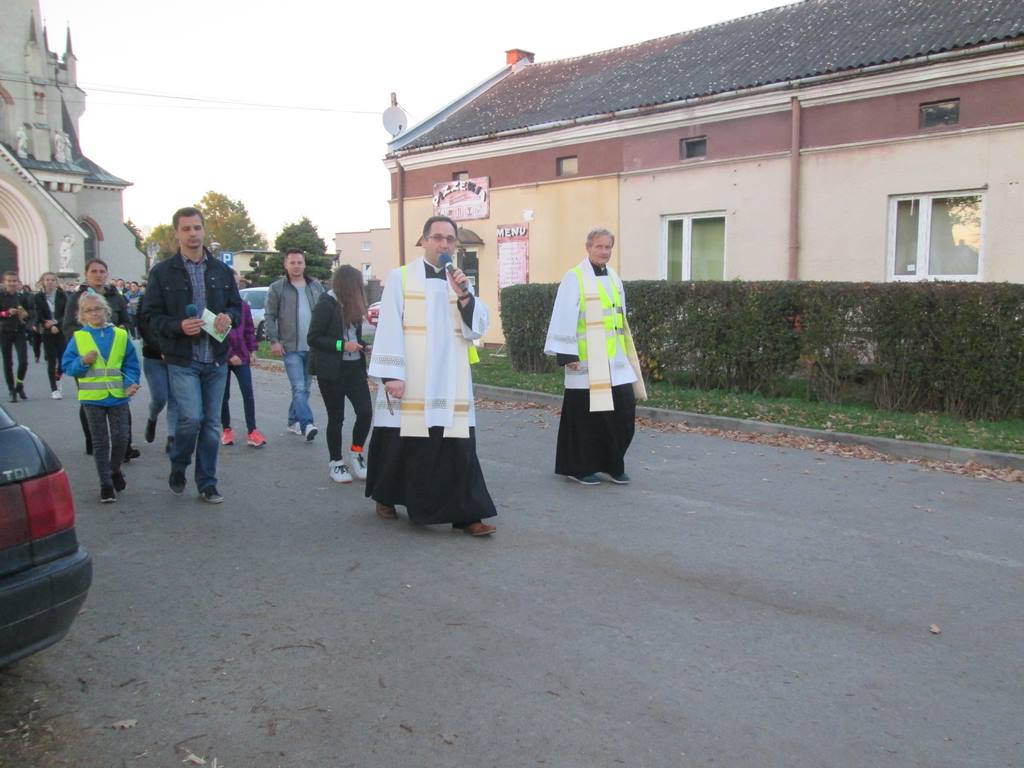 16 października uczniowie i nauczyciele naszej szkoły spotkali się kościele parafialnym w Wietrzychowicach na popołudniowej mszy świętej, po której wraz ze sporą grupą mieszkańców gminy, pod przewodnictwem ks. Kazimierza Borczewskiego oraz ks. Romana Łagosza udali się pod pomnik Świętego Jana Pawła II w Miechowicach Wielkich, by uczcić rocznicę wyboru Karola Wojtyły na Papieża, a w modlitwie różańcowej podziękować za Jego Pontyfikat i prosić o potrzebne łaski. Przygotowując się do udziału w procesji wszyscy wzięli ze sobą kamizelki oraz różnego rodzaju elementy odblaskowe. Dało się zauważyć, że coraz więcej osób zwraca uwagę na prawidłowe oznakowanie się na drodze. Mamy nadzieję, że w przyszłym roku będzie jeszcze bardziej odblaskowo ![]()