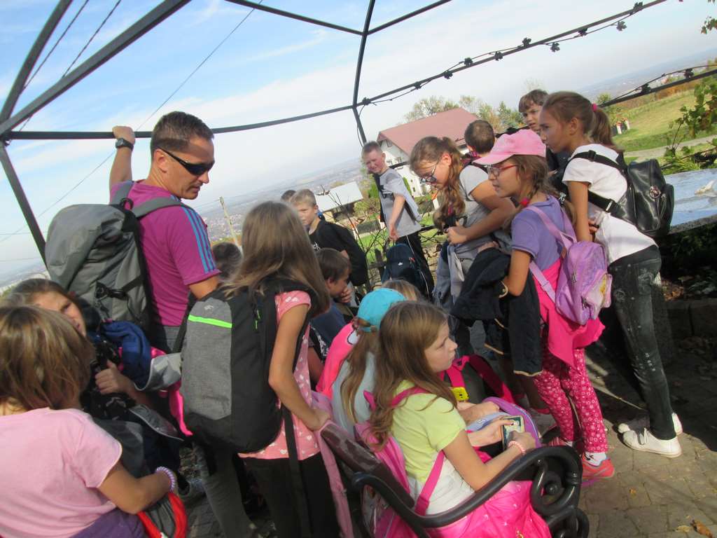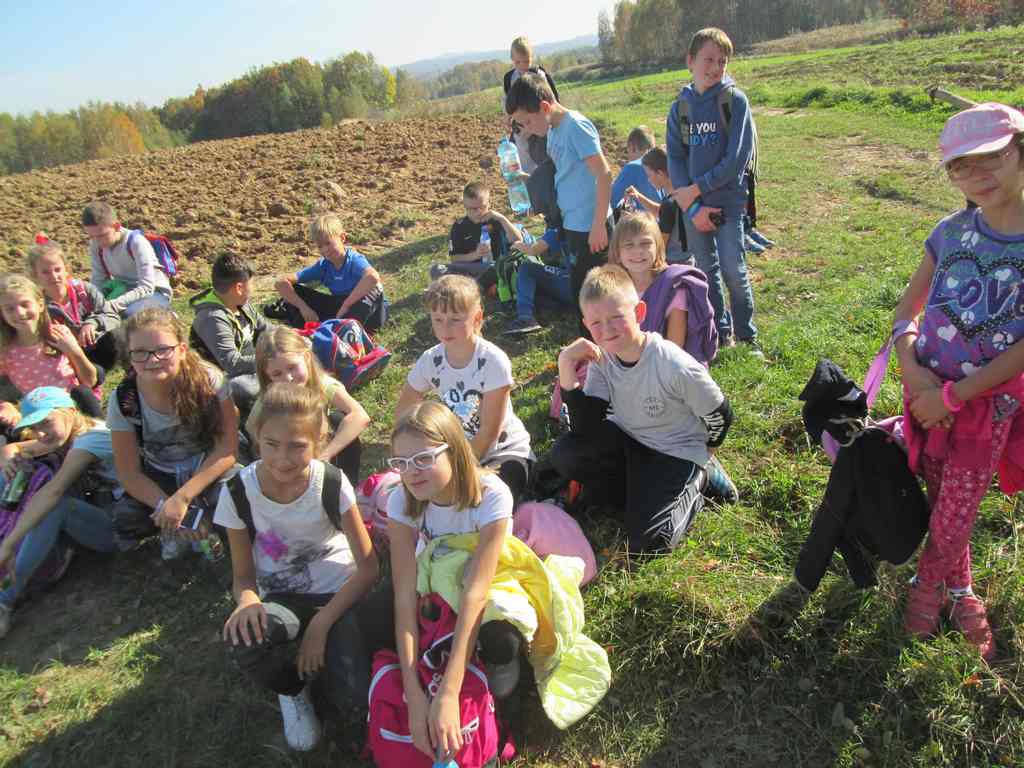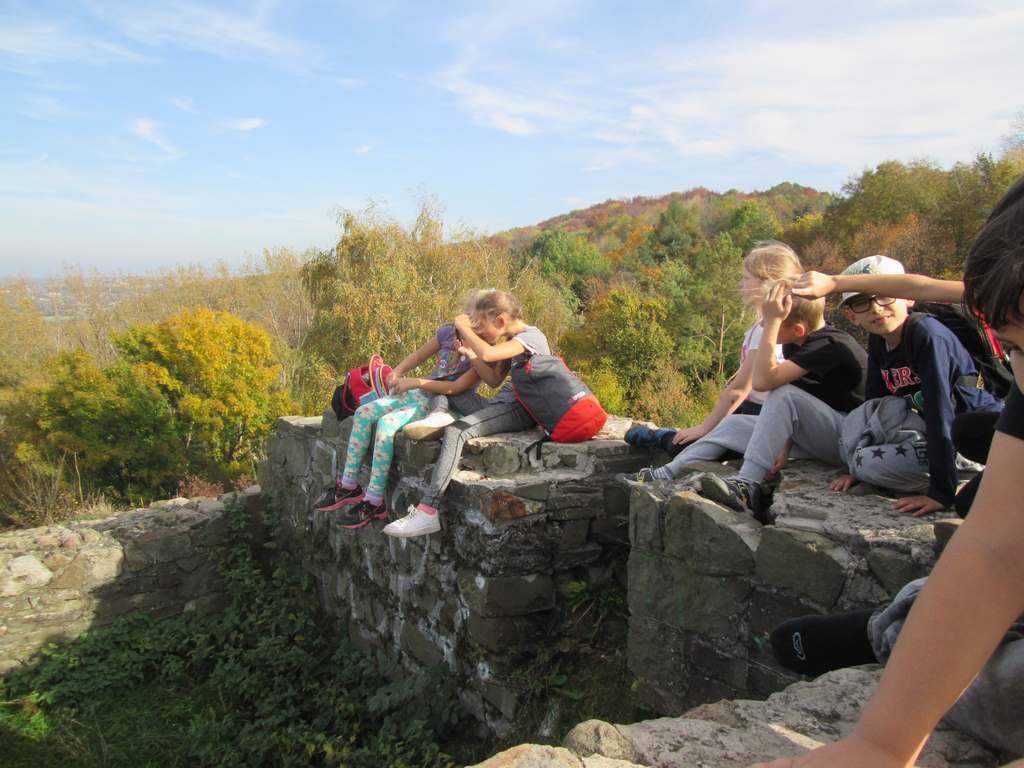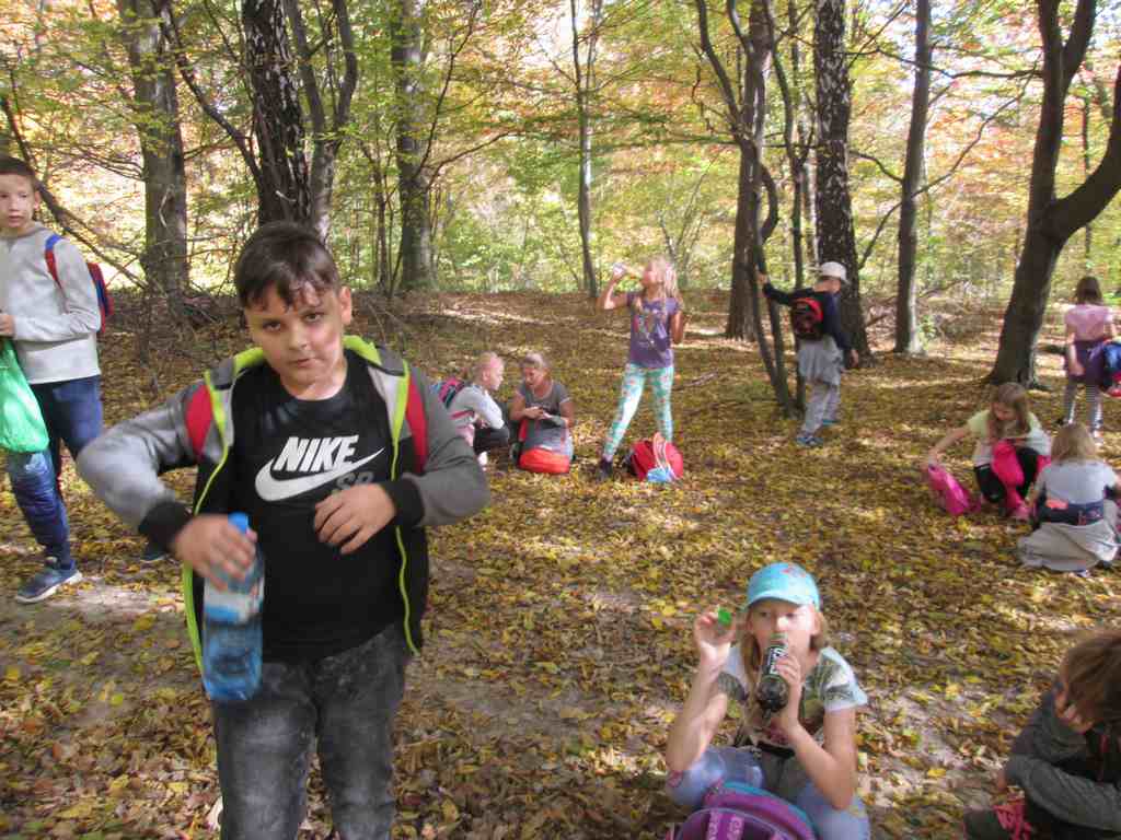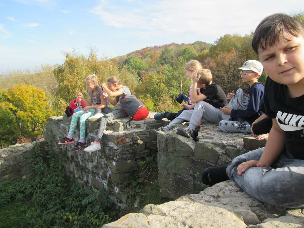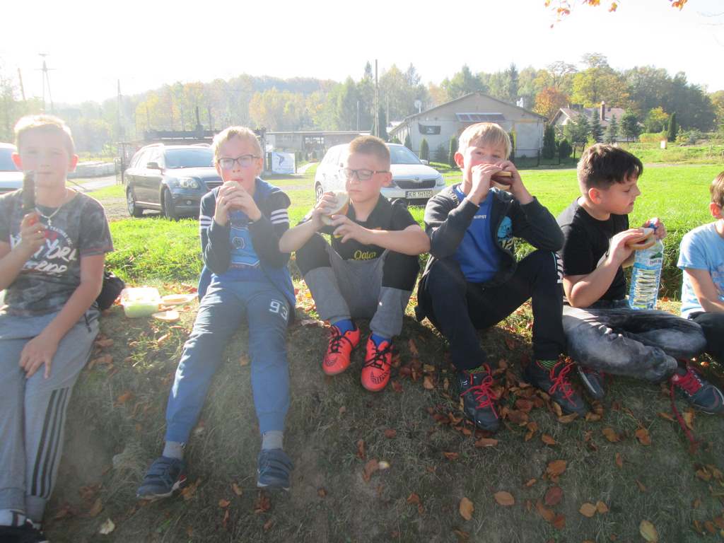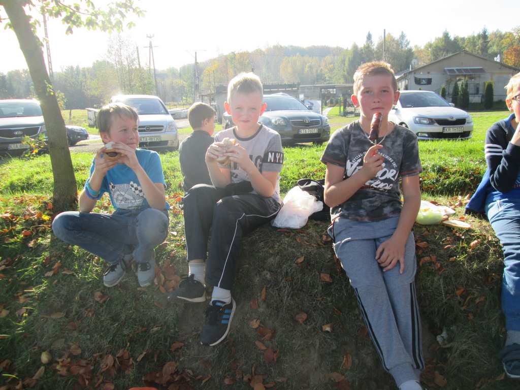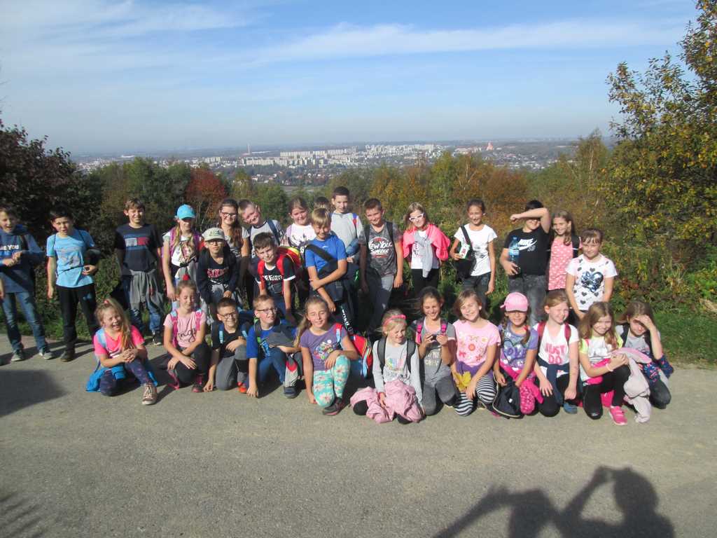 18 października obie klasy czwarte wraz ze swoimi wychowawcami nareszcie wybrały się na kilkakrotnie przekładaną na inny termin wycieczkę. Zamysłem wychowawców było bliższe poznanie nowych uczniów i wzajemna integracja. A wiadomo, że nic tak nie zbliża, jak wspólne wędrowanie… 🙂 Trasę rozpoczęliśmy w Skrzyszowie, gdzie uczniowie na miejscowym Orliku rozegrali mecze piłki nożnej i siatkówki, następnie zaś (pokrzepieni kiełbaskami upieczonymi przez pana Mariusza) weszli w Las Kruk, by zielonym szlakiem dostać się do Zawady, zobaczyć przepiękny kościółek Świętego Marcina – najstarszą świątynię parafialną Tarnowa, a stamtąd przejść na popularną Marcinkę i zwiedzić ruiny zamku Tarnowskich. Odpoczynek na szczycie nasi uczniowie wykorzystali również na podziwianie panoramy Tarnowa i próby (nieudane, niestety) dostrzeżenia stamtąd ulubionej restauracji, do której podążyli również pieszo, tym razem kierując się niebieskim szlakiem do ul. Tuchowskiej. Po drodze zwiedzili zabytkowy Stary Cmentarz w Tarnowie, oddali hołd żołnierzom i ofiarom II wojny światowej przy Pomniku Ofiar Wojny i Faszyzmu oraz zobaczyli siedzibę popularnego radia RDN.