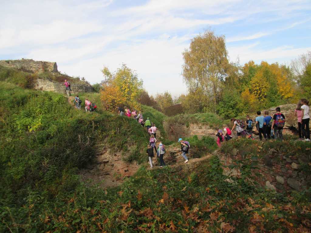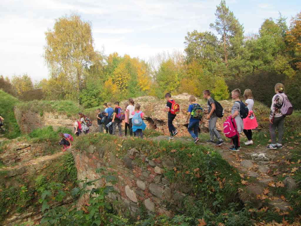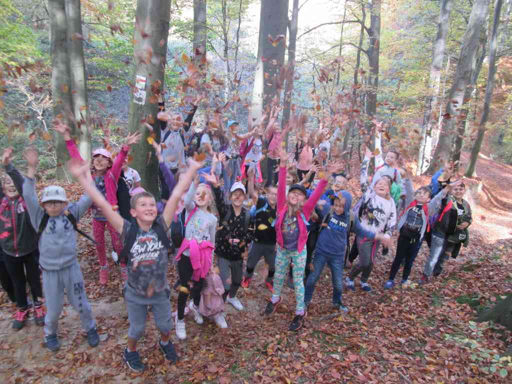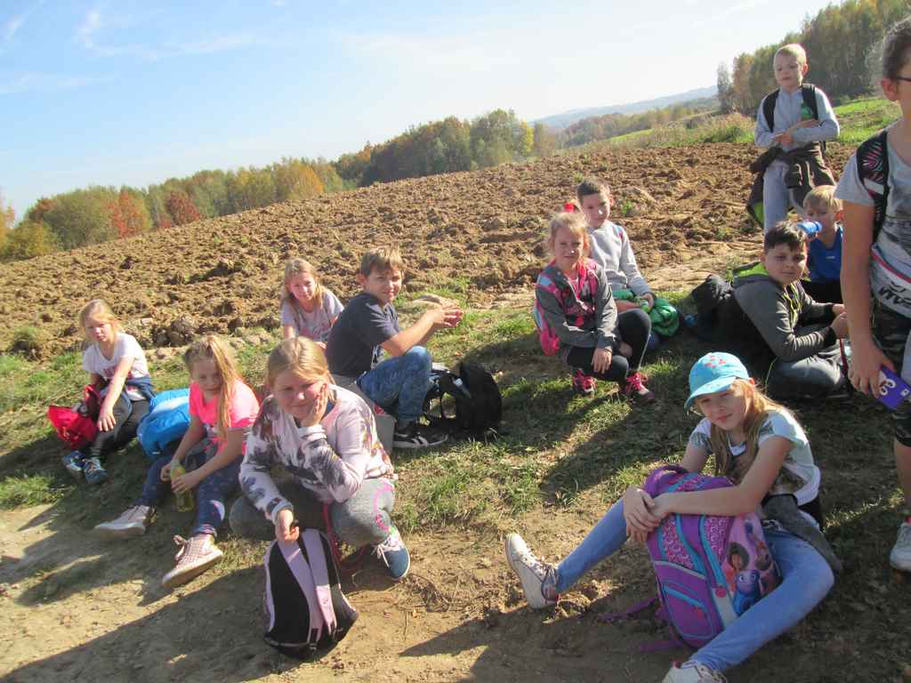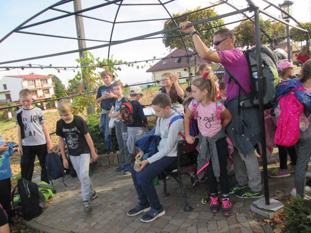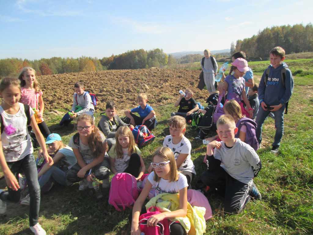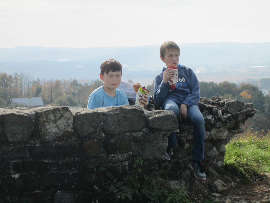 18 października obie klasy czwarte wraz ze swoimi wychowawcami nareszcie wybrały się na kilkakrotnie przekładaną na inny termin wycieczkę. Zamysłem wychowawców było bliższe poznanie nowych uczniów i wzajemna integracja. A wiadomo, że nic tak nie zbliża, jak wspólne wędrowanie… 🙂 Trasę rozpoczęliśmy w Skrzyszowie, gdzie uczniowie na miejscowym Orliku rozegrali mecze piłki nożnej i siatkówki, następnie zaś (pokrzepieni kiełbaskami upieczonymi przez pana Mariusza) weszli w Las Kruk, by zielonym szlakiem dostać się do Zawady, zobaczyć przepiękny kościółek Świętego Marcina – najstarszą świątynię parafialną Tarnowa, a stamtąd przejść na popularną Marcinkę i zwiedzić ruiny zamku Tarnowskich. Odpoczynek na szczycie nasi uczniowie wykorzystali również na podziwianie panoramy Tarnowa i próby (nieudane, niestety) dostrzeżenia stamtąd ulubionej restauracji, do której podążyli również pieszo, tym razem kierując się niebieskim szlakiem do ul. Tuchowskiej. Po drodze zwiedzili zabytkowy Stary Cmentarz w Tarnowie, oddali hołd żołnierzom i ofiarom II wojny światowej przy Pomniku Ofiar Wojny i Faszyzmu oraz zobaczyli siedzibę popularnego radia RDN.