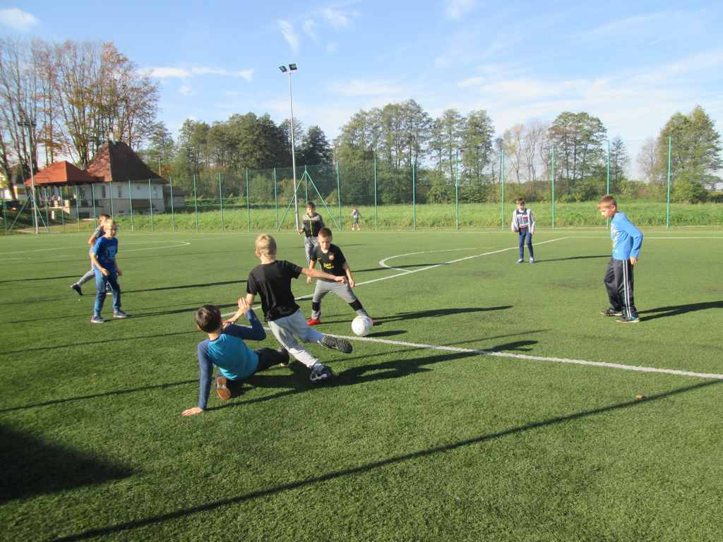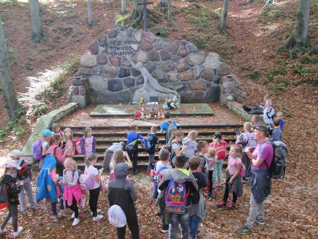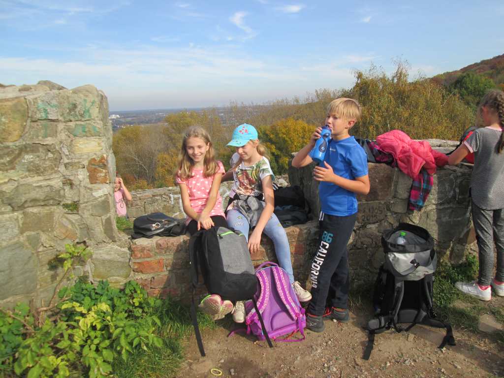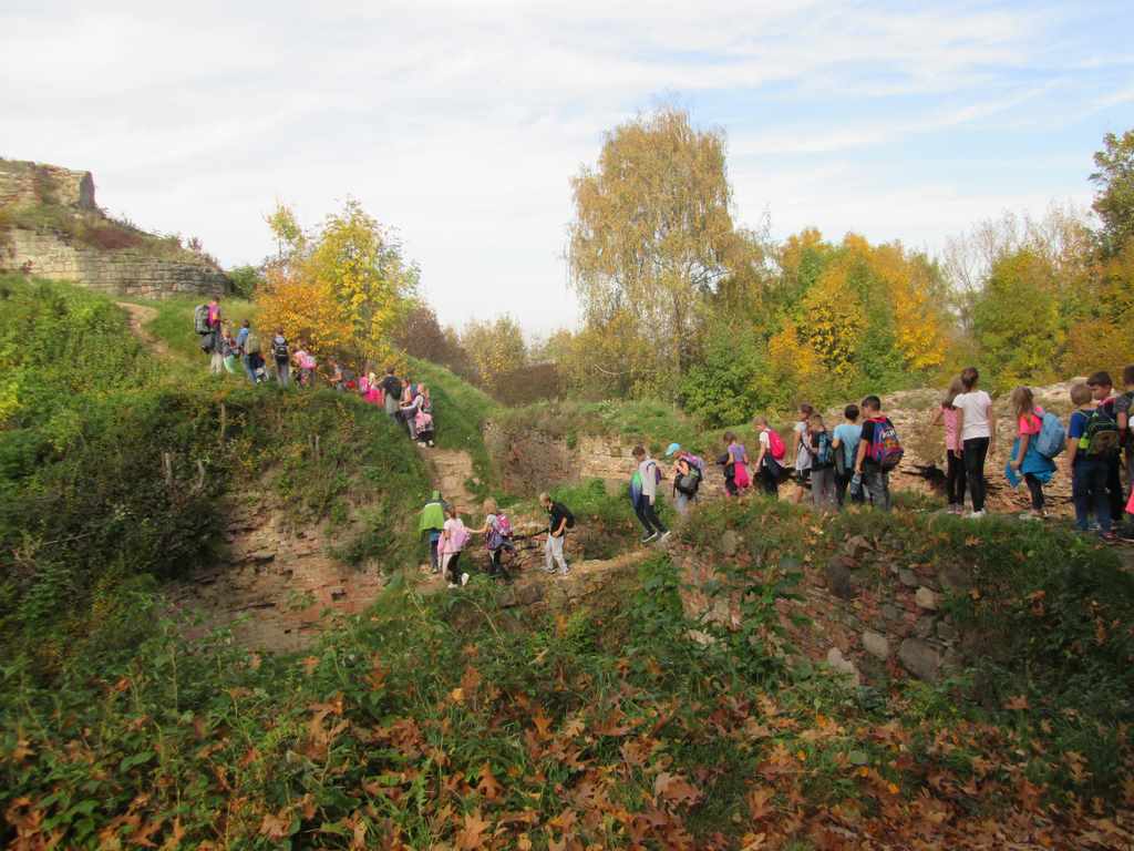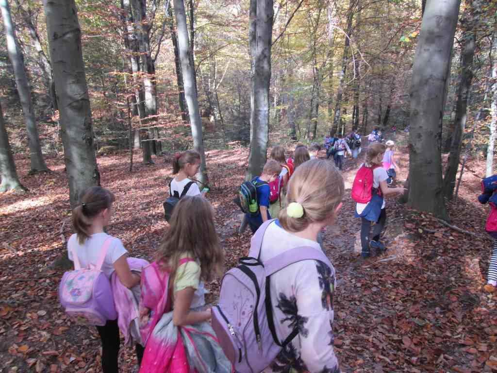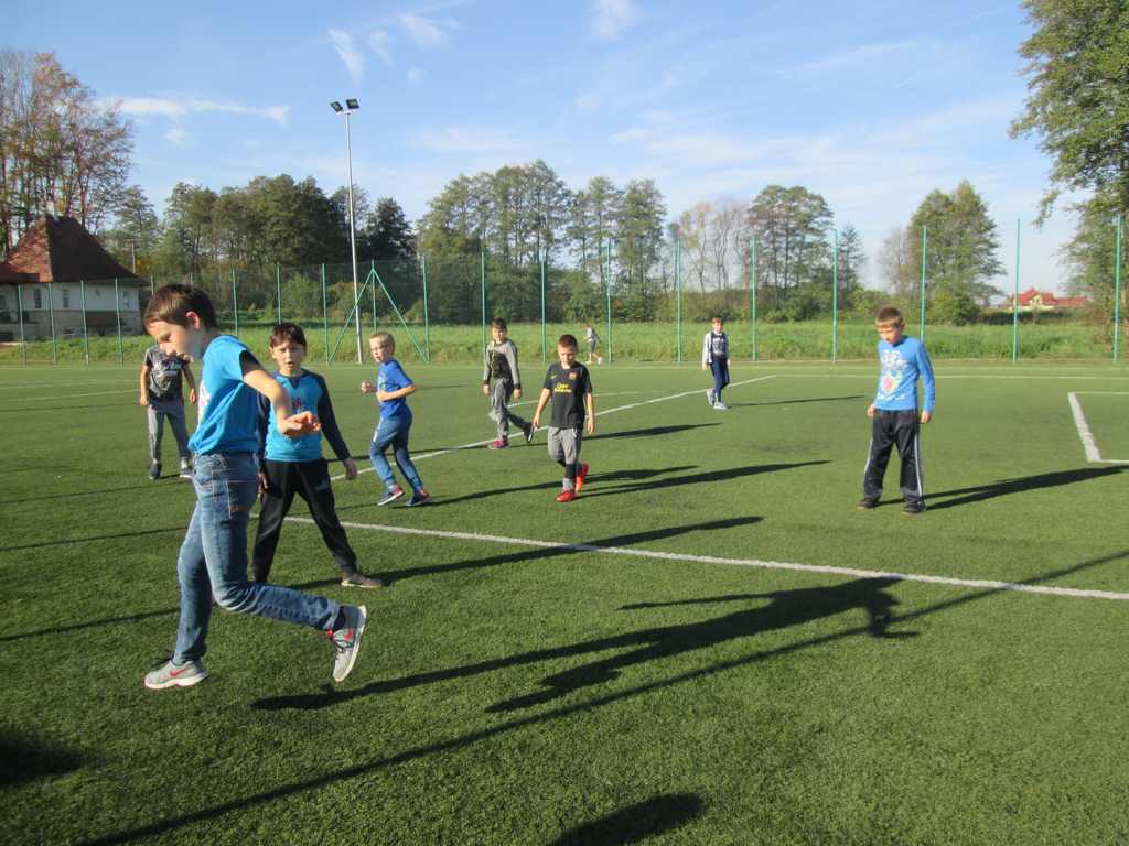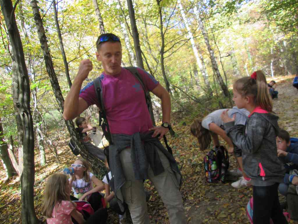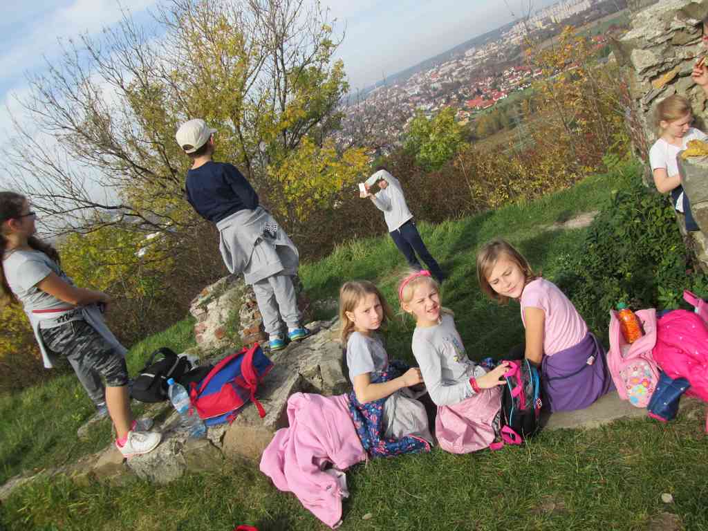 18 października obie klasy czwarte wraz ze swoimi wychowawcami nareszcie wybrały się na kilkakrotnie przekładaną na inny termin wycieczkę. Zamysłem wychowawców było bliższe poznanie nowych uczniów i wzajemna integracja. A wiadomo, że nic tak nie zbliża, jak wspólne wędrowanie… 🙂 Trasę rozpoczęliśmy w Skrzyszowie, gdzie uczniowie na miejscowym Orliku rozegrali mecze piłki nożnej i siatkówki, następnie zaś (pokrzepieni kiełbaskami upieczonymi przez pana Mariusza) weszli w Las Kruk, by zielonym szlakiem dostać się do Zawady, zobaczyć przepiękny kościółek Świętego Marcina – najstarszą świątynię parafialną Tarnowa, a stamtąd przejść na popularną Marcinkę i zwiedzić ruiny zamku Tarnowskich. Odpoczynek na szczycie nasi uczniowie wykorzystali również na podziwianie panoramy Tarnowa i próby (nieudane, niestety) dostrzeżenia stamtąd ulubionej restauracji, do której podążyli również pieszo, tym razem kierując się niebieskim szlakiem do ul. Tuchowskiej. Po drodze zwiedzili zabytkowy Stary Cmentarz w Tarnowie, oddali hołd żołnierzom i ofiarom II wojny światowej przy Pomniku Ofiar Wojny i Faszyzmu oraz zobaczyli siedzibę popularnego radia RDN.