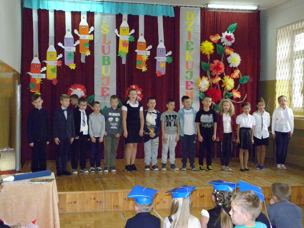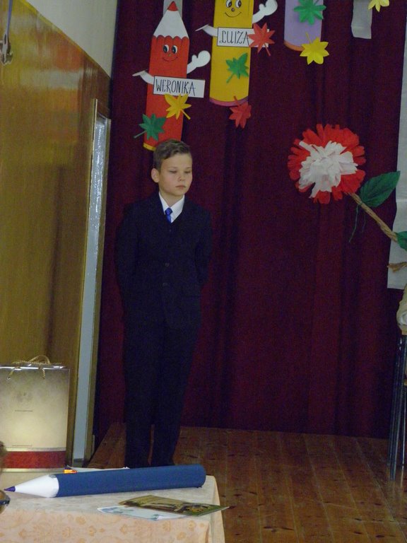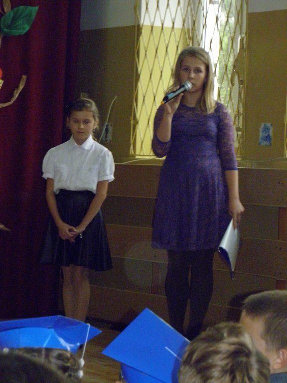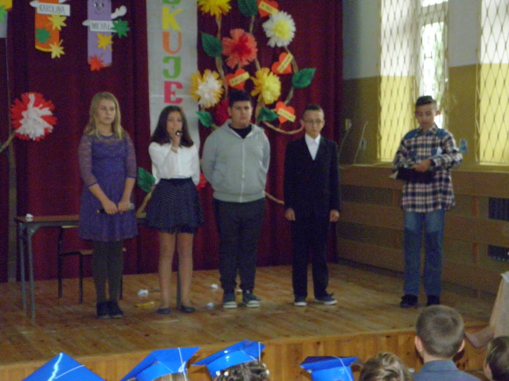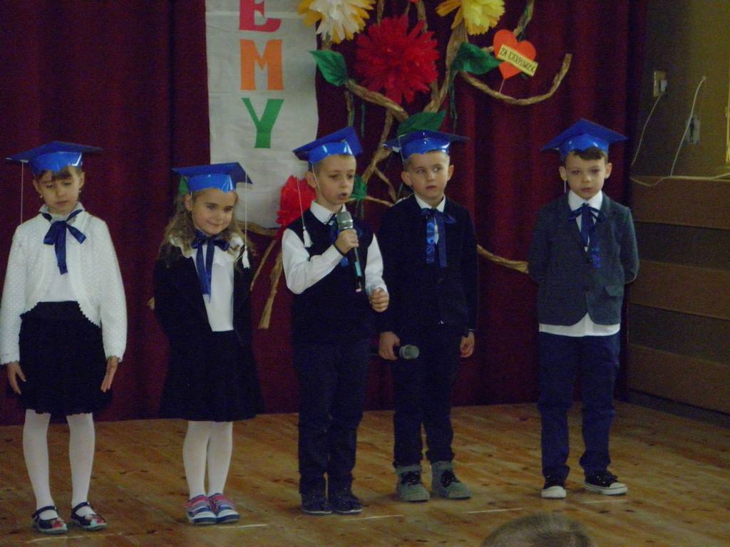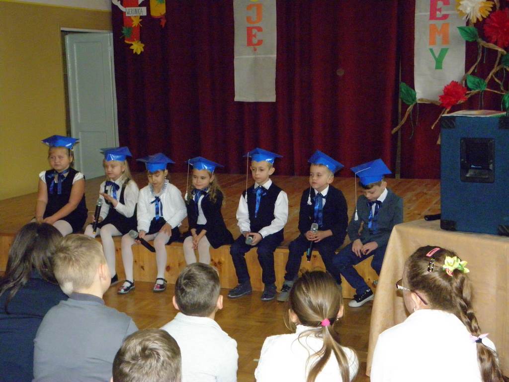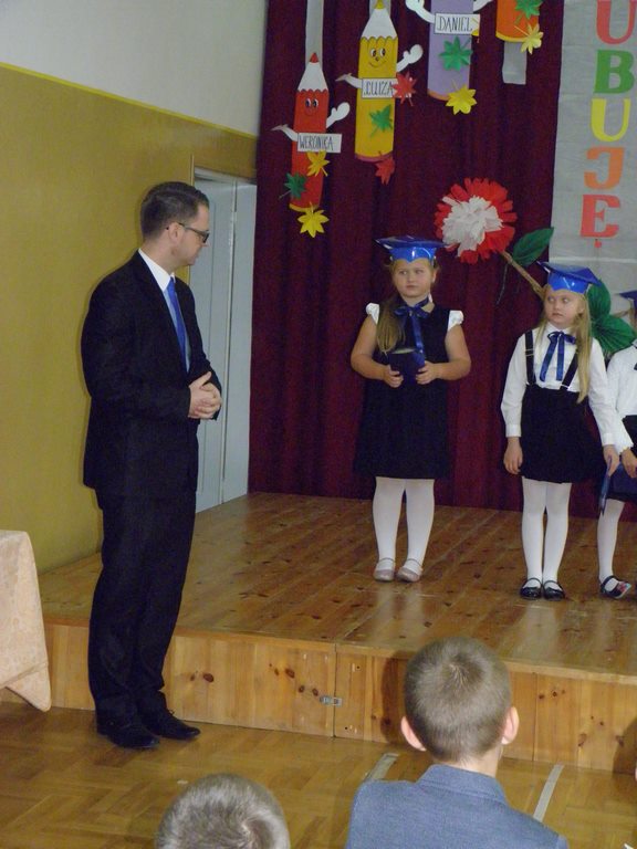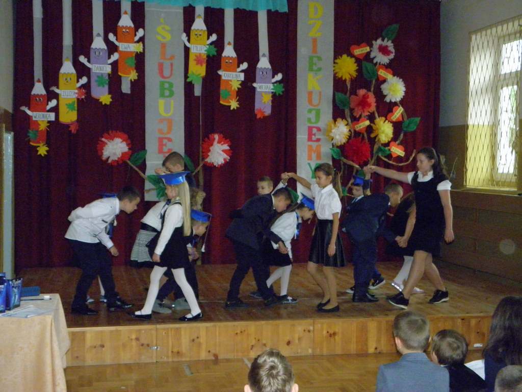 Uroczystość ślubowania uczniów klasy pierwszej połączona była z jeszcze jednym ważnym świętem – obchodami Dnia Edukacji Narodowej. Okolicznościową akademię z tej okazji przygotowała ze swymi uczniami pani Paulina Prażuch.