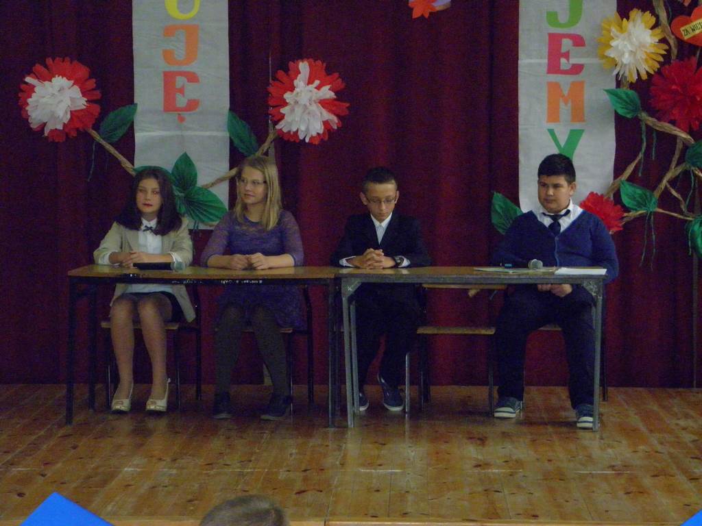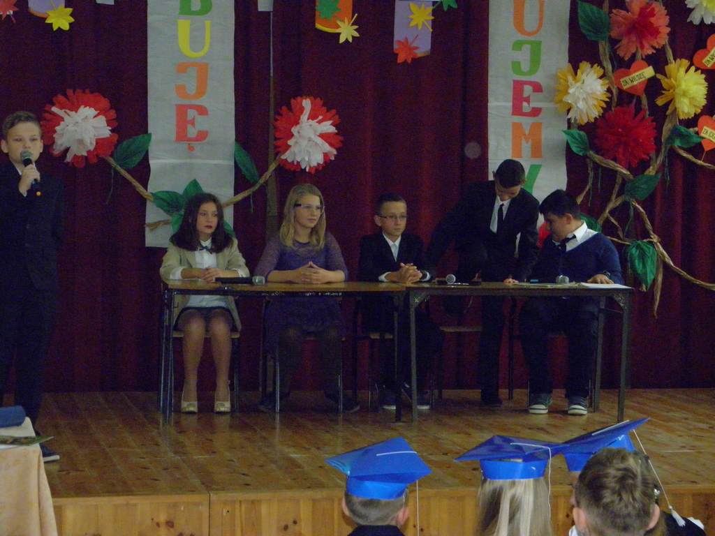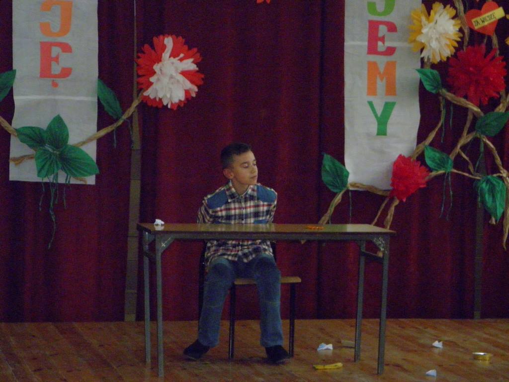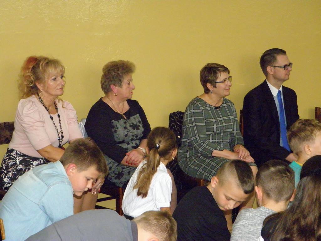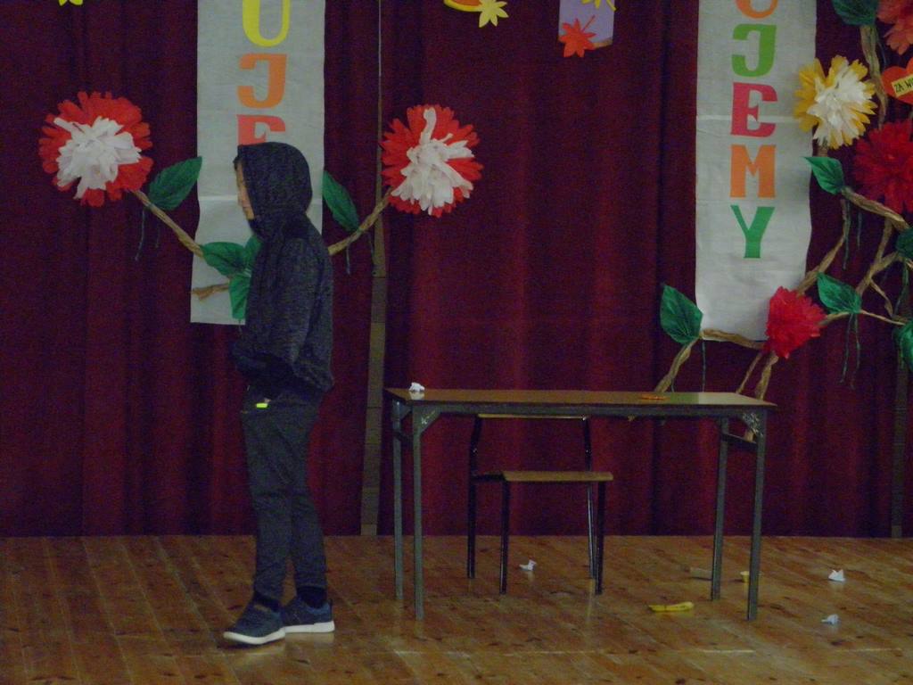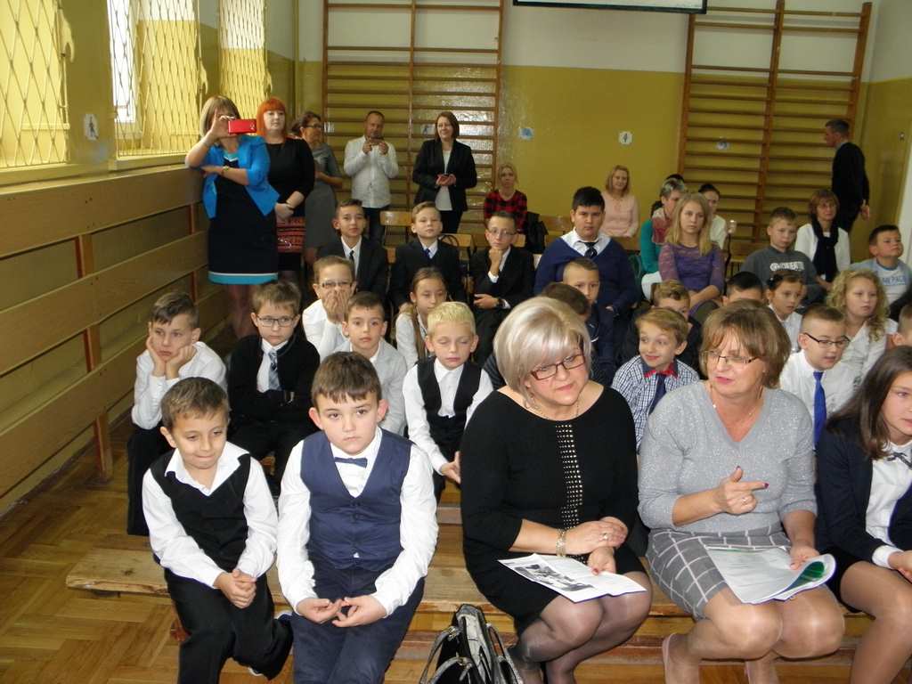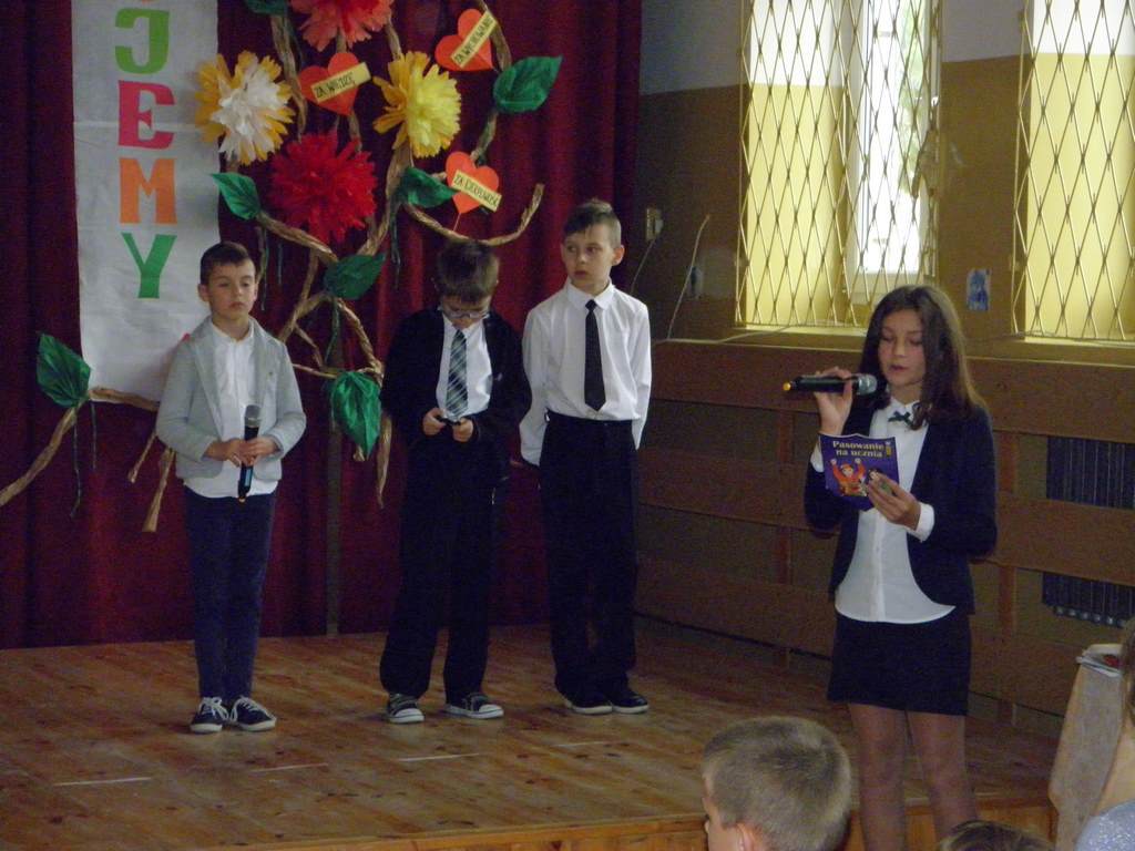 Uroczystość ślubowania uczniów klasy pierwszej połączona była z jeszcze jednym ważnym świętem – obchodami Dnia Edukacji Narodowej. Okolicznościową akademię z tej okazji przygotowała ze swymi uczniami pani Paulina Prażuch.