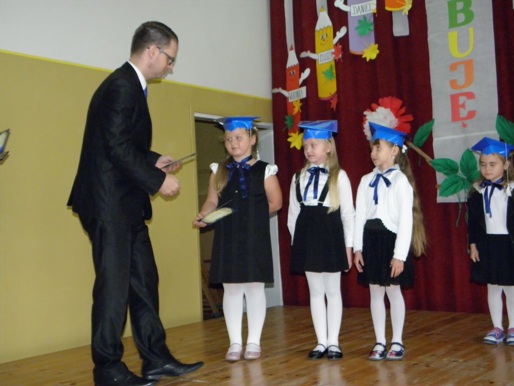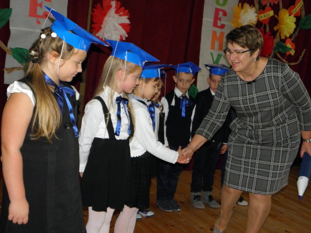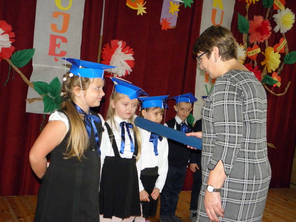 Na pamiątkę tego wydarzenia dzieci otrzymały dyplomy i drobne prezenty. Uroczystość zakończyła się słodkim poczęstunkiem z udziałem rodziców i nauczycieli. Uczniowie klasy I z pewnością na  długo zapamiętają tę uroczystość.