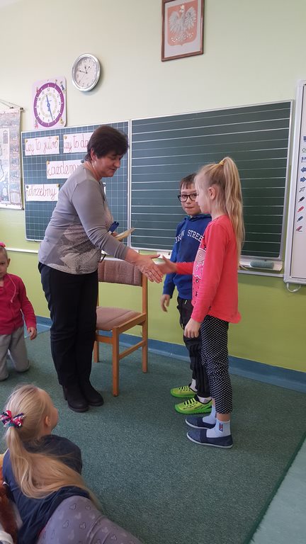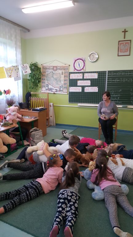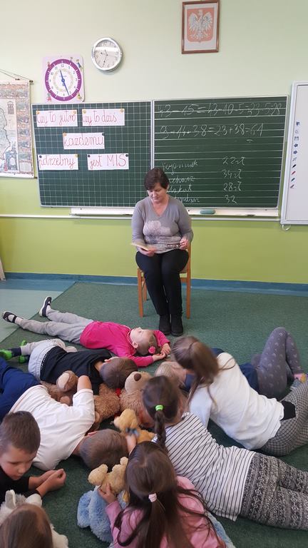 W tym dniu wszystkie misie i inni pluszowi przyjaciele dzieci opuścili swoje pokoiki i przybyli wraz z uczniami do szkoły. W klasach I i III zrobiło się kolorowo i „misiowo”. Dzieci poznały historię narodzin pluszowego misia oraz ideę święta najpopularniejszej dziecięcej zabawki, bawiły się w „misiowych” konkurencjach, takich jak: zjadanie miodu z talerzyka, przenoszenie patyczków w „misiowych” rękawicach, śpiewały tematyczne piosenki, kolorowały misie dla starszych koleżanek i kolegów. Ten dzień był nie tylko okazją do świetnej zabawy, ale także służył promocji czytelnictwa. Nasz Gość Specjalny – Dyrektor Biblioteki Publicznej, pani Halina Kozłowska, czytając wybrane fragmenty „Kubusia Puchatka” – jednej z najpiękniejszych książek o pluszowym przyjacielu, zachęcała uczniów do lektury całości. Mamy nadzieję, że skutecznie, bo naprawdę warto 🙂