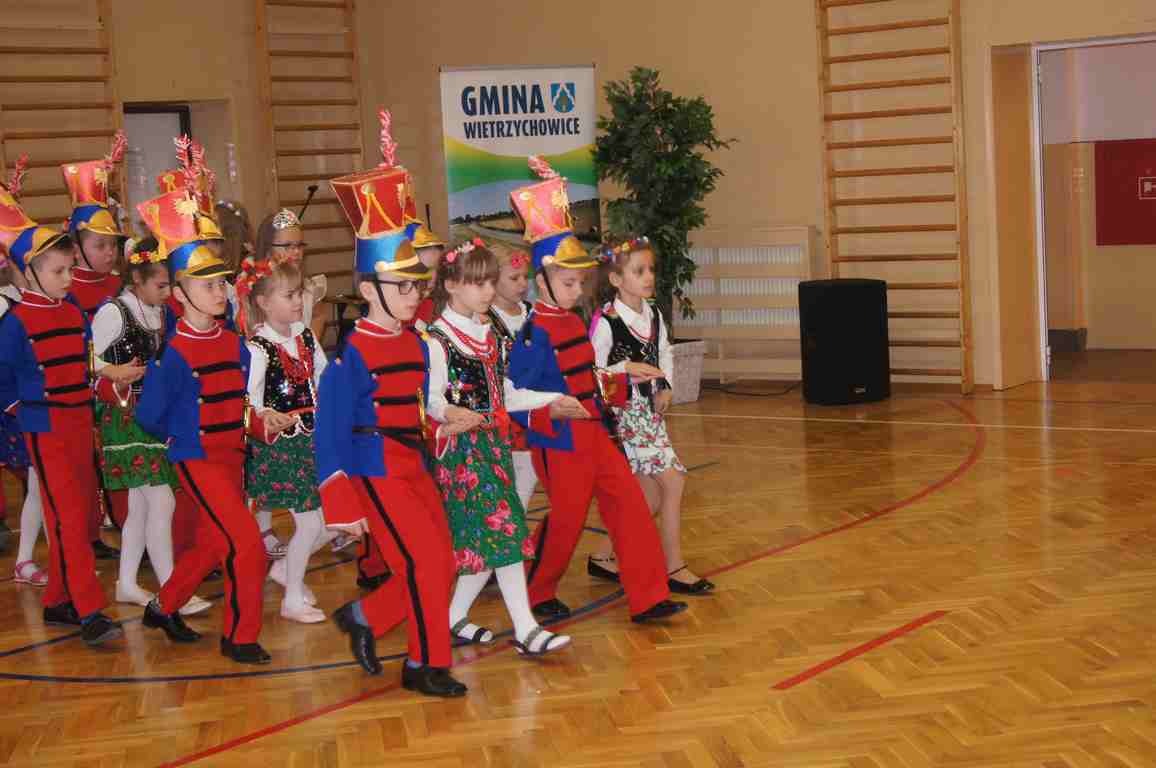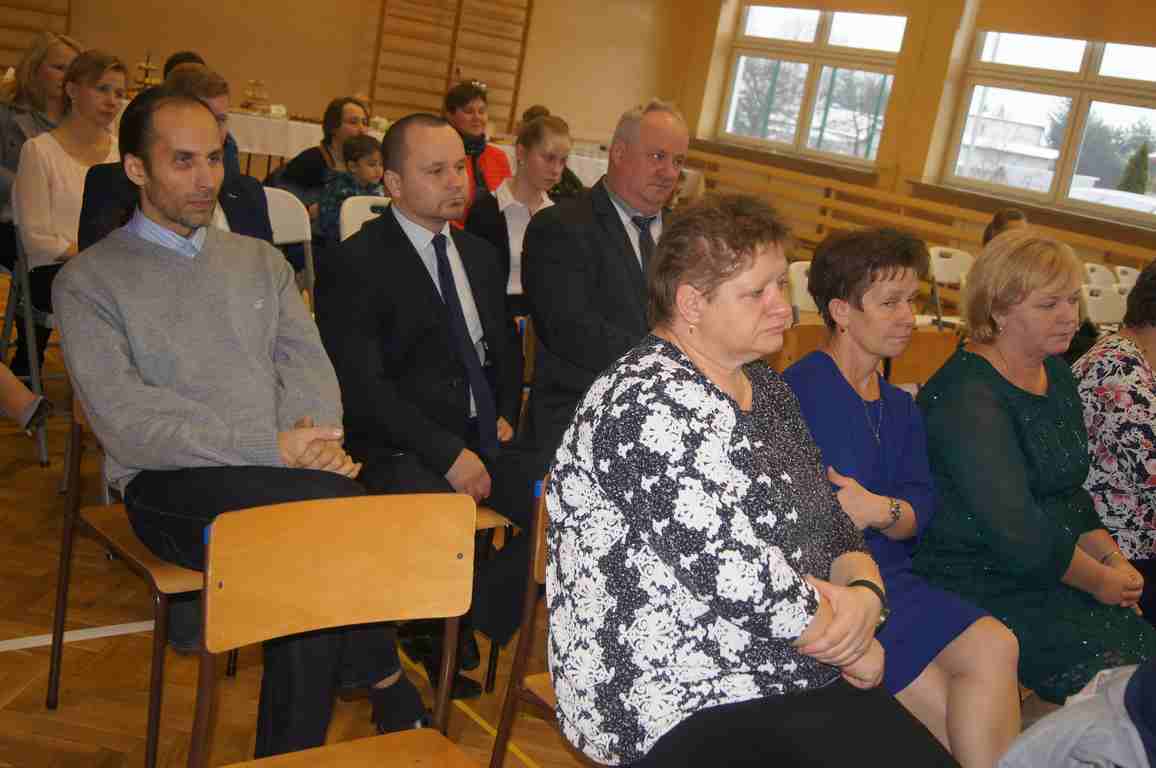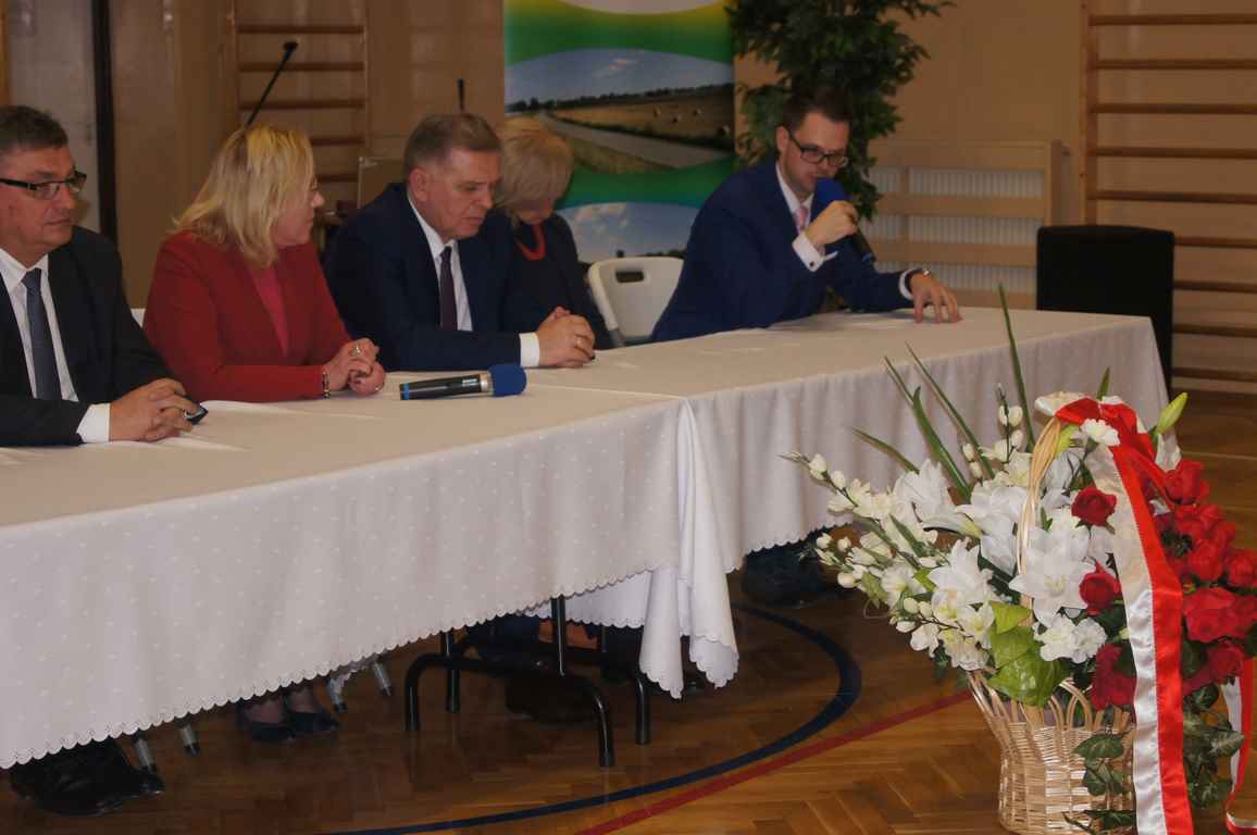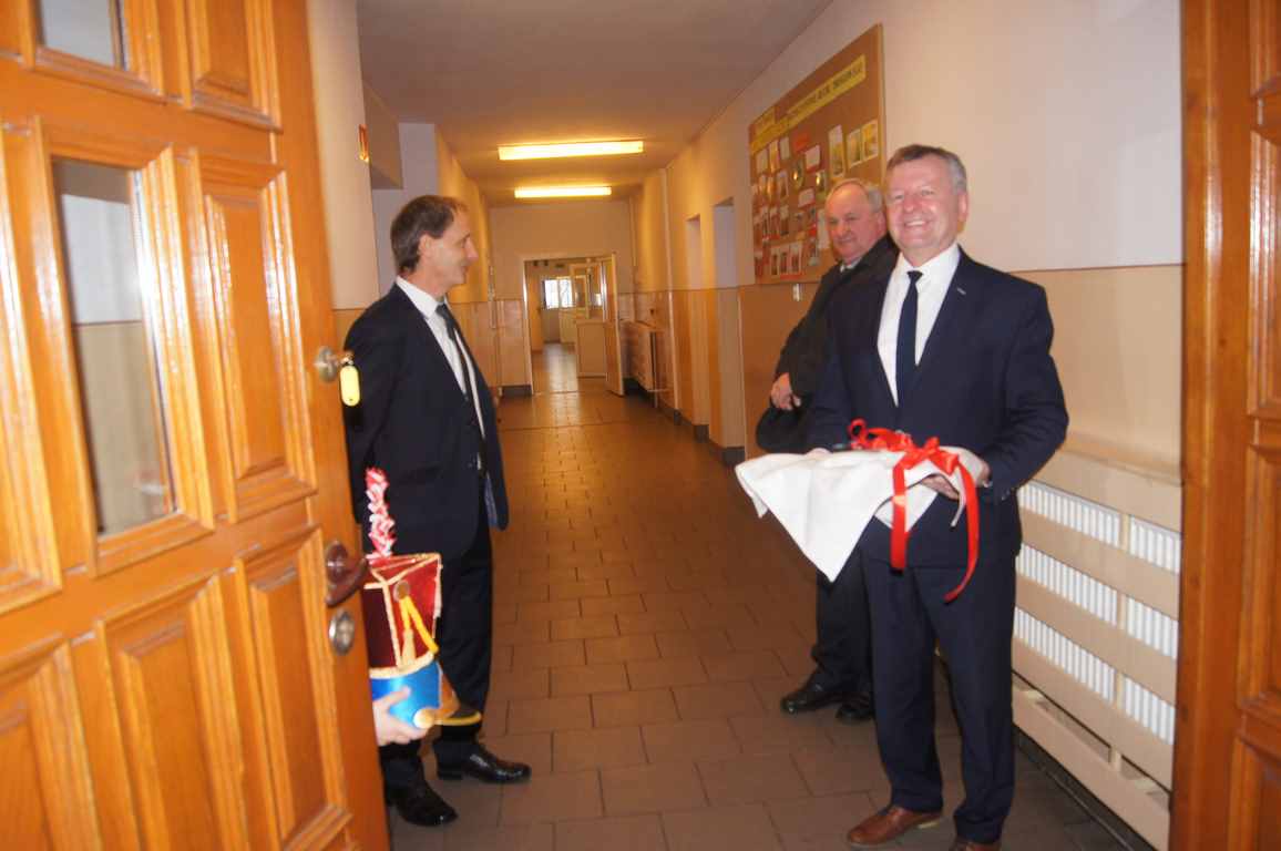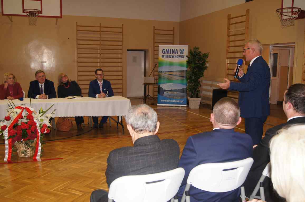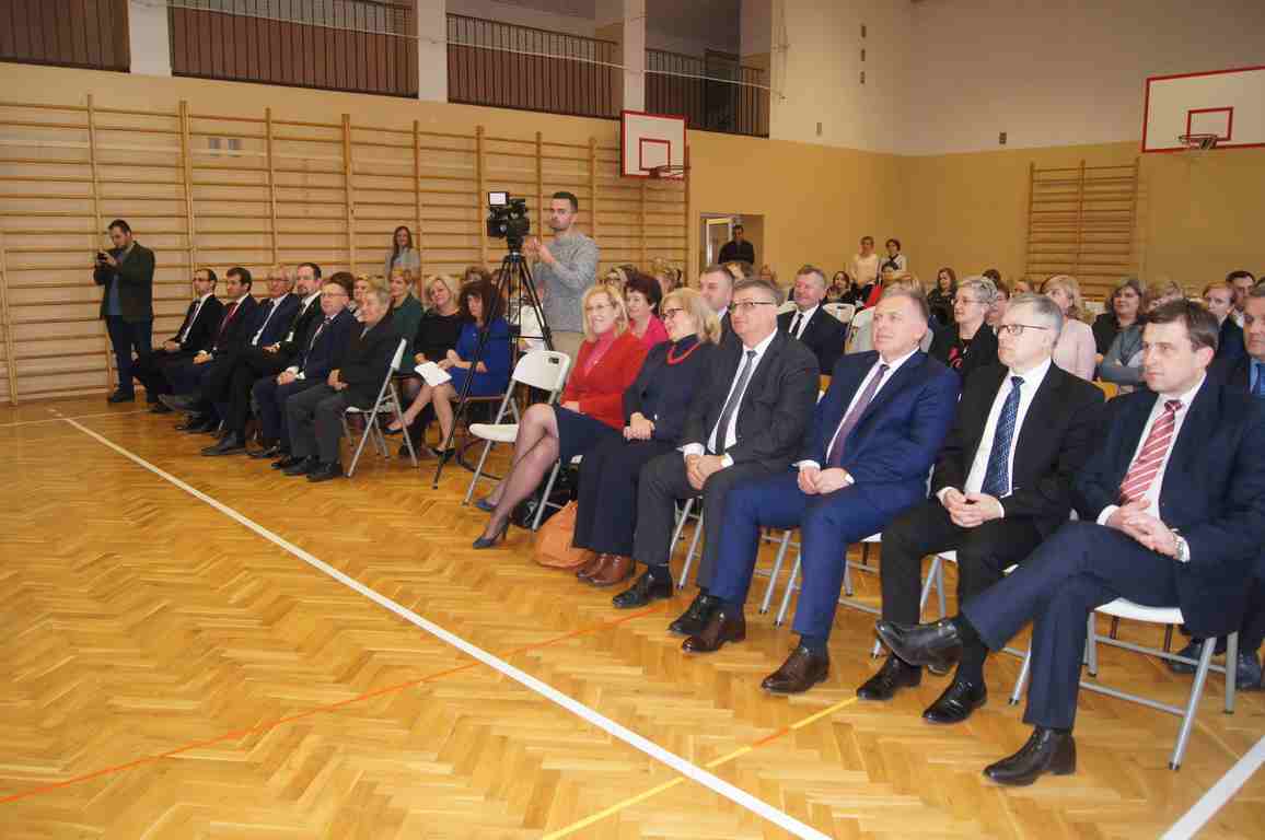 Po oficjalnym przecięciu wstęgi zgromadzeni na sali gimnastycznej goście obejrzeli fragment inscenizacji z okazji Narodowego Święta Niepodległości, którą w tym roku przygotowali uczniowie klasy III pod kierunkiem pań: Alicji Kozioł, Aliny Panek oraz Anny Sochy.